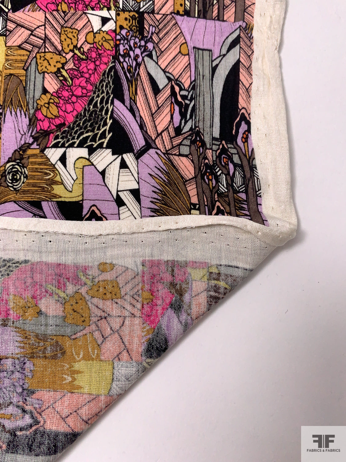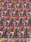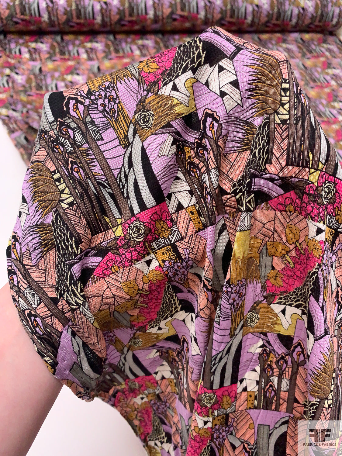 Art Deco Jungle Fantasy Printed Silk Jersey Knit - Pinks / Lavender / Ochre / Black