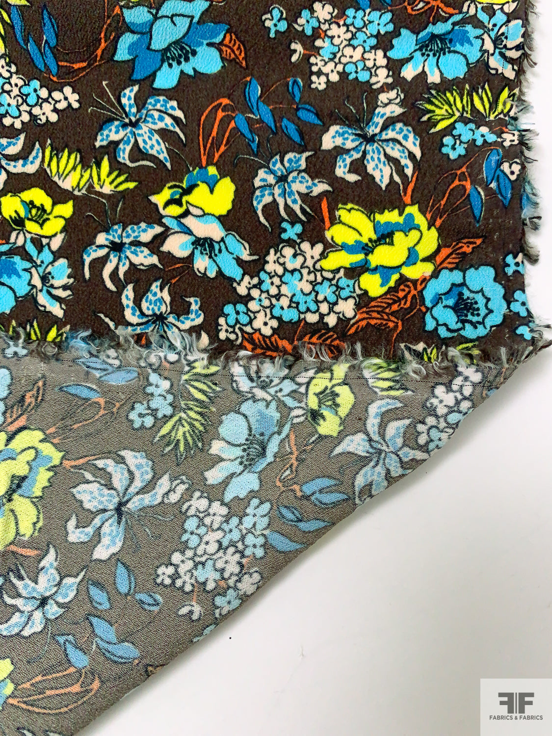 Country Floral Printed Viscose Crepe - Aqua / Yellow / Dark Olive-Brown