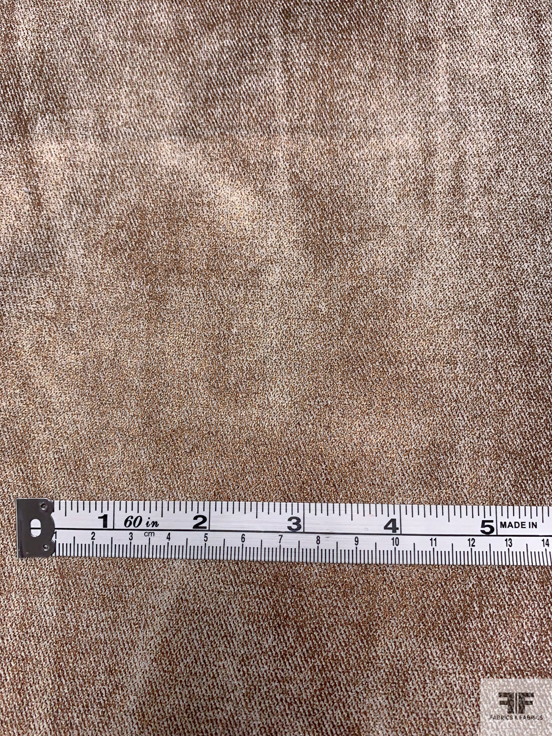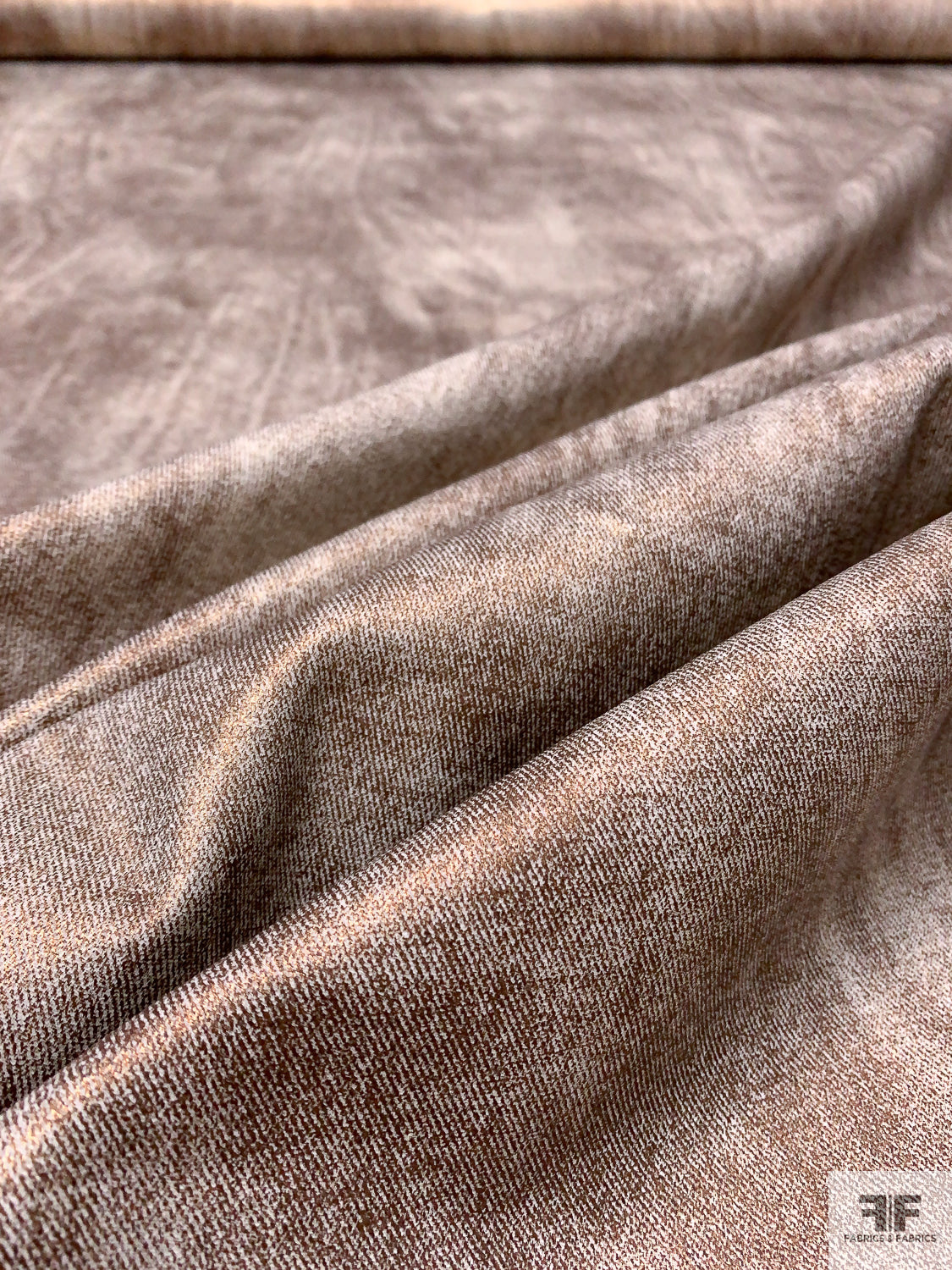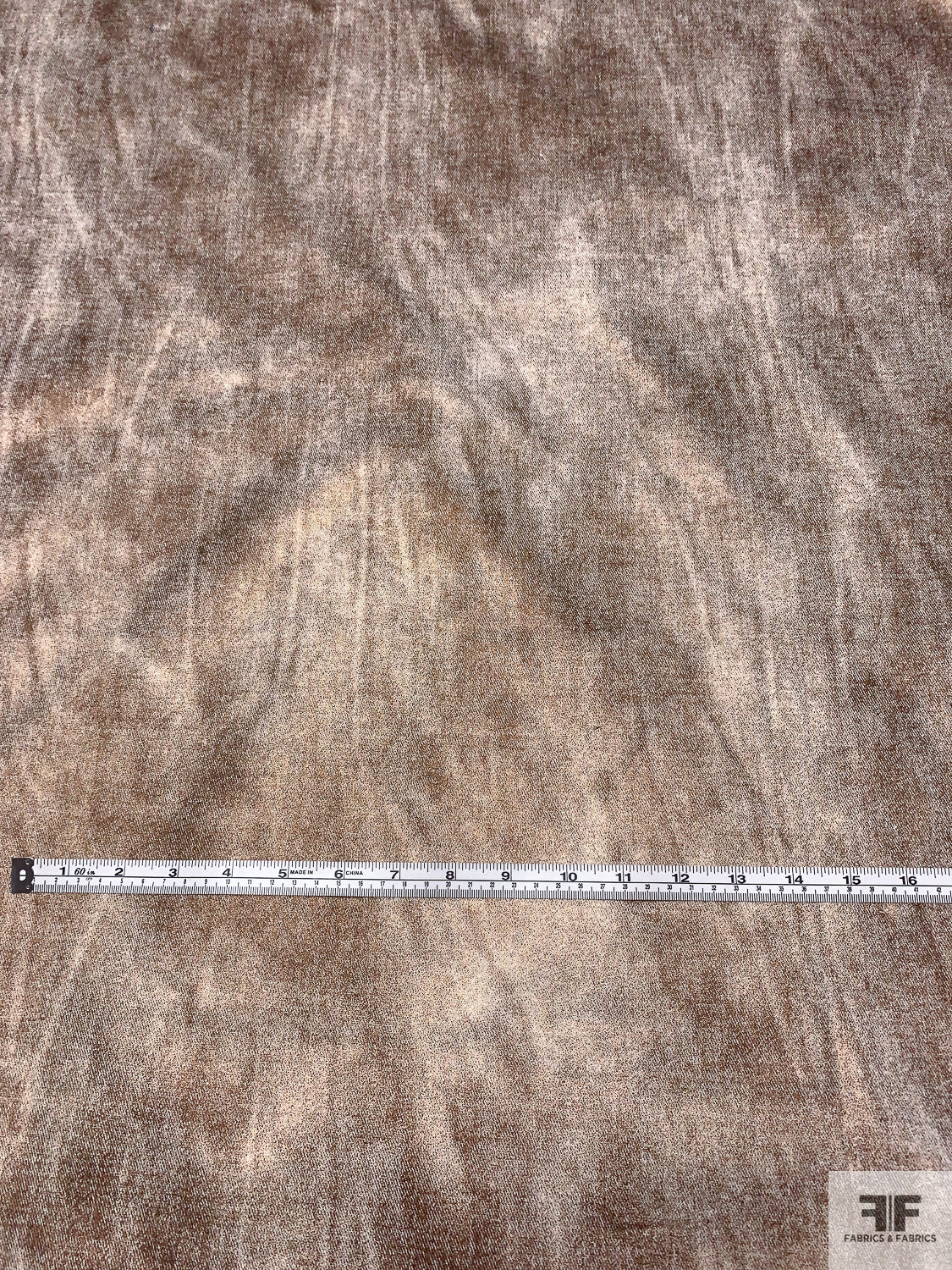 Distressed-Look Foil Printed Stretch Denim - Bronze / Off-White