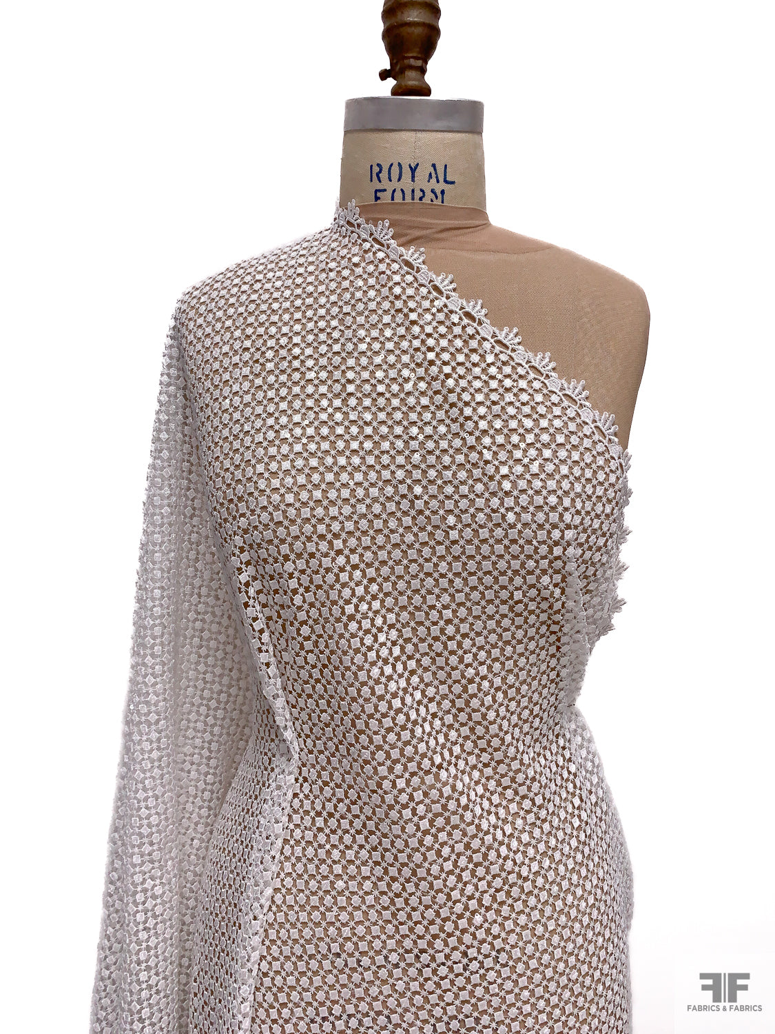 Double-Scalloped Geometric Sequined Guipure Lace - White