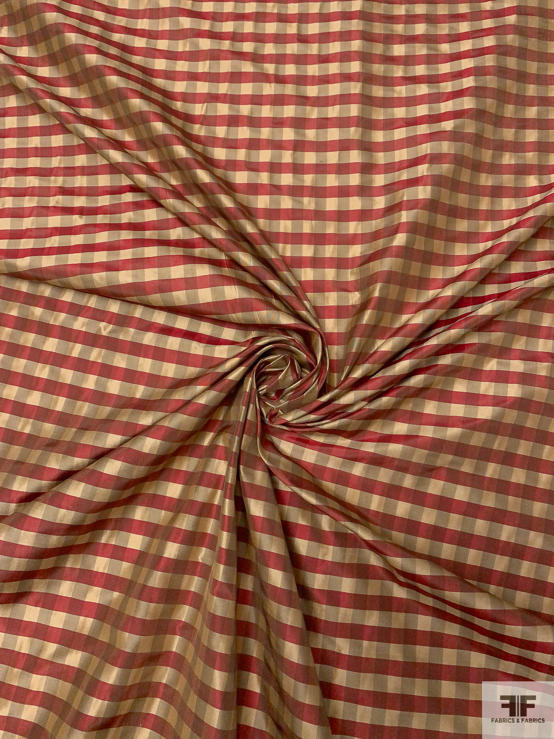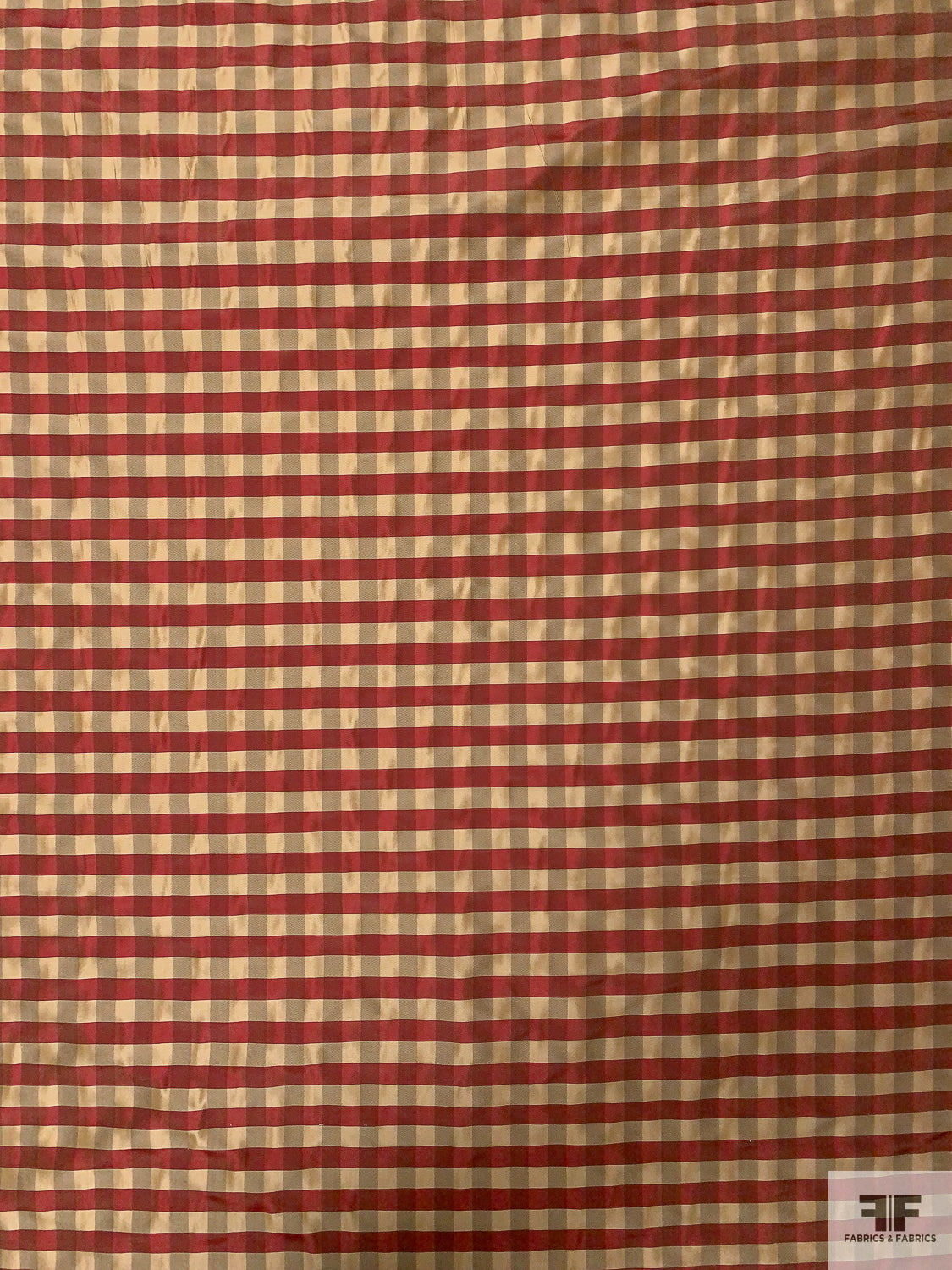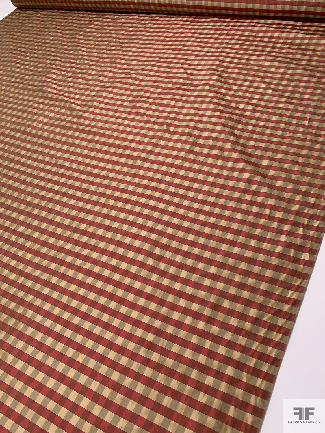 Gingham Check Yarn-Dyed Silk Taffeta - Khaki / Burgundy