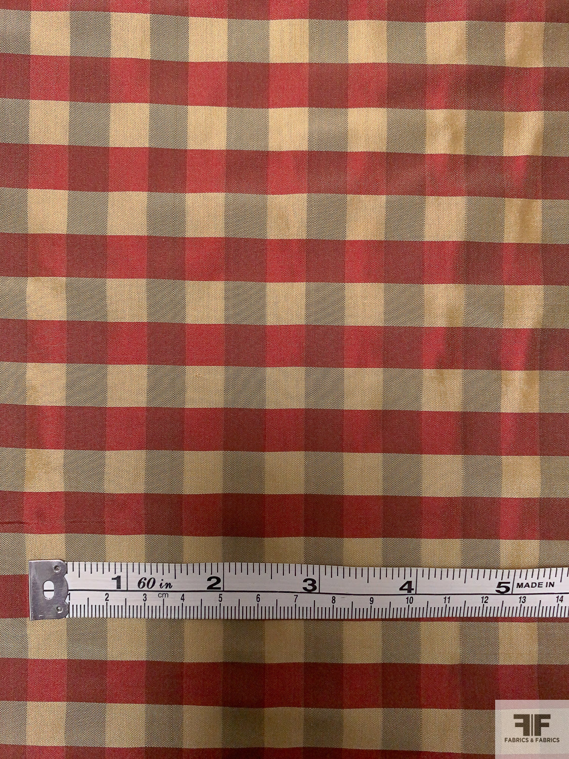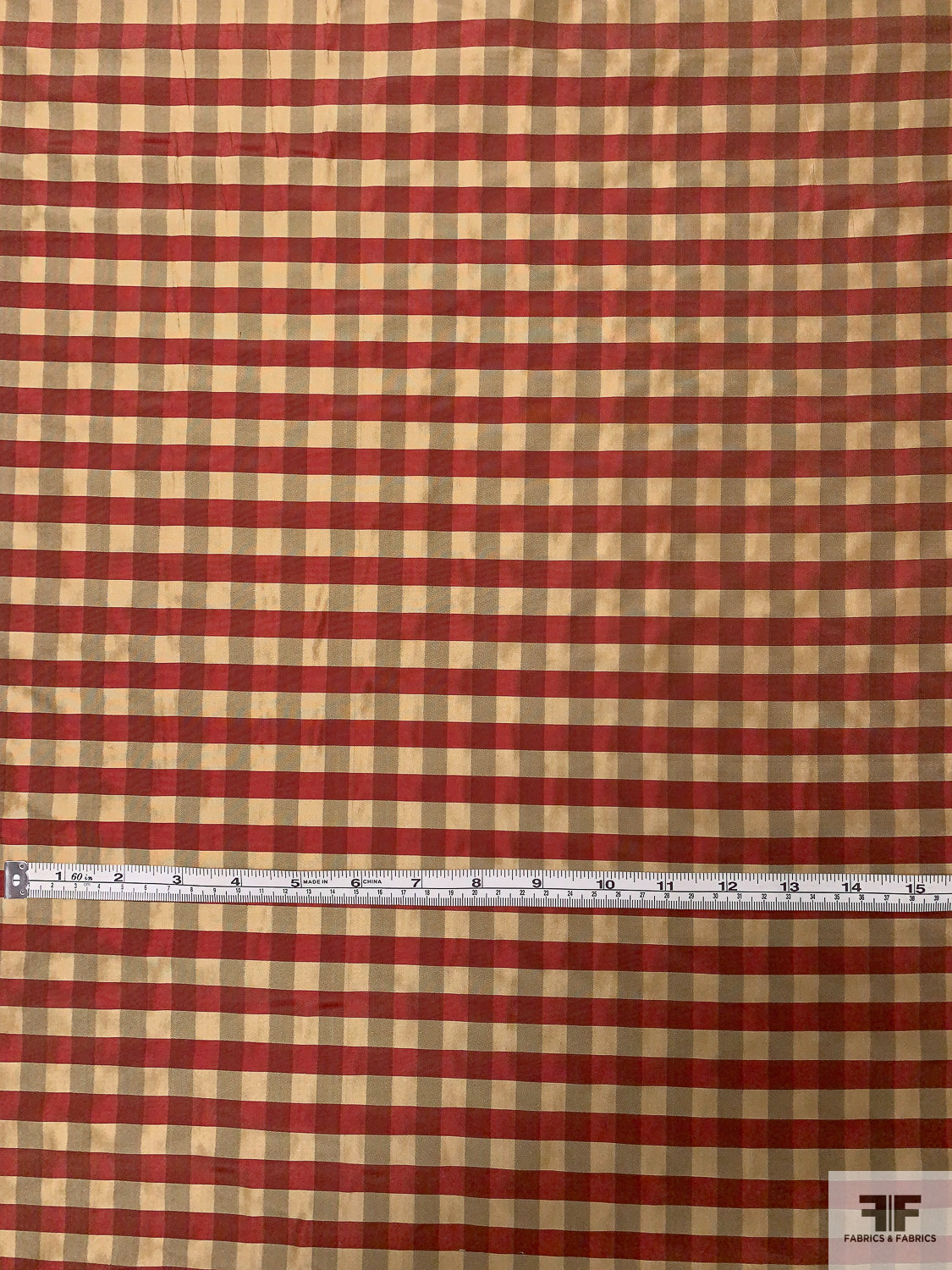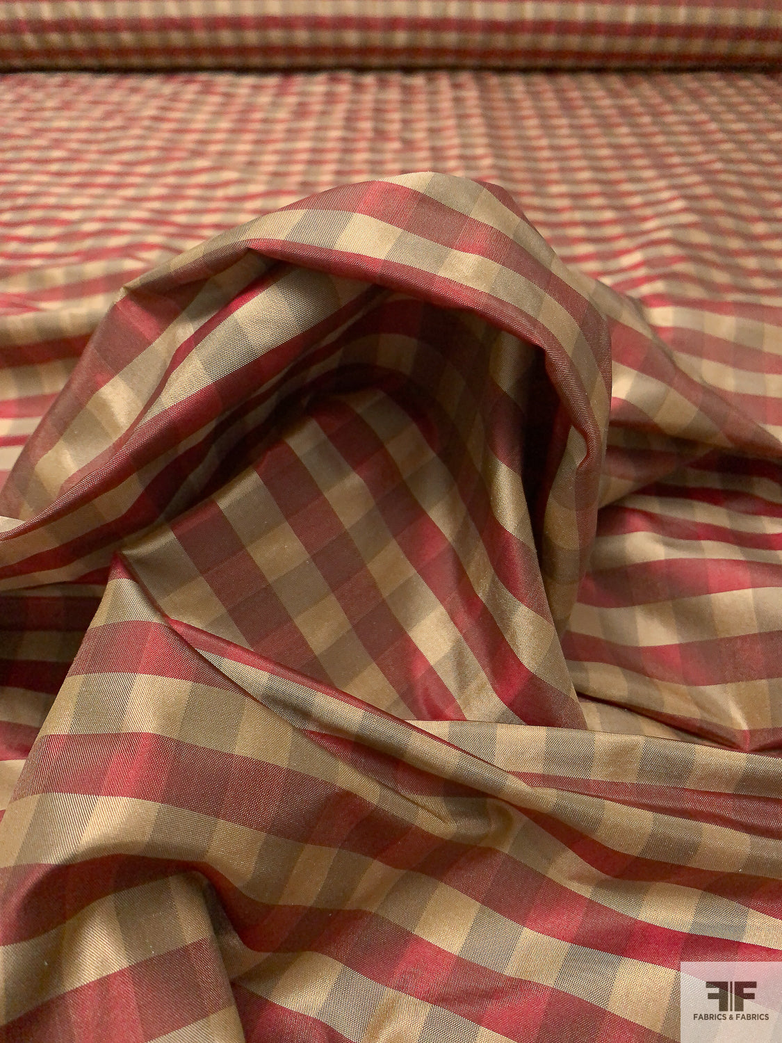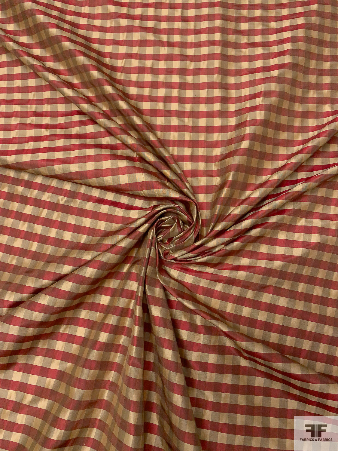 Gingham Check Yarn-Dyed Silk Taffeta - Khaki / Burgundy