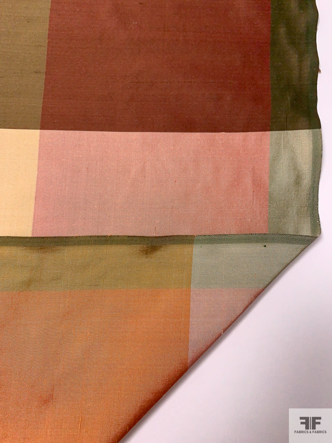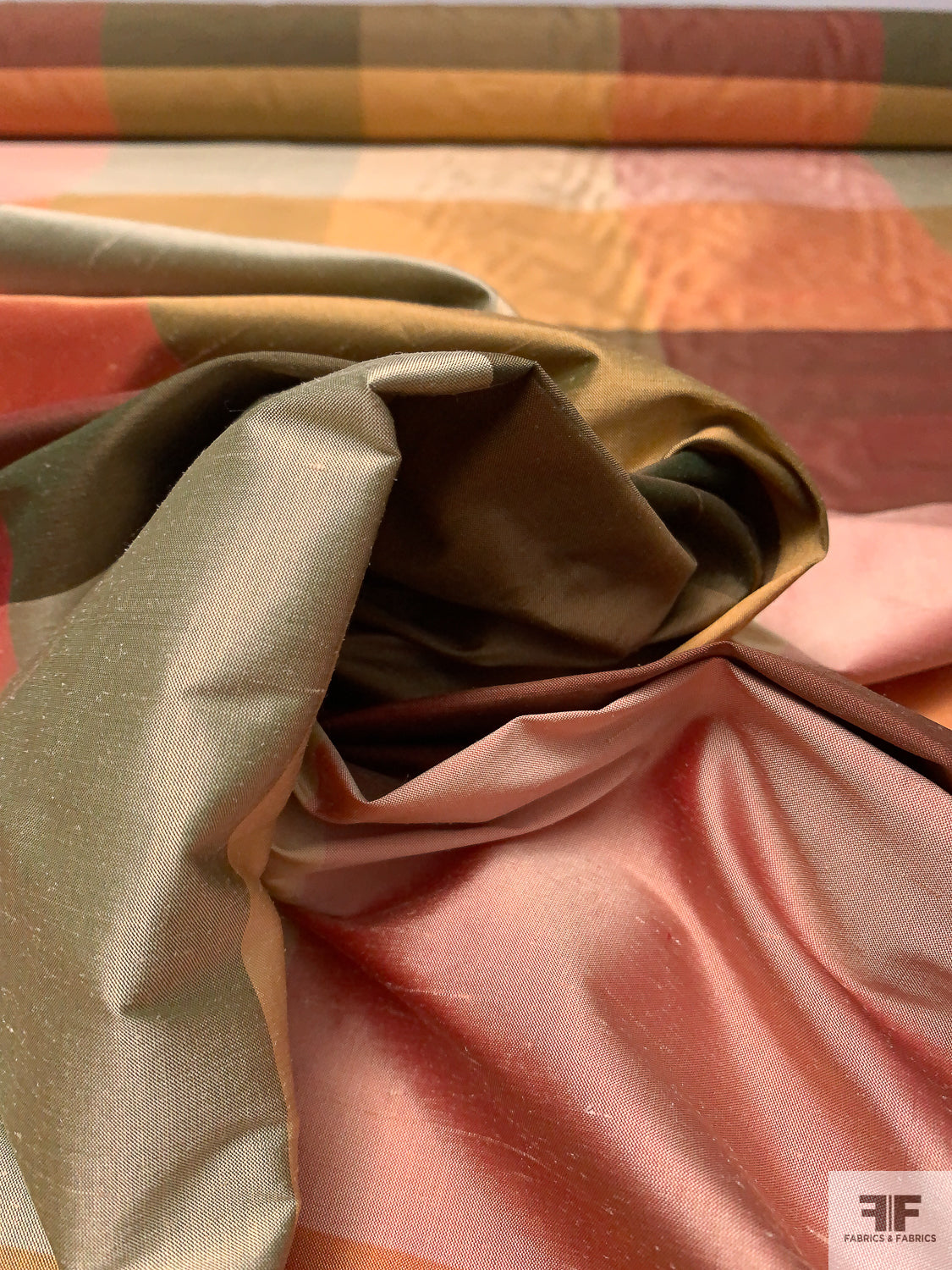 Gingham Plaid Yarn-Dyed Silk Shantung - Khaki Greens / Maroon / Pink / Golds