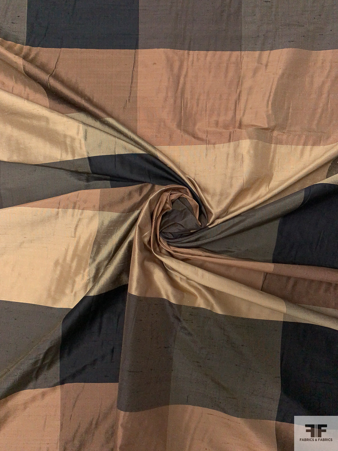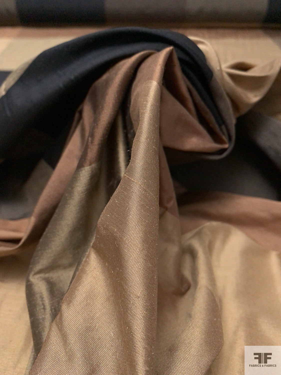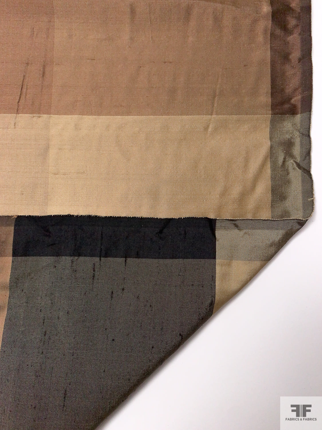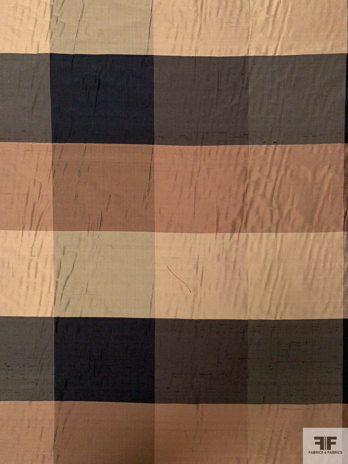 Gingham Plaid Yarn-Dyed Silk Shantung - Nude Browns / Vintage Beige / Black