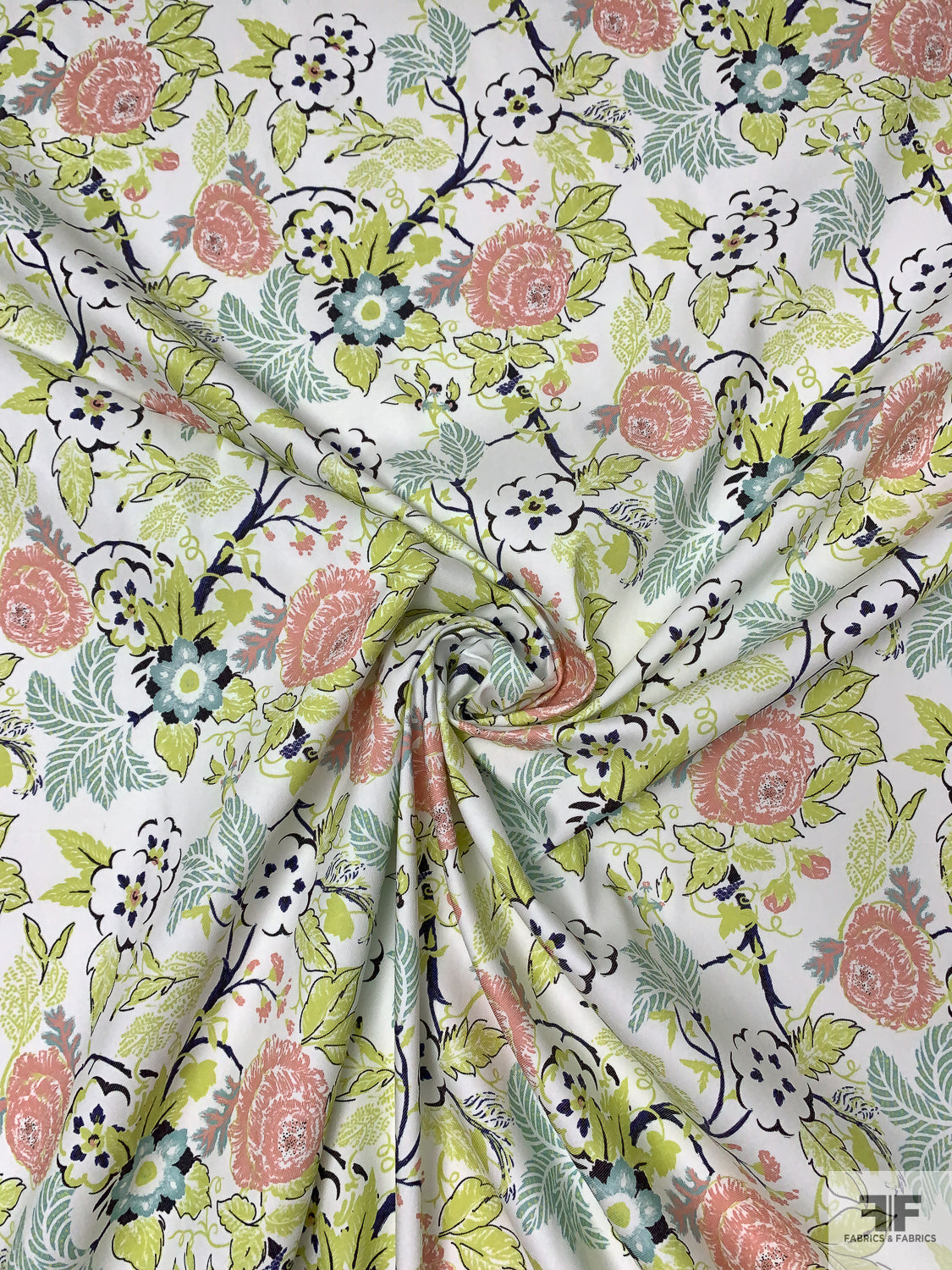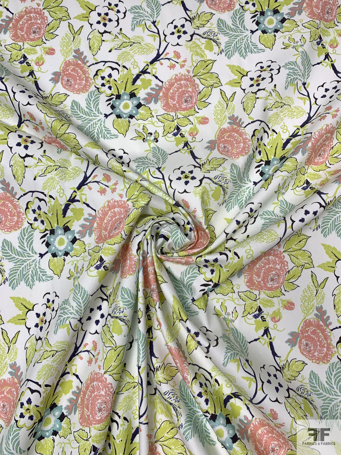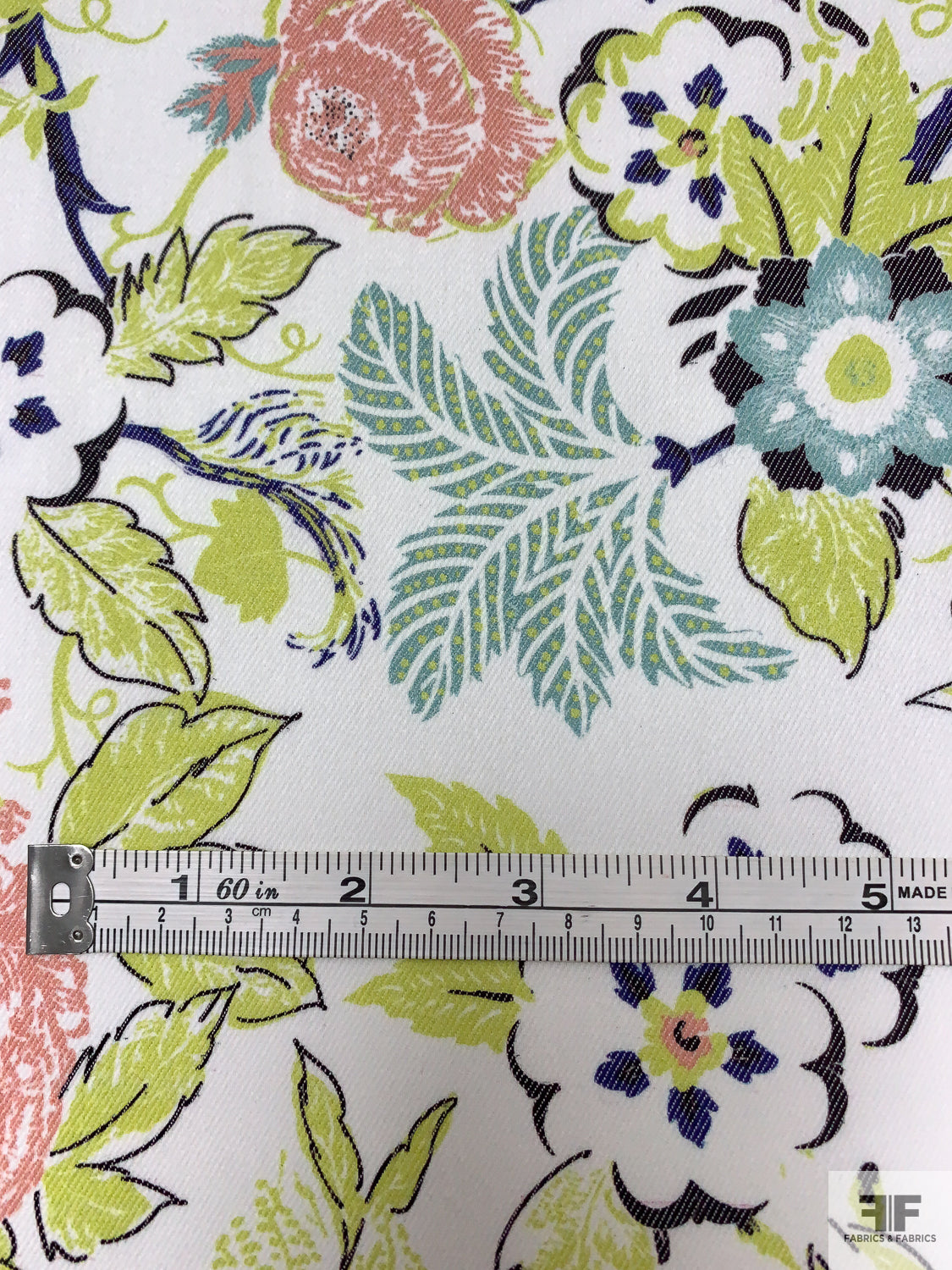 Italian Floral Printed Stretch Denim - Lime / Peach / Sage / Off-White