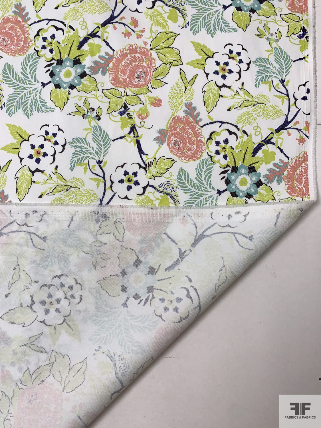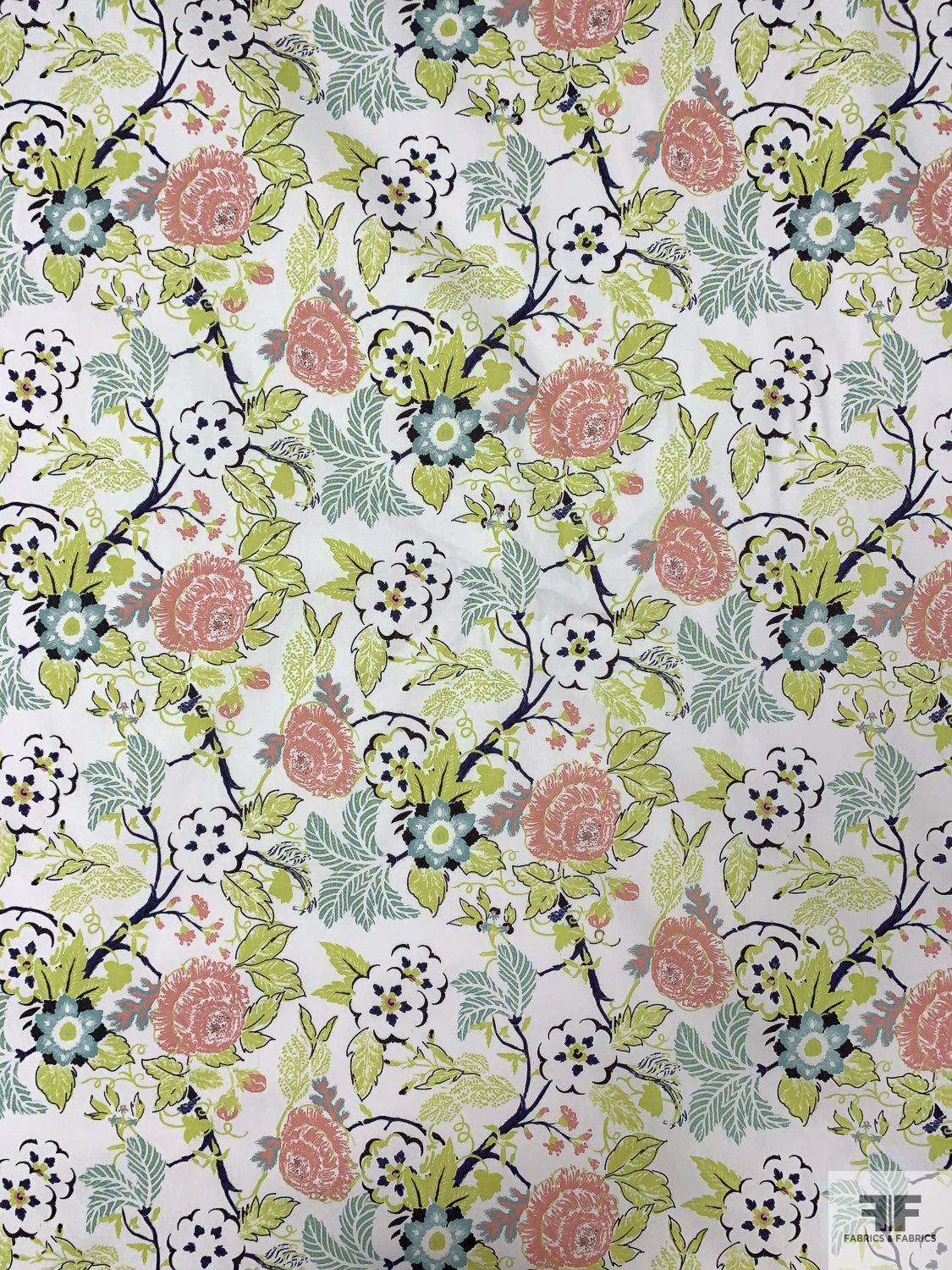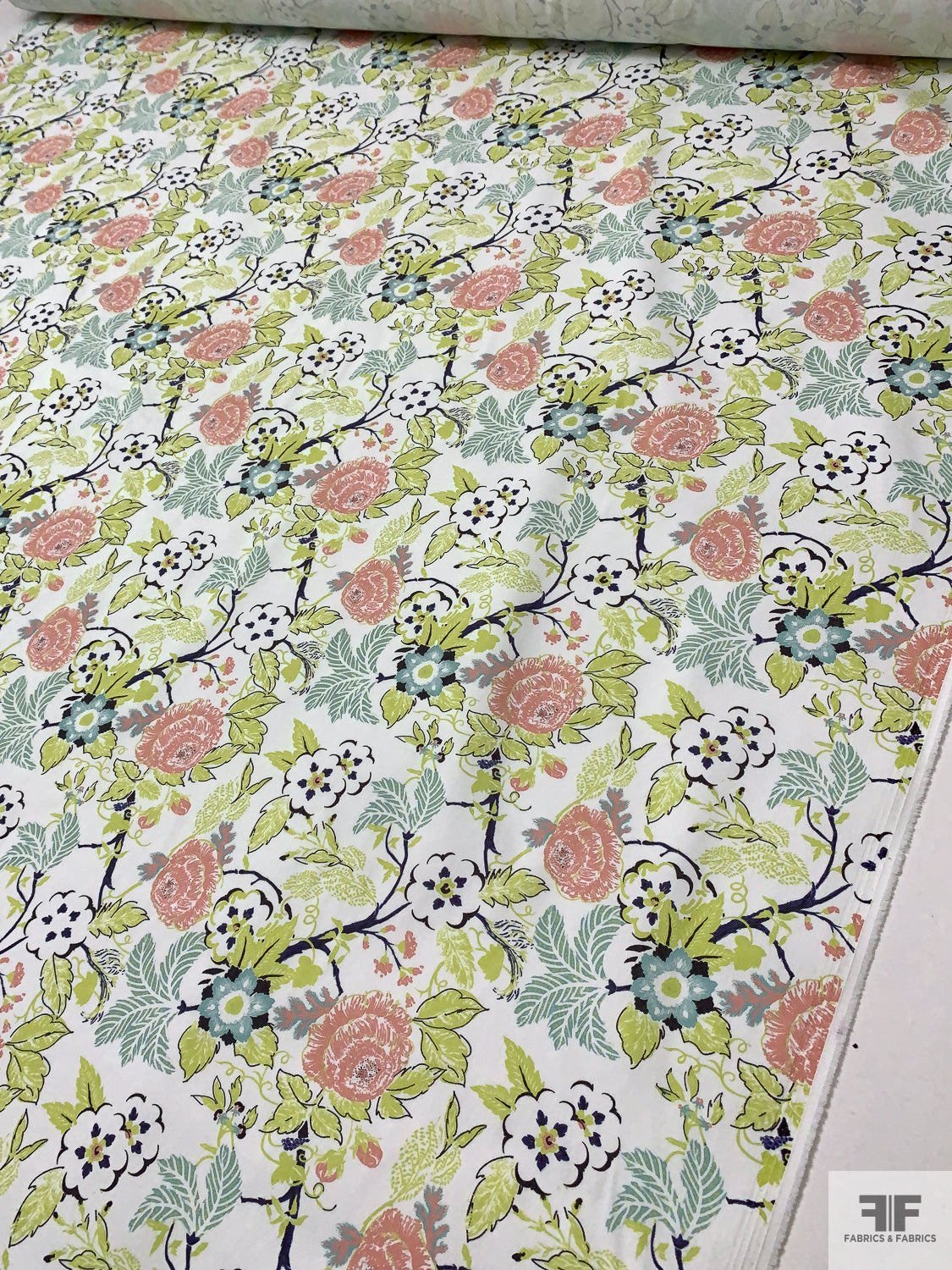 Italian Floral Printed Stretch Denim - Lime / Peach / Sage / Off-White