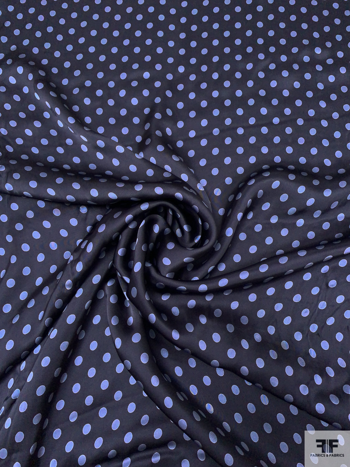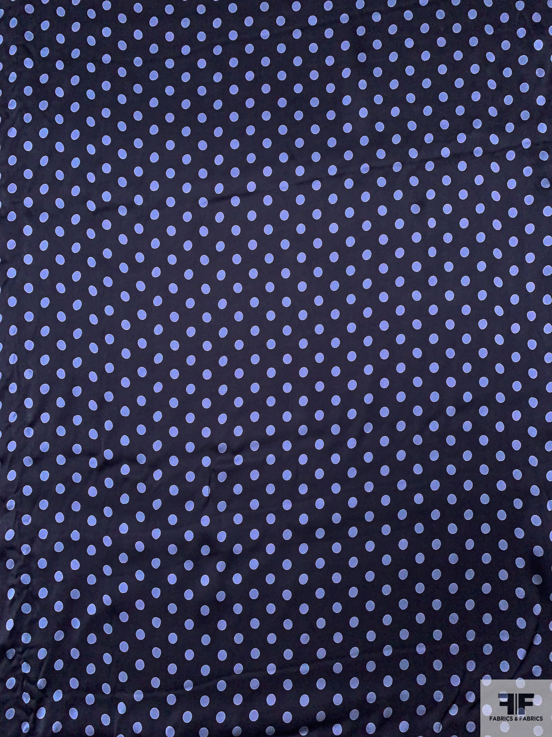 Italian Polka Dot Printed Flowy Viscose Satin - Navy / Glaucous Blue