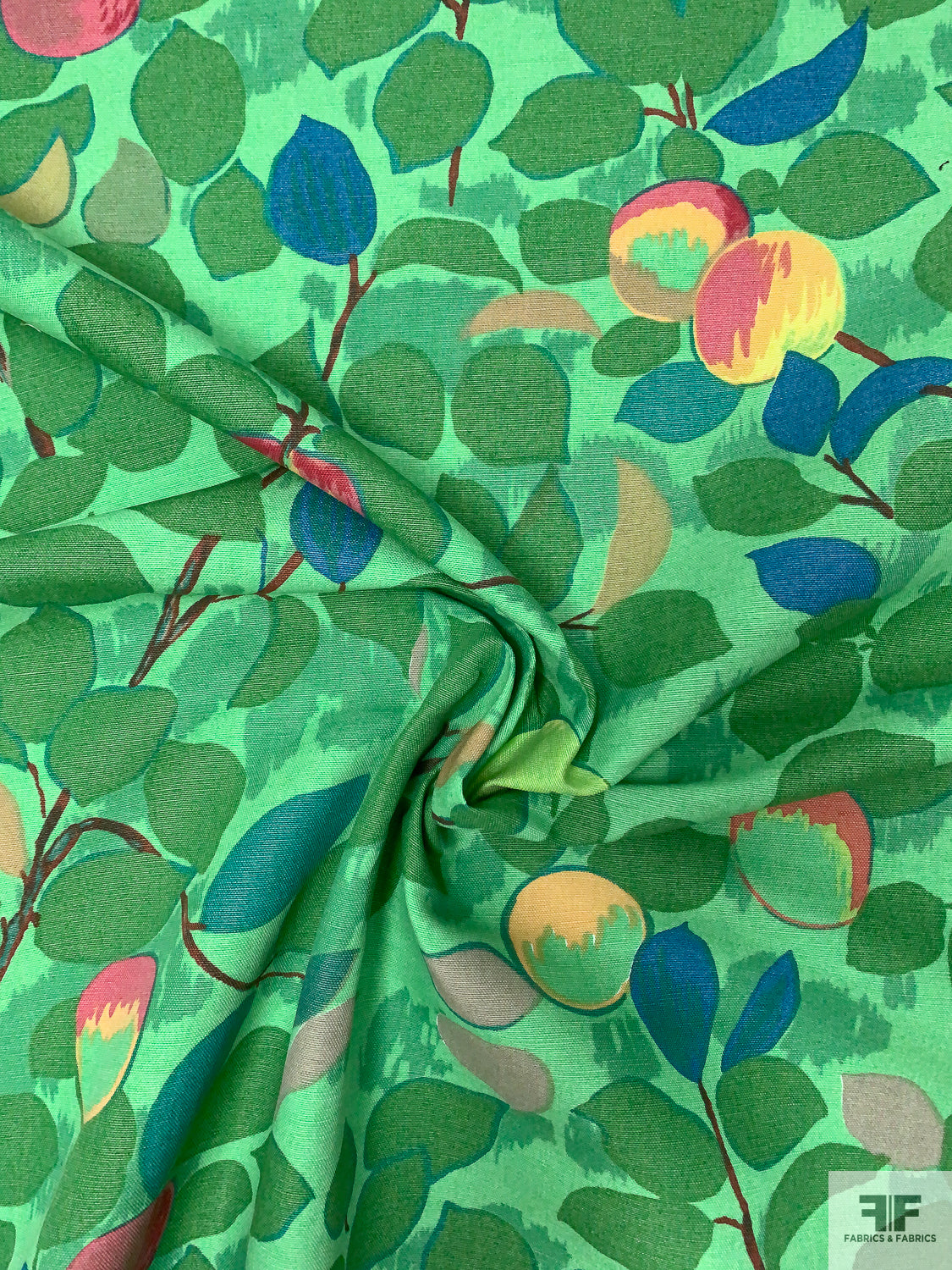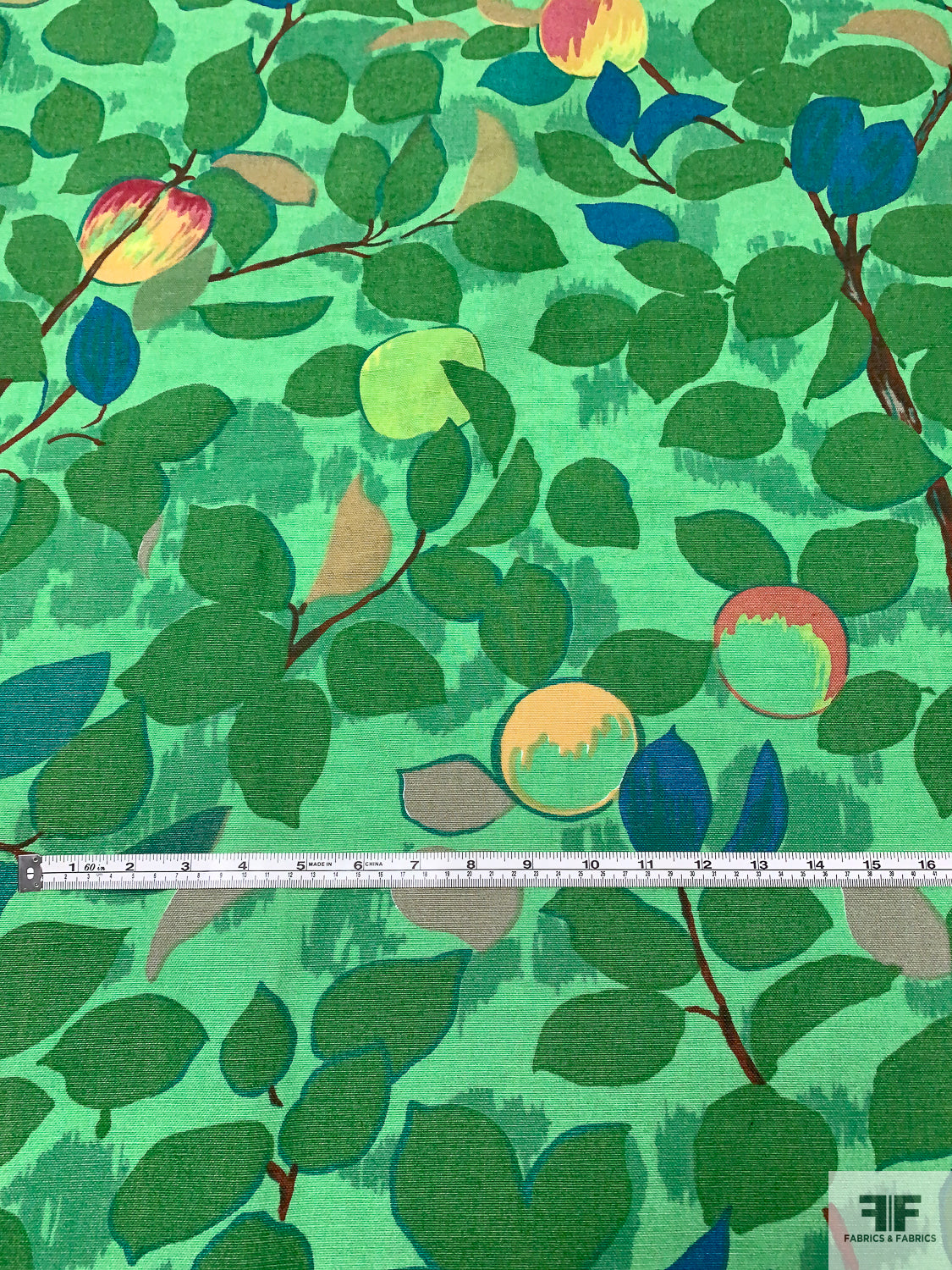 Leaf Branch Printed Cotton Canvas - Greens / Yellow / Blue