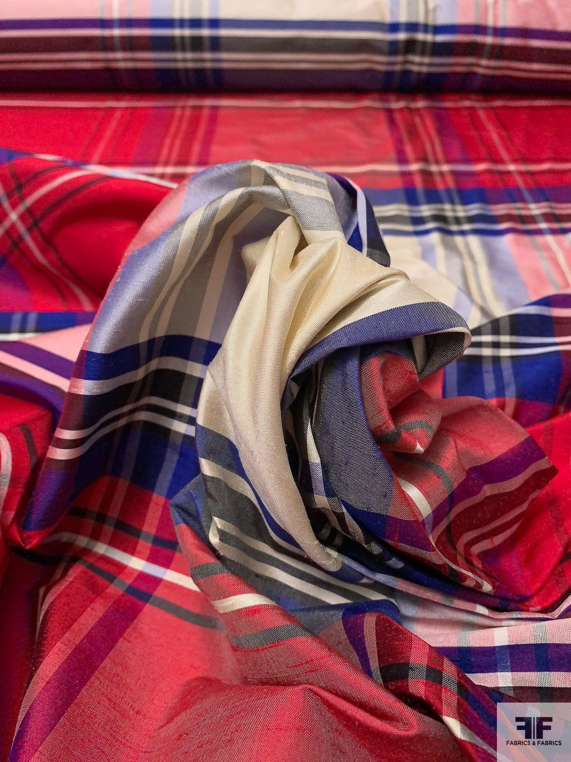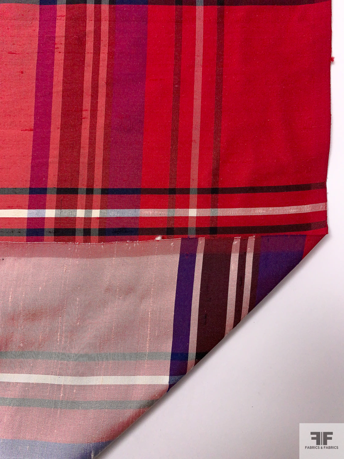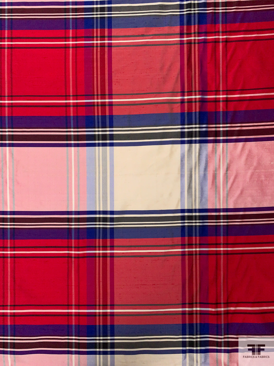 Plaid Yarn-Dyed Silk Shantung - Hot Cranberry / Purple / Off-White / Black