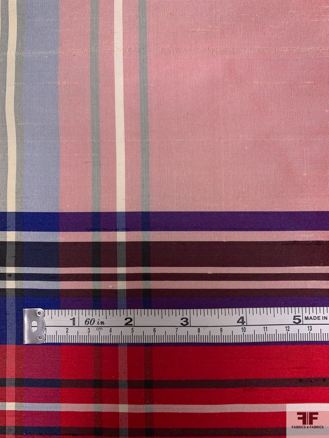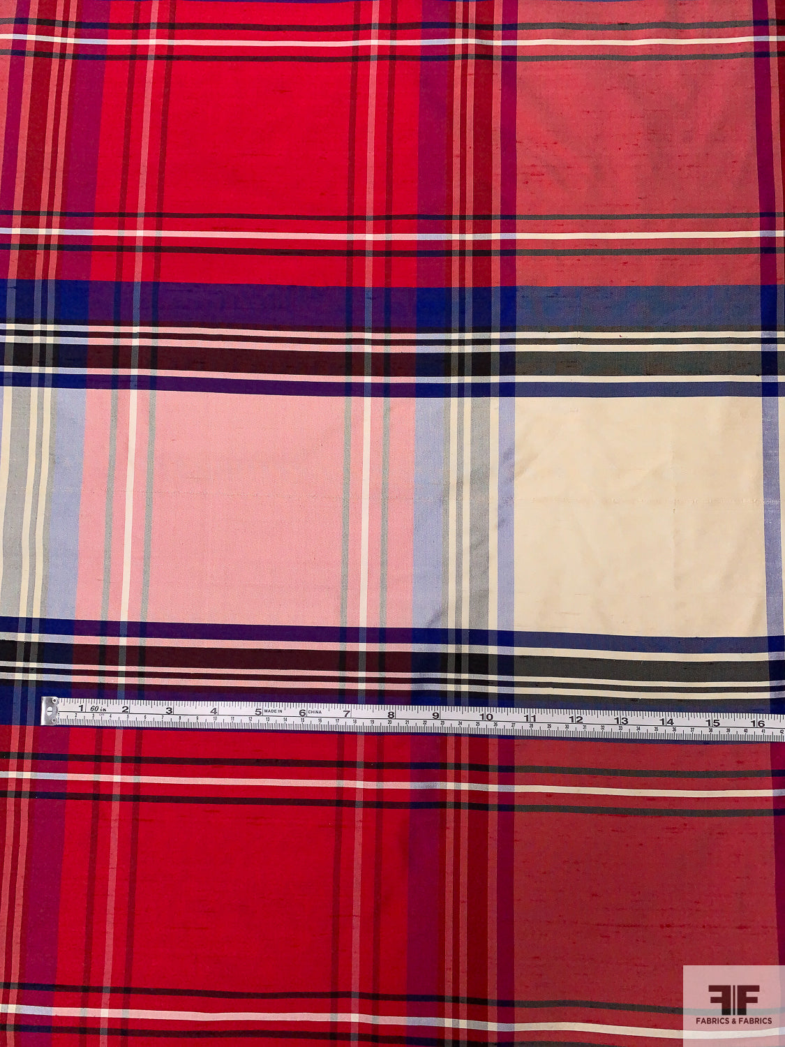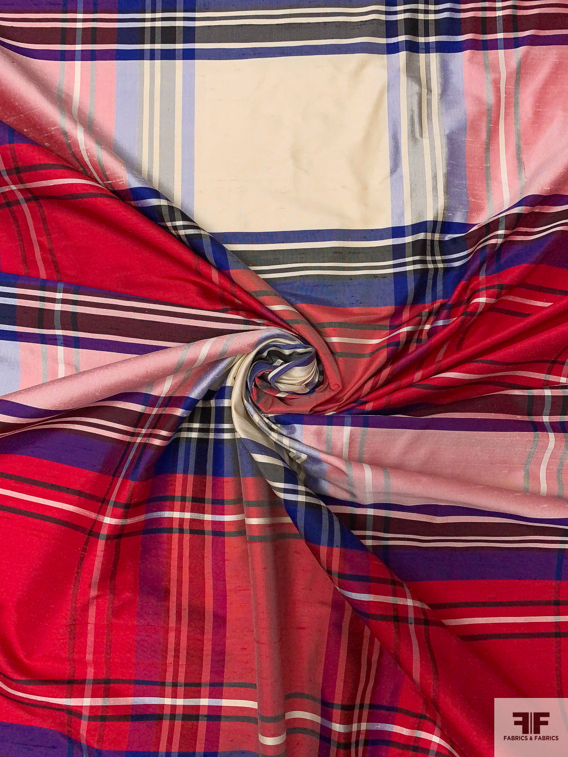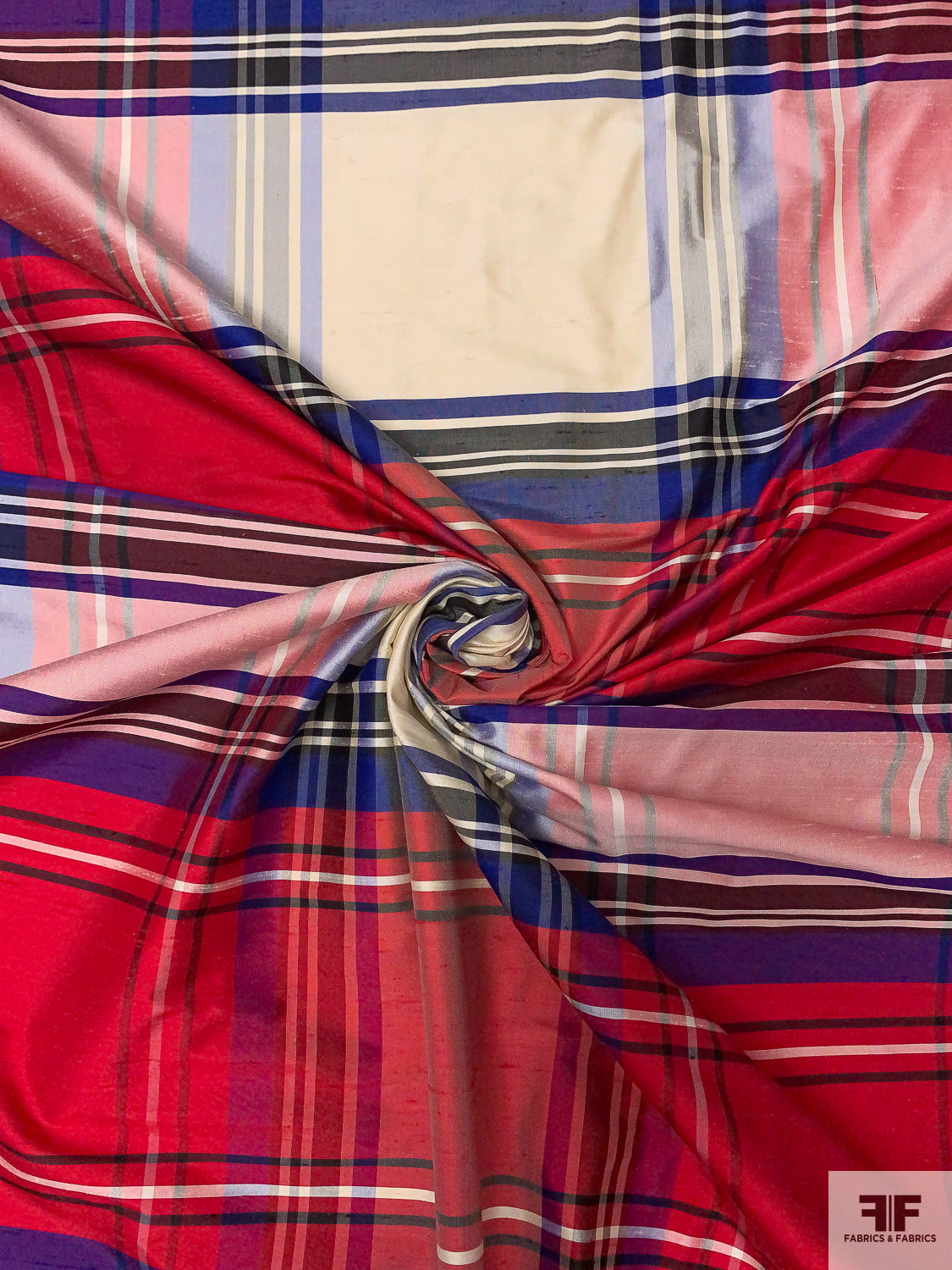 Plaid Yarn-Dyed Silk Shantung - Hot Cranberry / Purple / Off-White / Black