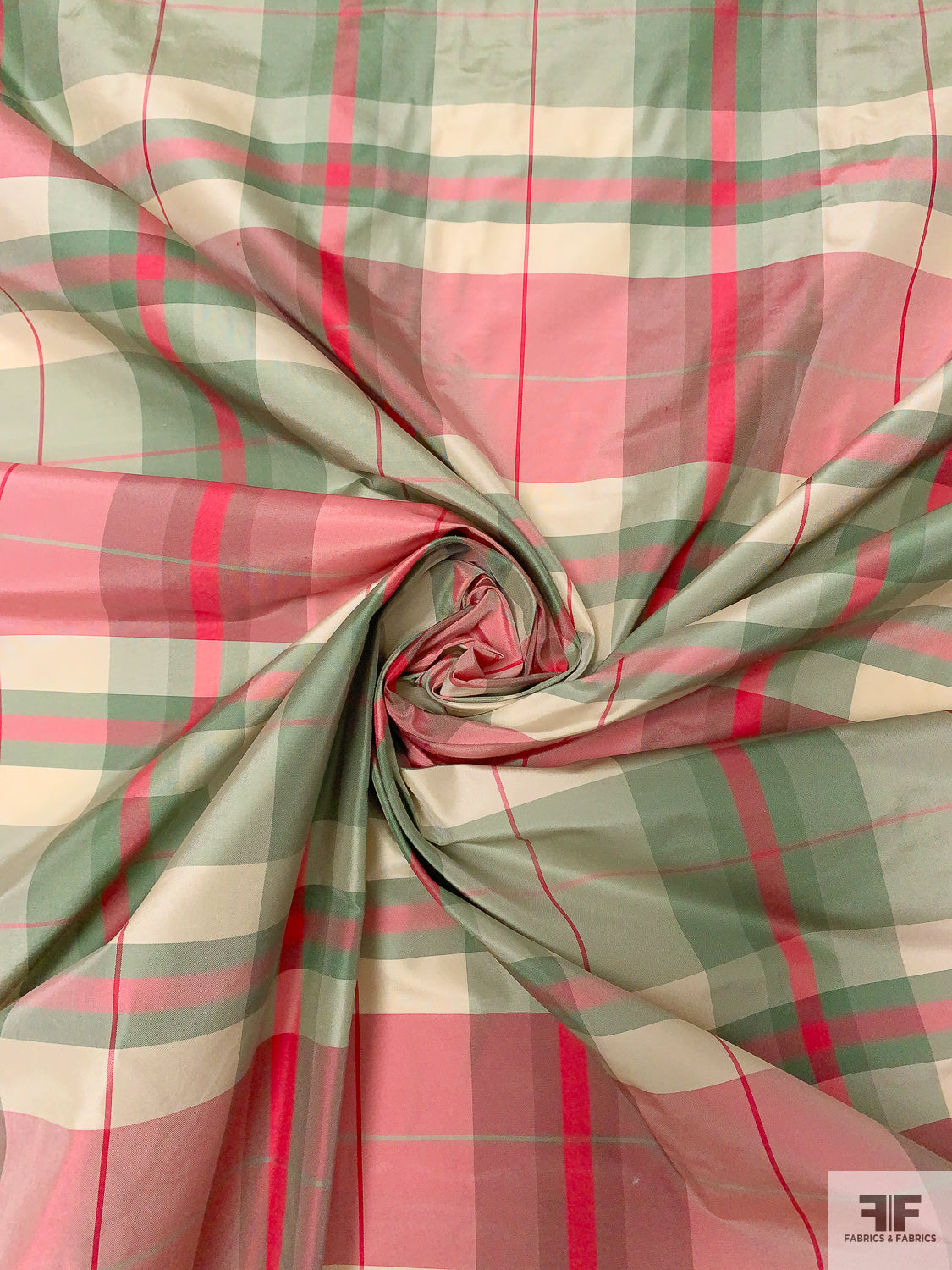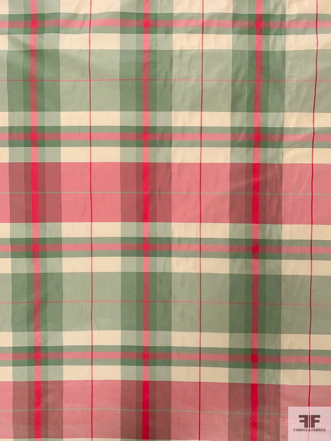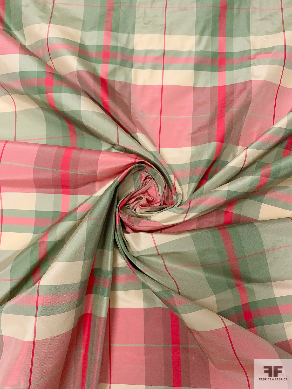 Plaid Yarn-Dyed Silk Taffeta - Dusty Aqua / Cranberry / Off-White
