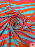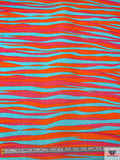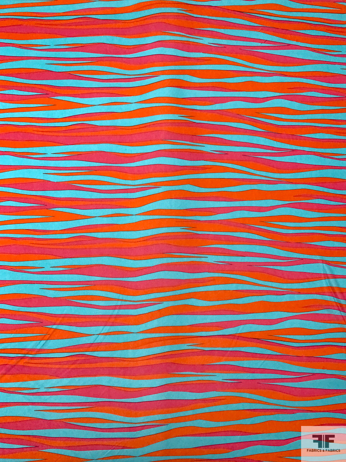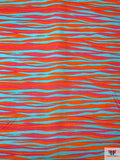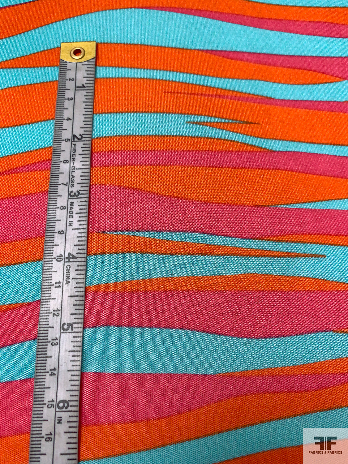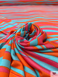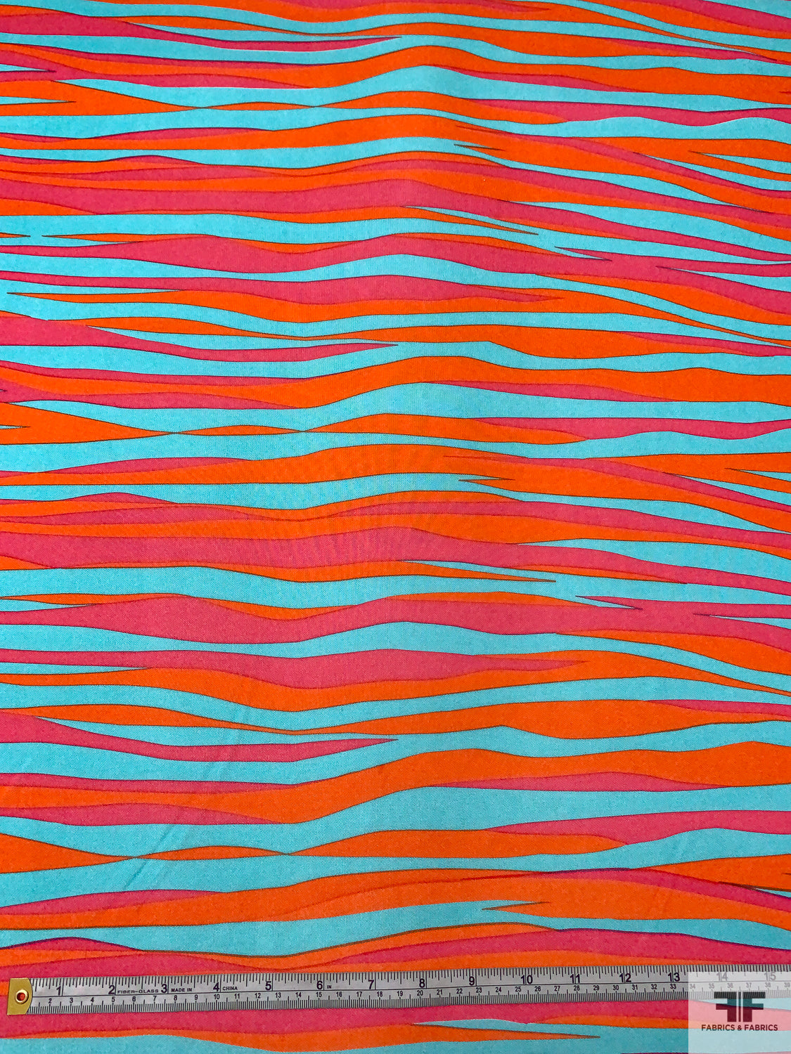 Wavy Striations Printed Silk Jersey Knit - Orange / Magenta / Aqua