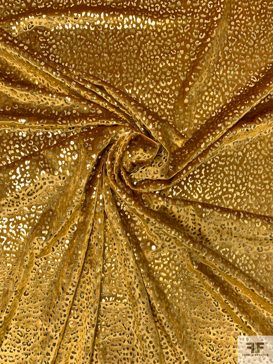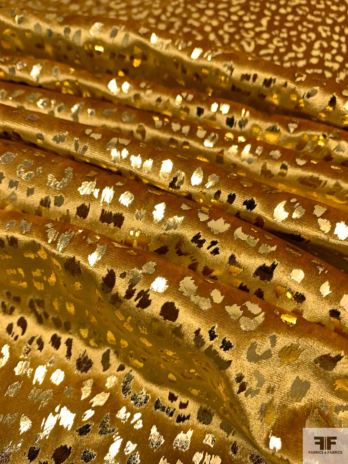 Cheetah Pattern Foil Printed Stretch Panné Velvet - Gold