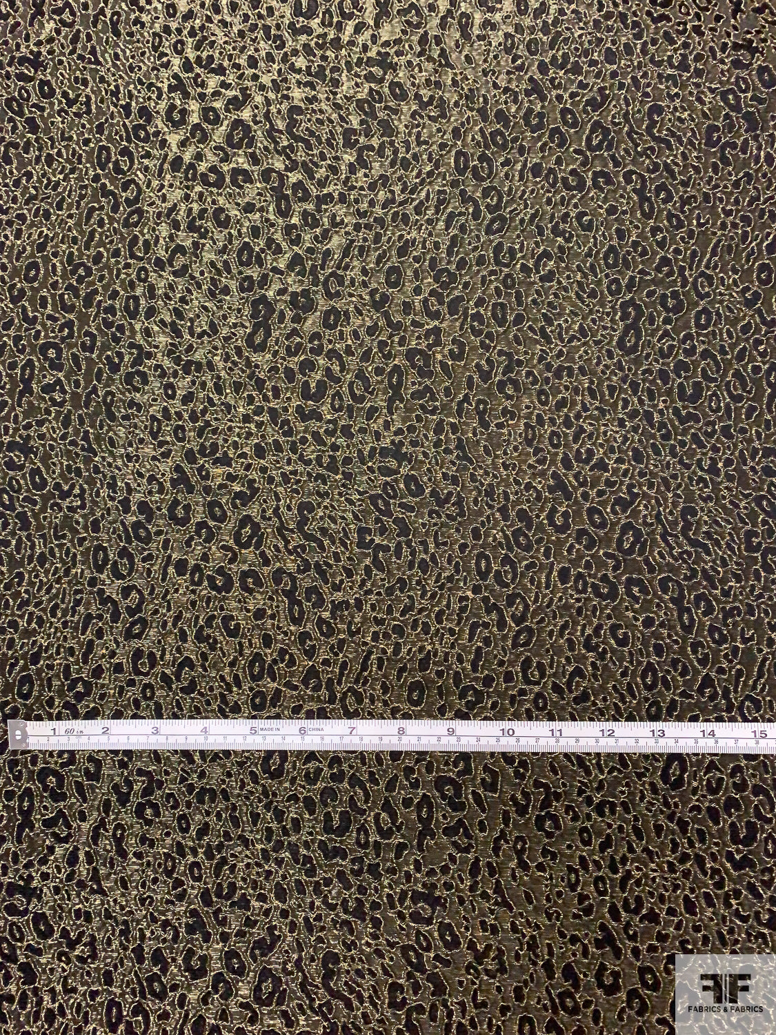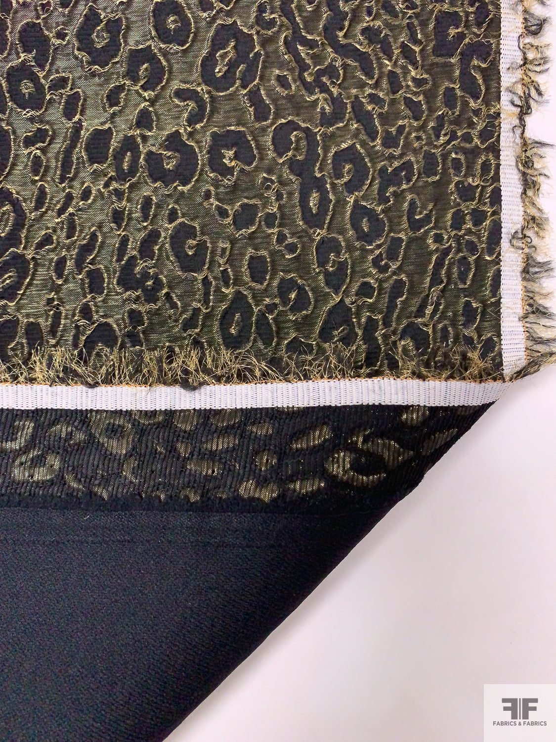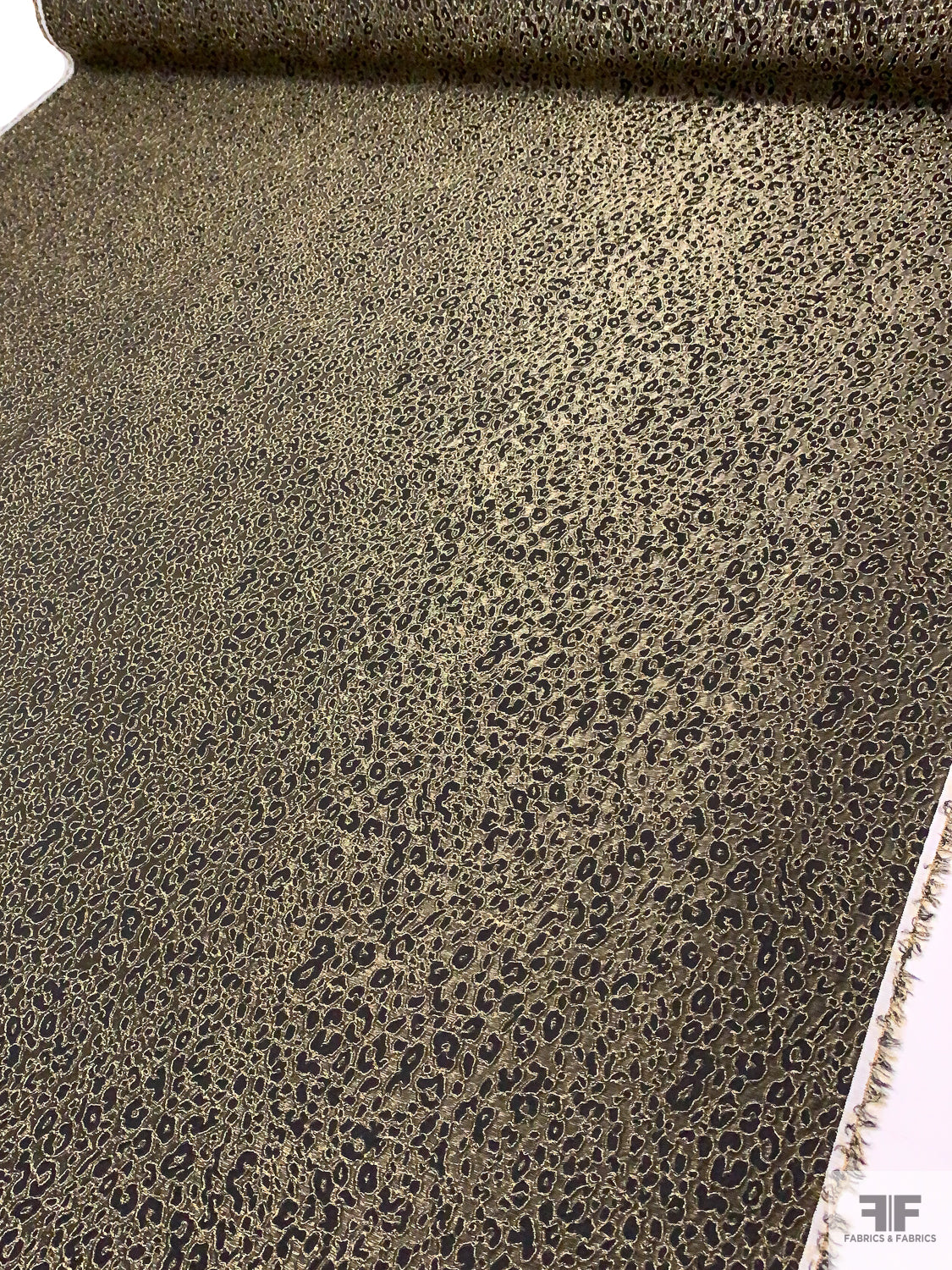 Italian Cheetah Textured Metallic Brocade with Fused Back - Golden Olive / Black