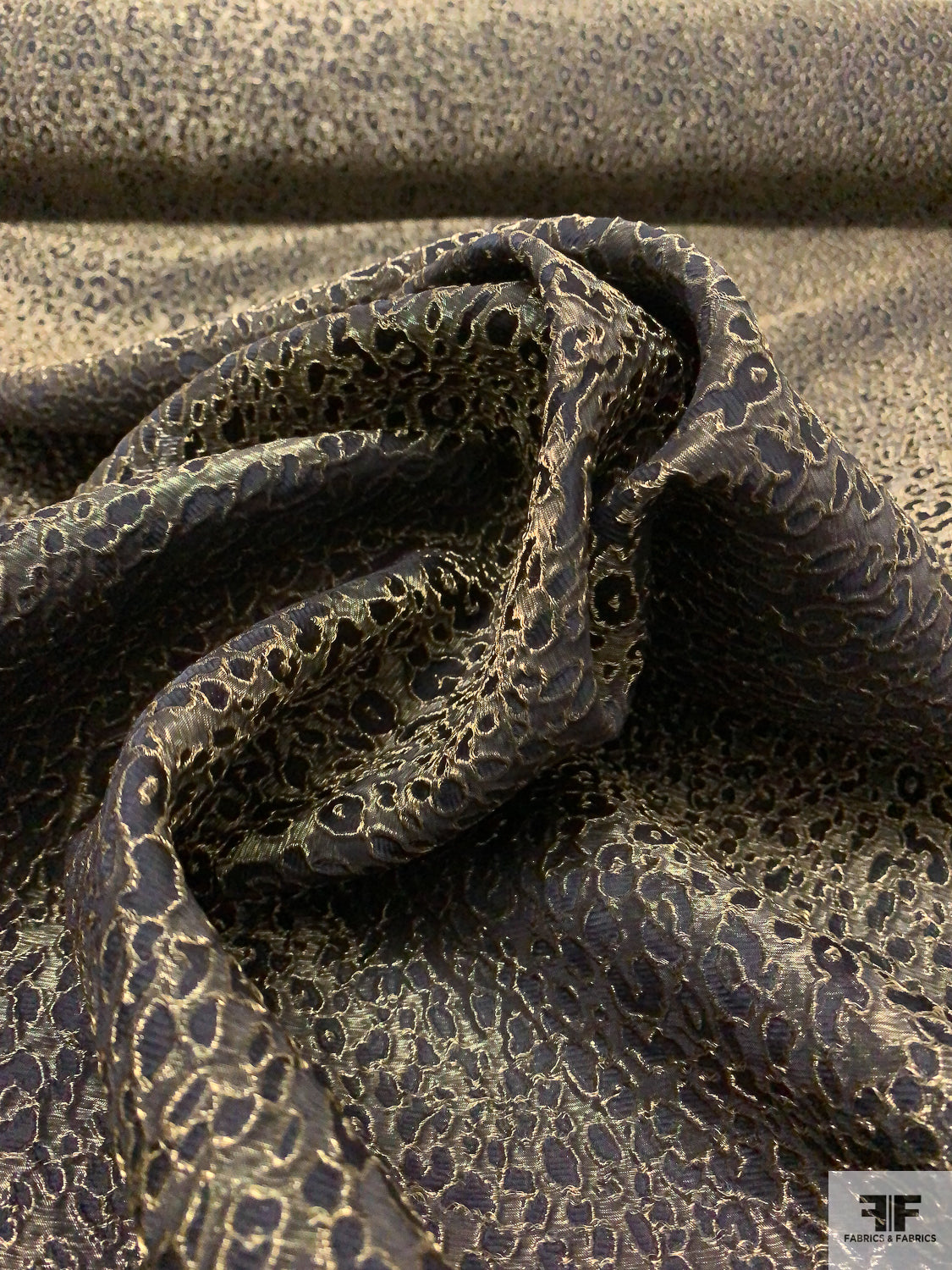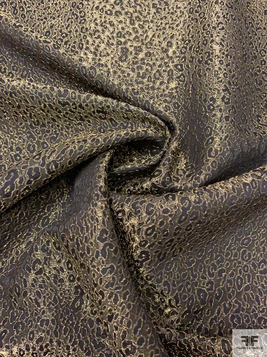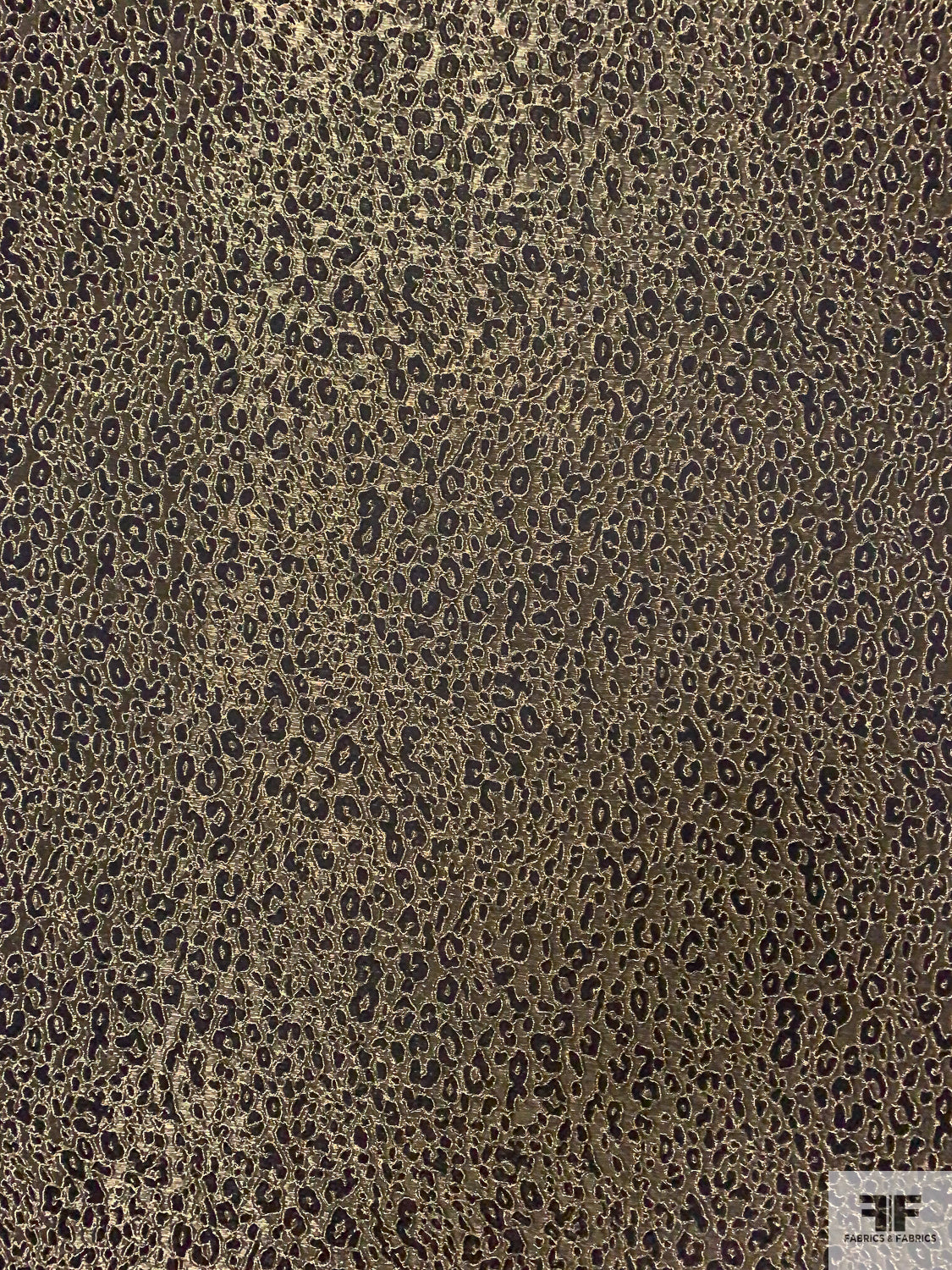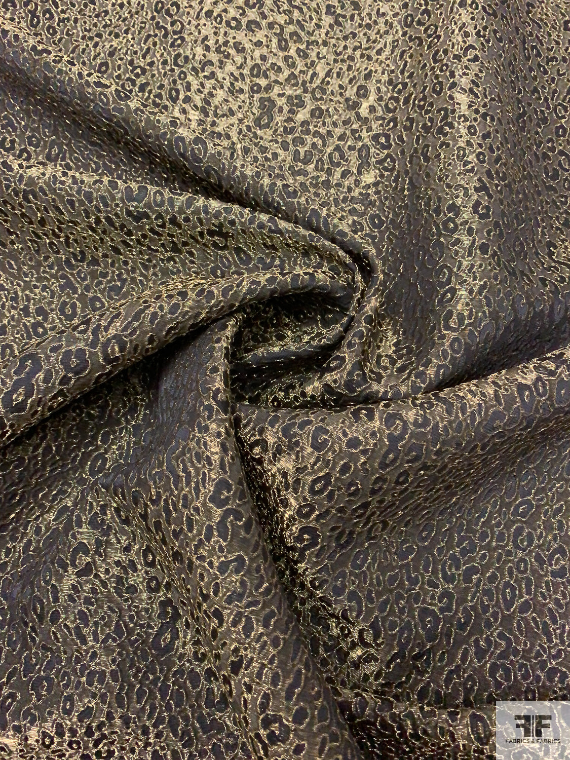 Italian Cheetah Textured Metallic Brocade with Fused Back - Golden Olive / Black