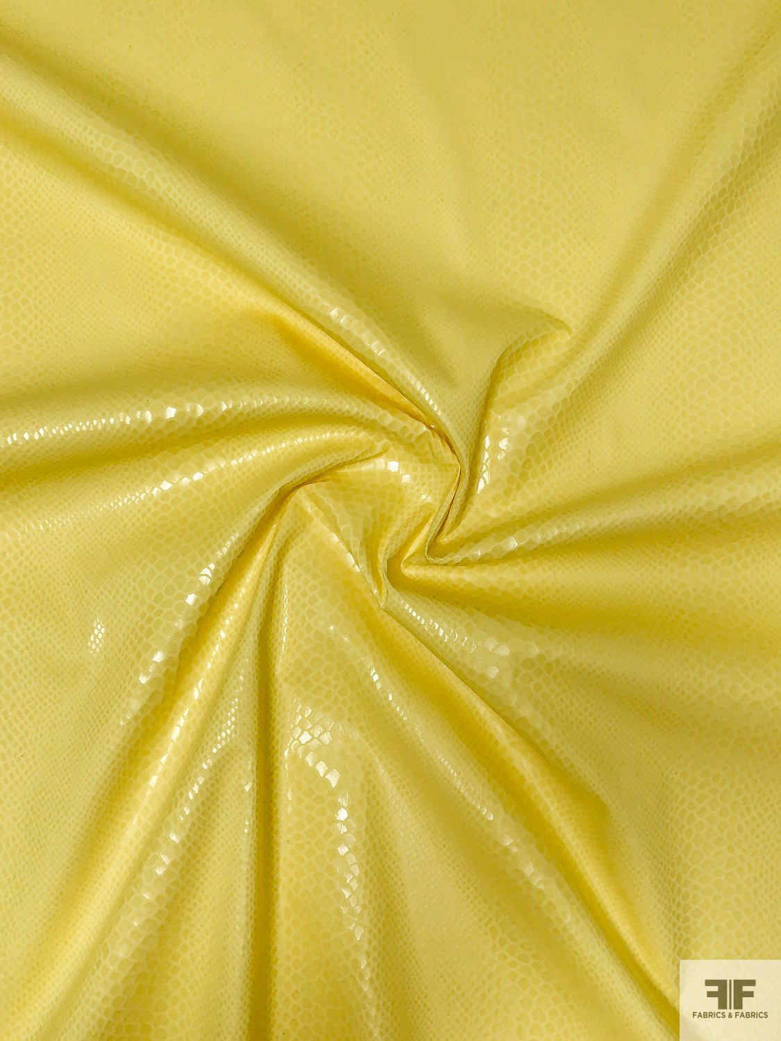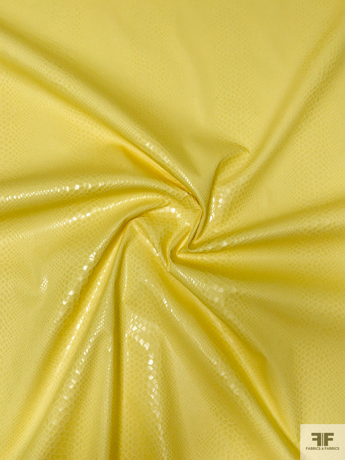Italian Reptile Pattern Gloss-Stamped Denim with Stretch - Yellow