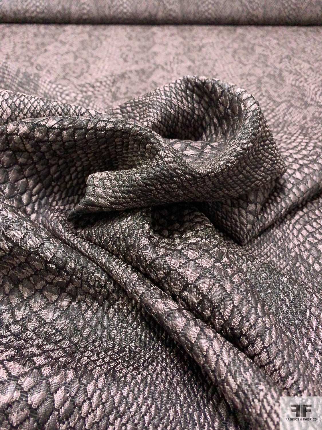 Reptile Pattern Stretch Brocade - Dusty Light Rose / Black