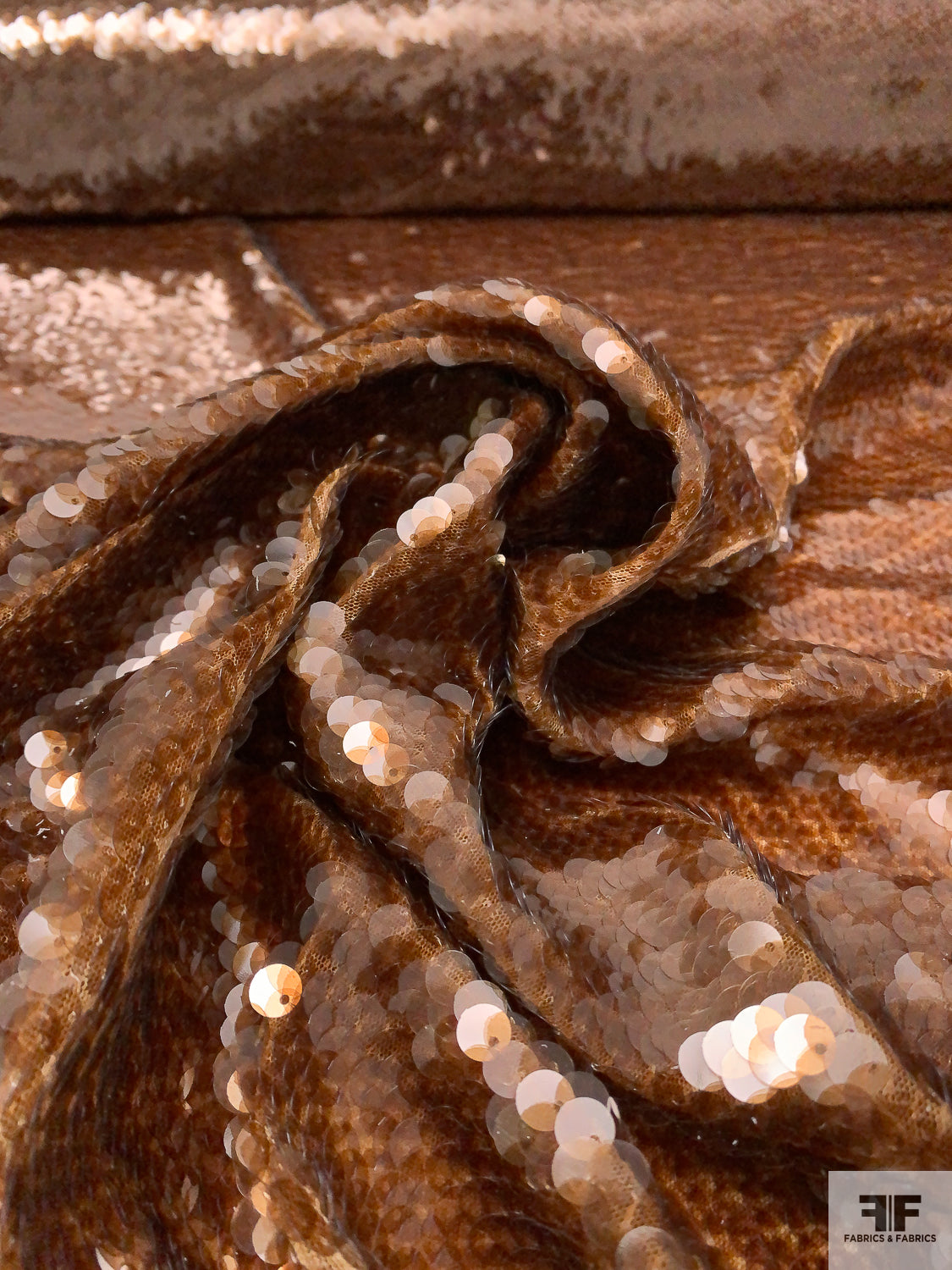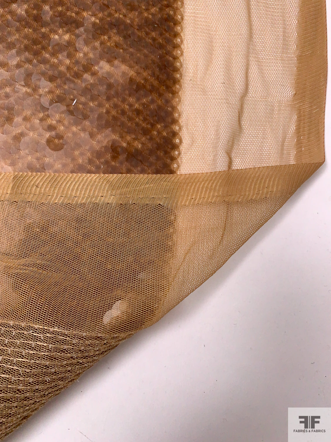 Sheer Fish Scale Sequins on Tulle - Caramel Gold Brown