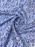 Italian Playful Floral Printed Stretch Viscose Crepe - Blue / Off-White
