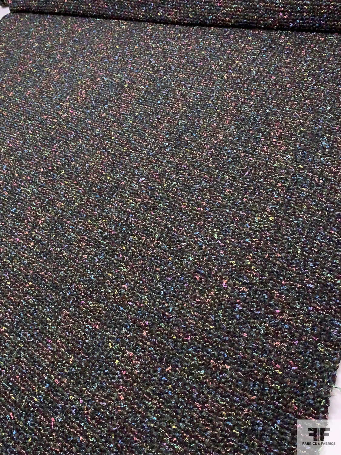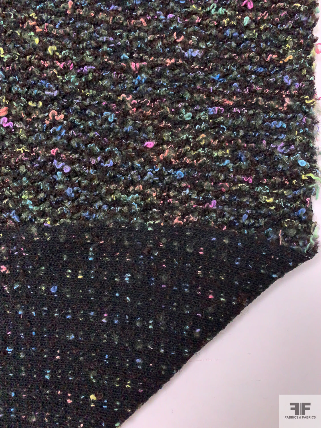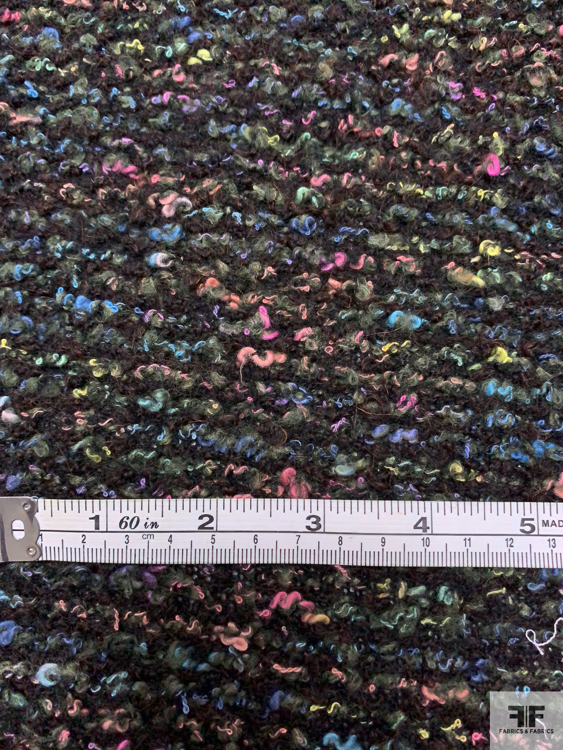 Italian Bouclé-Style Tweed Sweater Knit - Earthy Green / Black / Multicolor