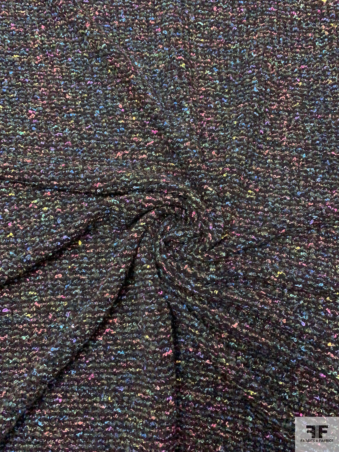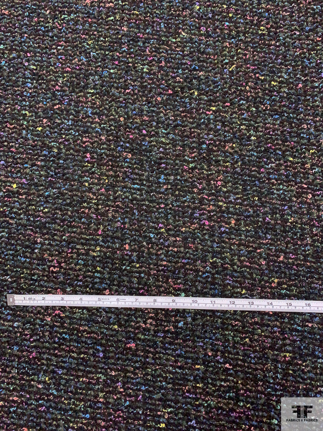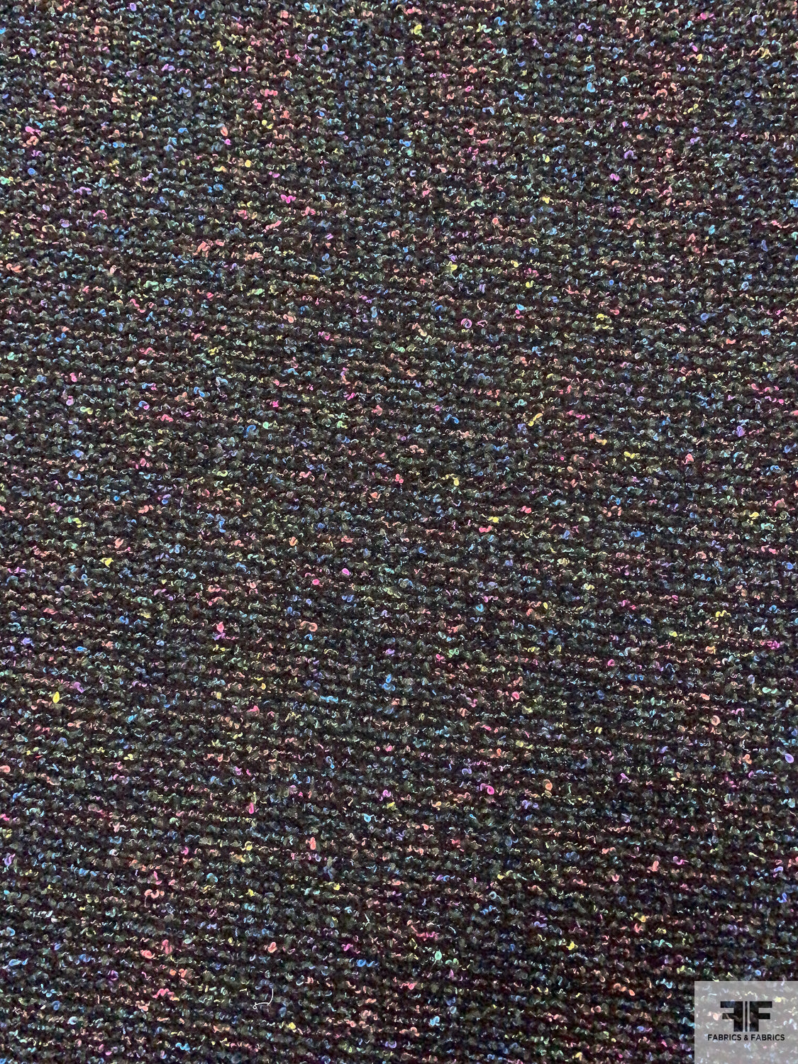 Italian Bouclé-Style Tweed Sweater Knit - Earthy Green / Black / Multicolor