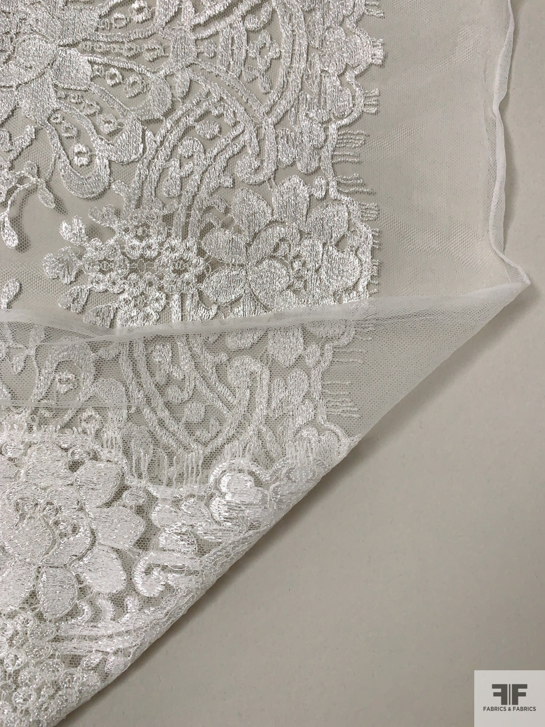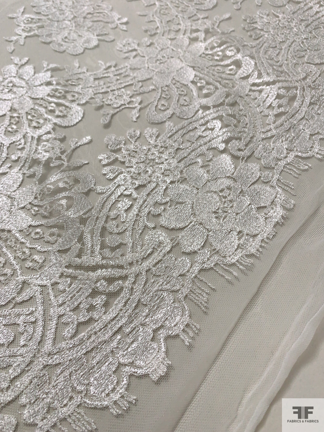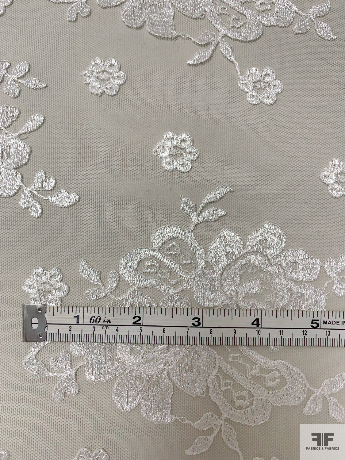 Floral Double-Border Pattern Embroidered Tulle - Off-White