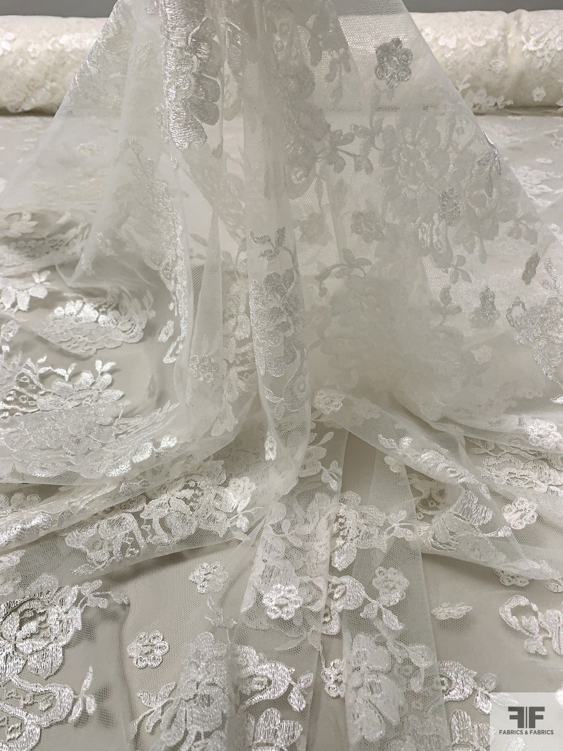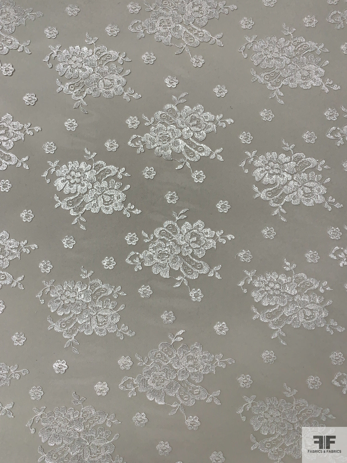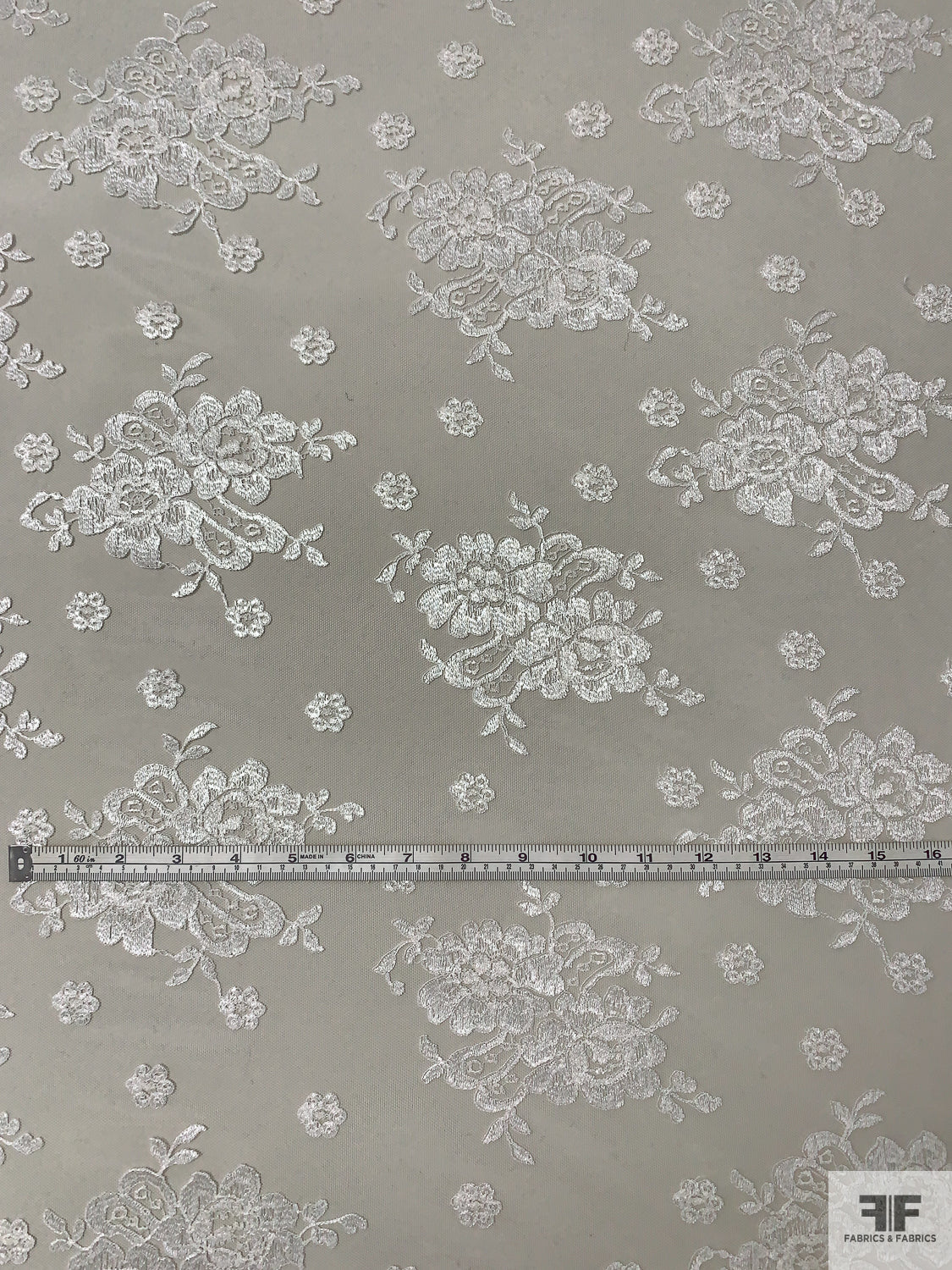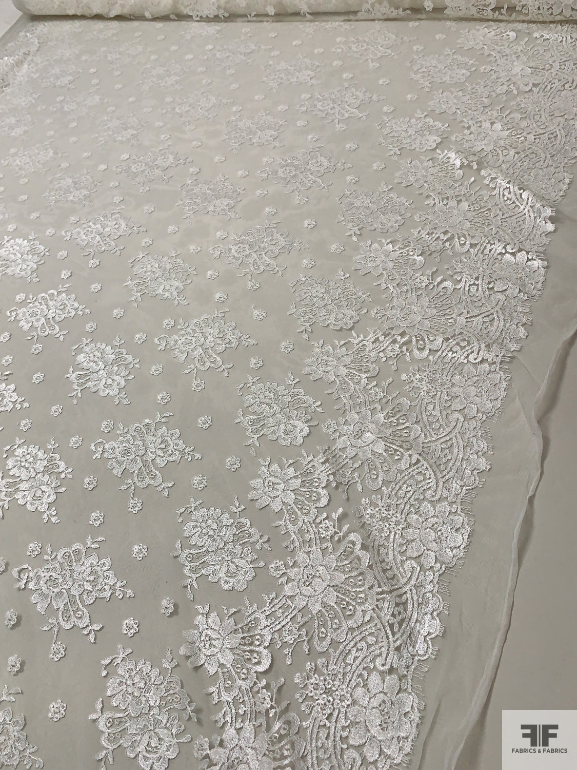 Floral Double-Border Pattern Embroidered Tulle - Off-White