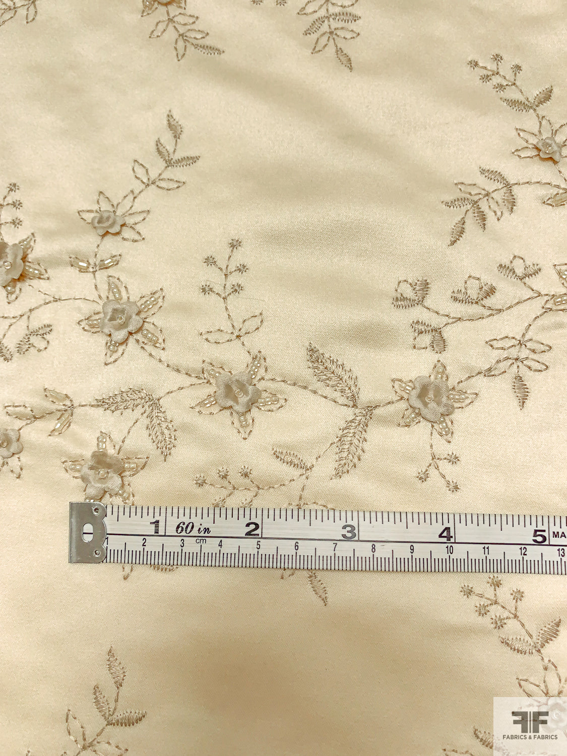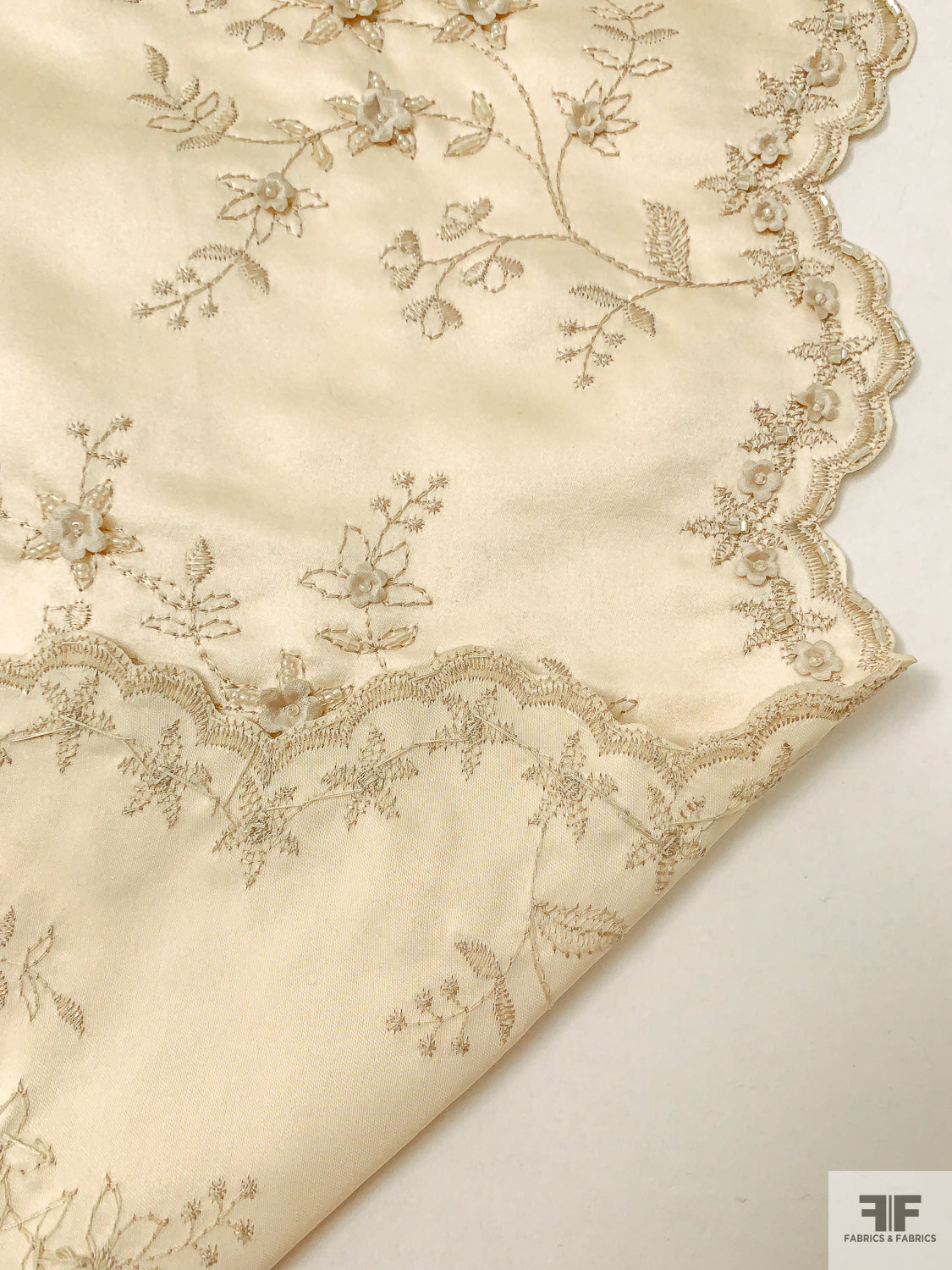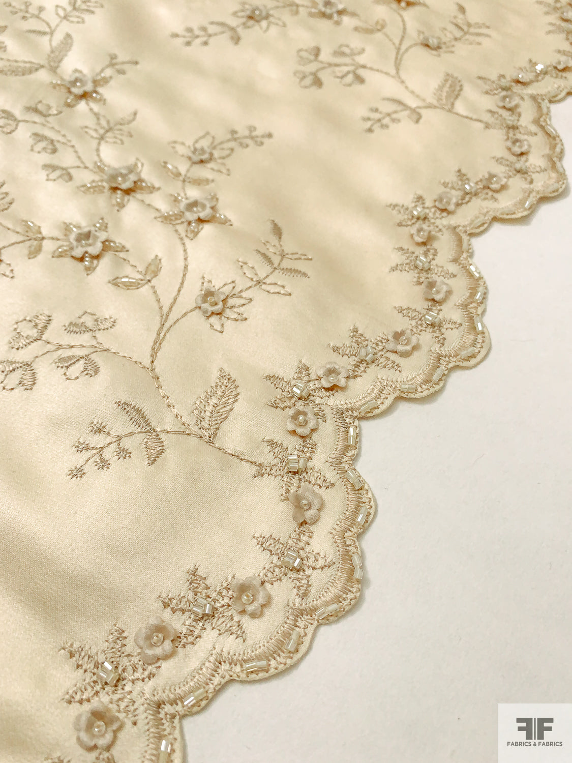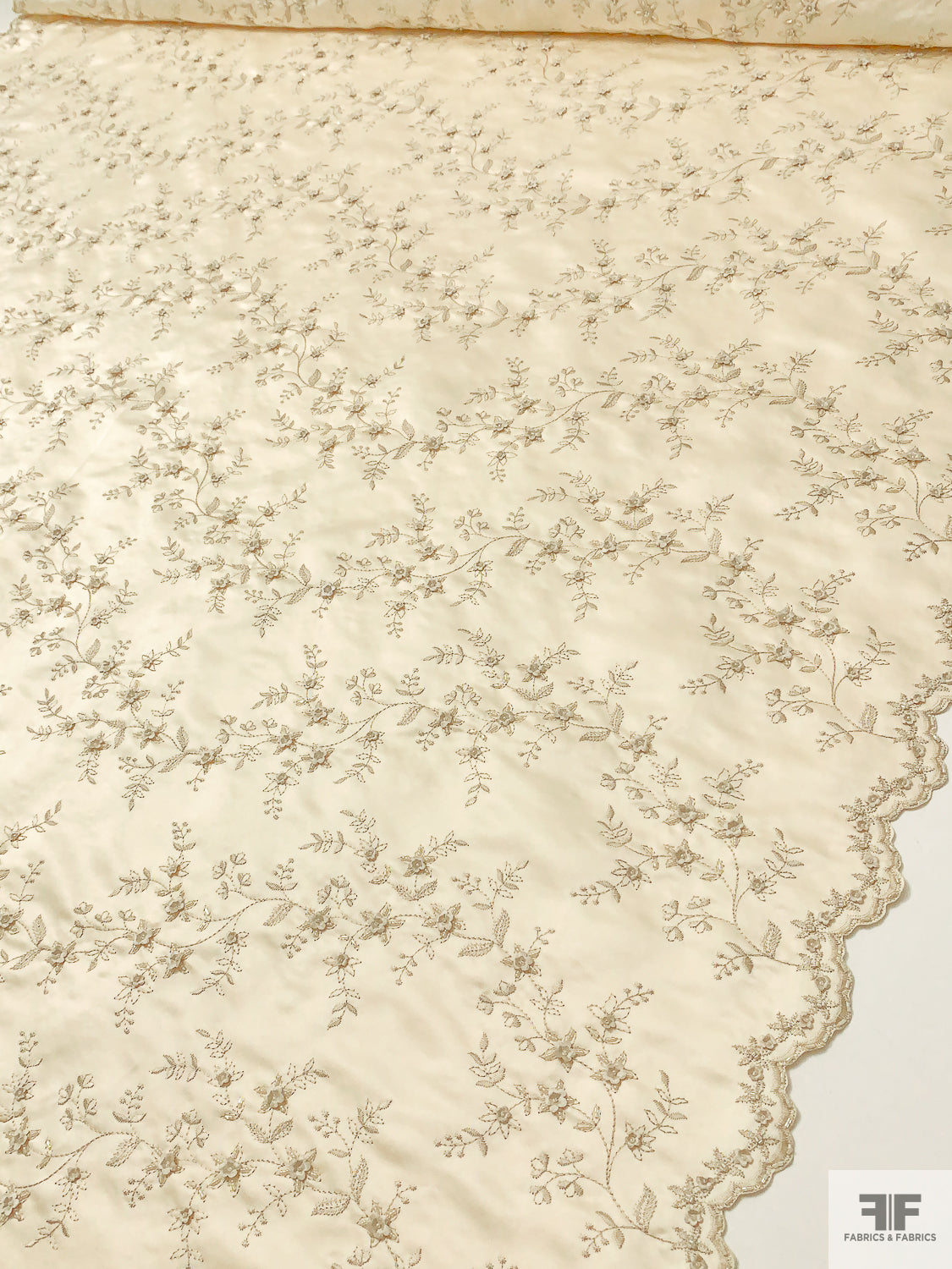 Floral Vine Embroidered and Double-Scalloped Satin - Champagne