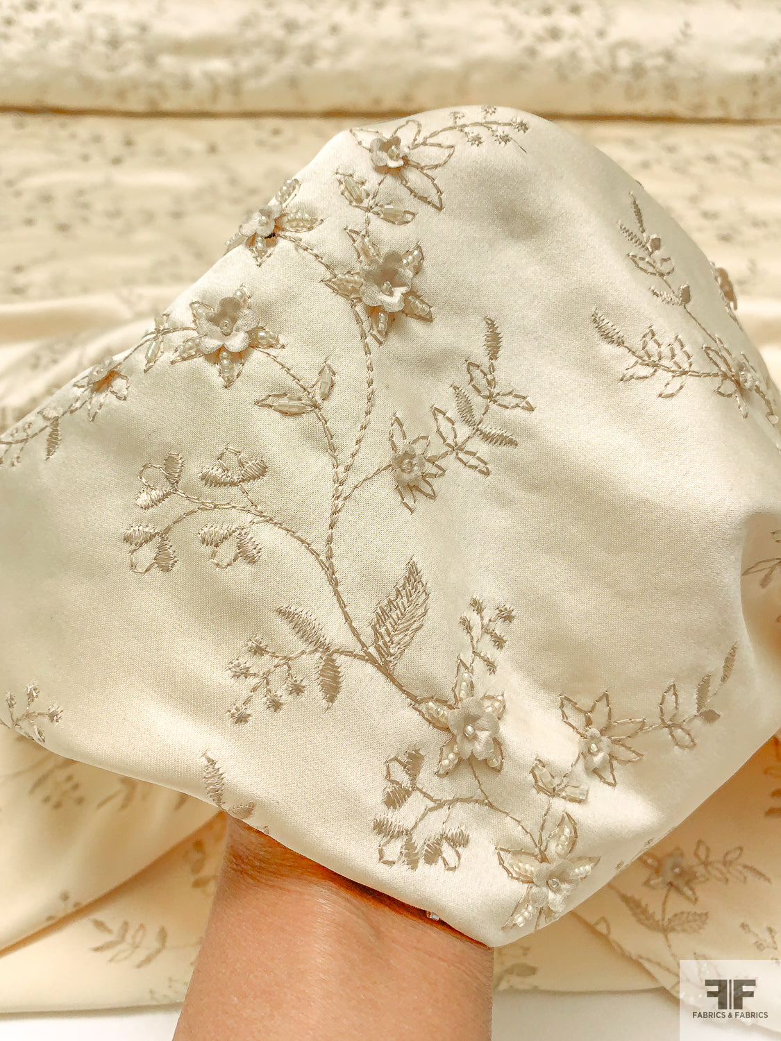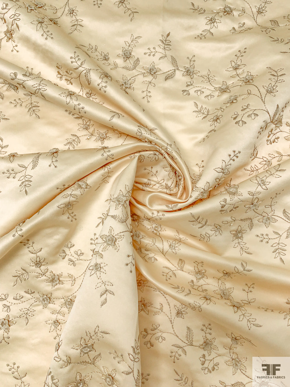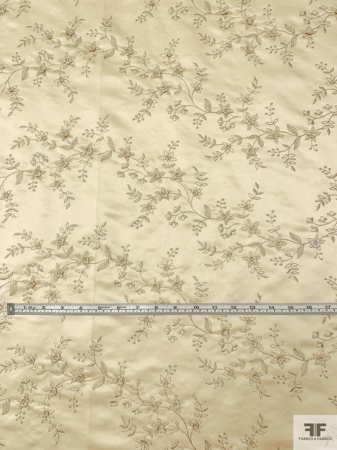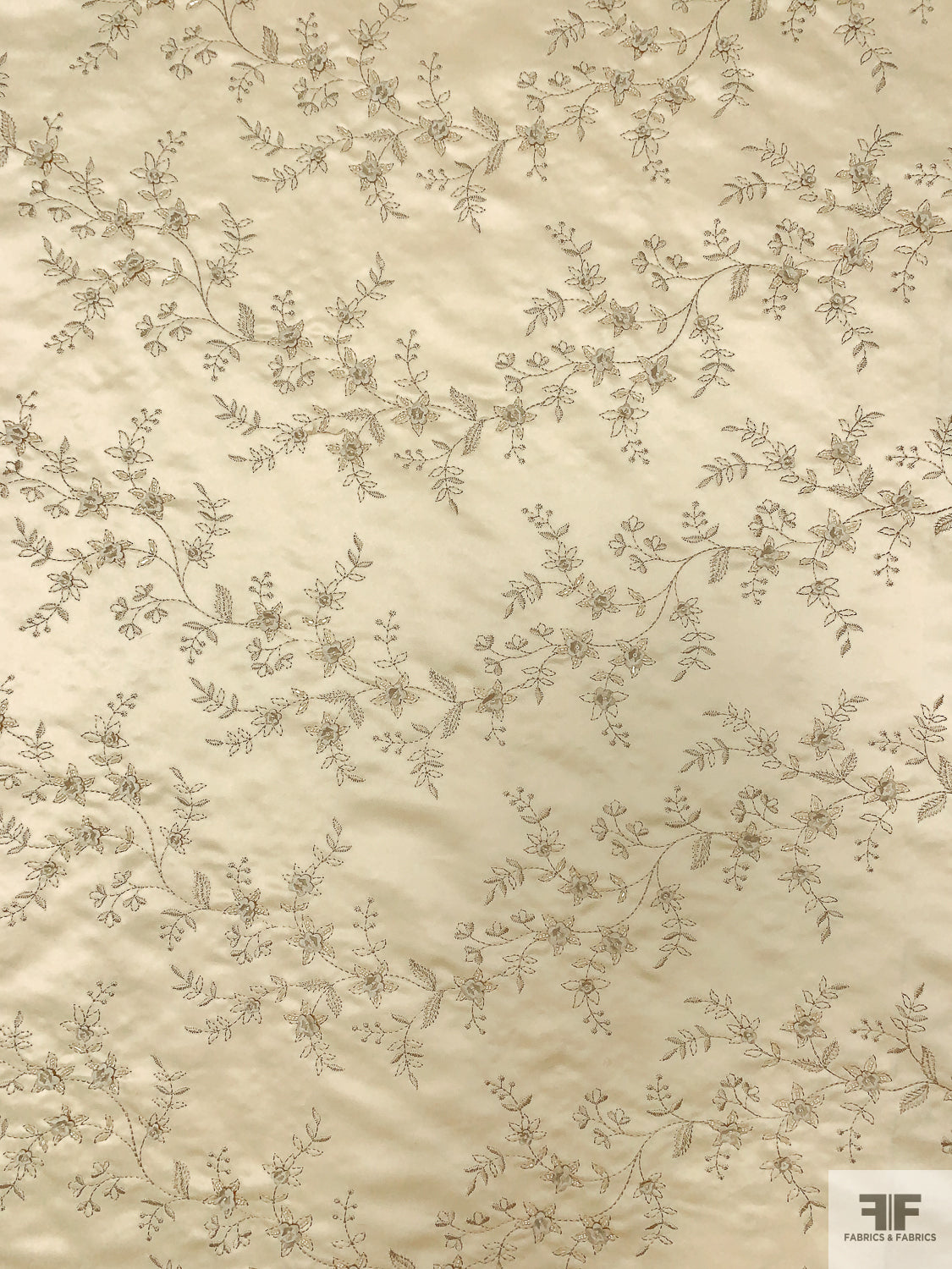 Floral Vine Embroidered and Double-Scalloped Satin - Champagne