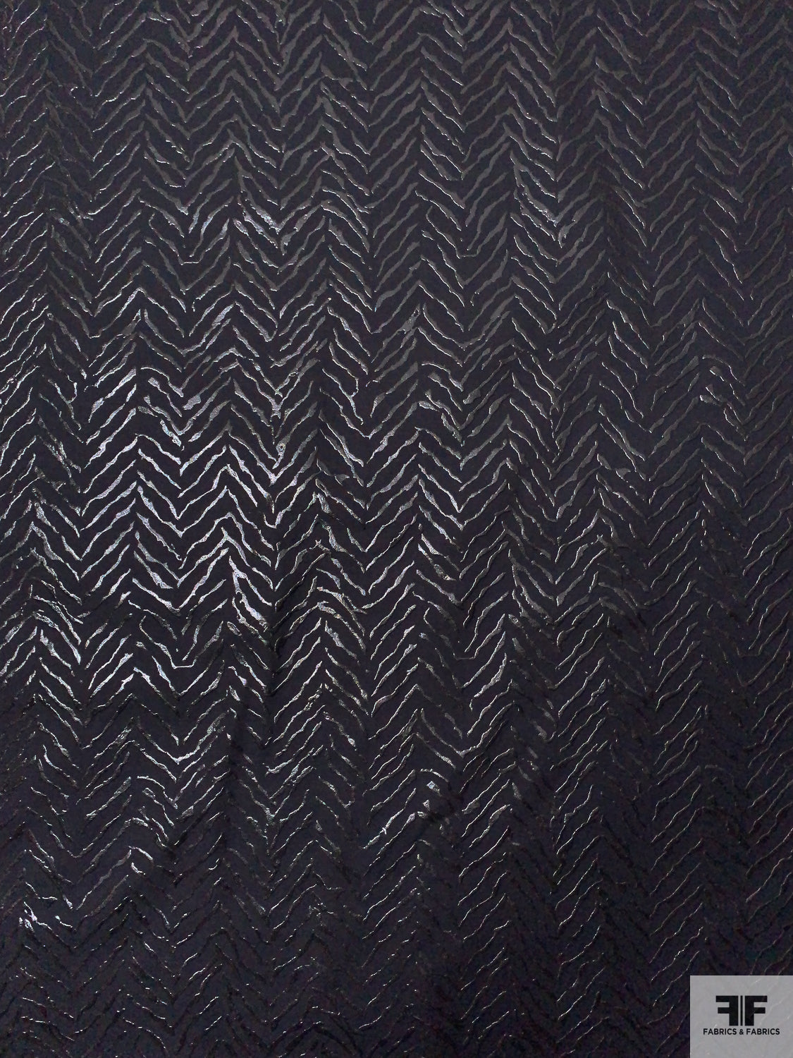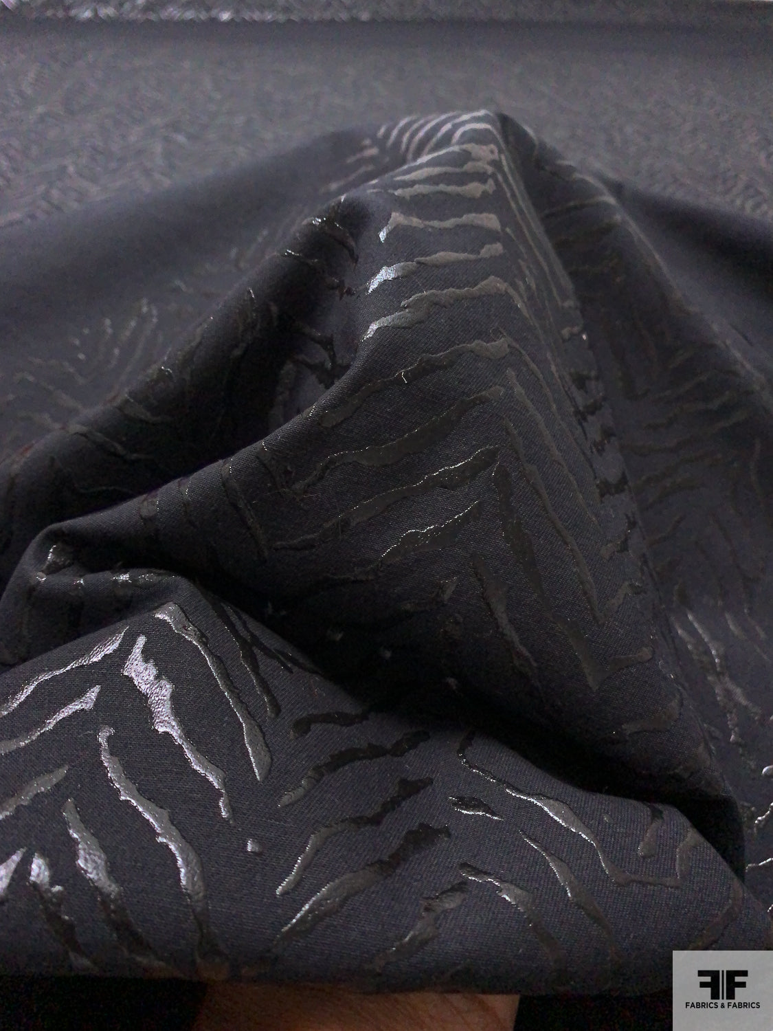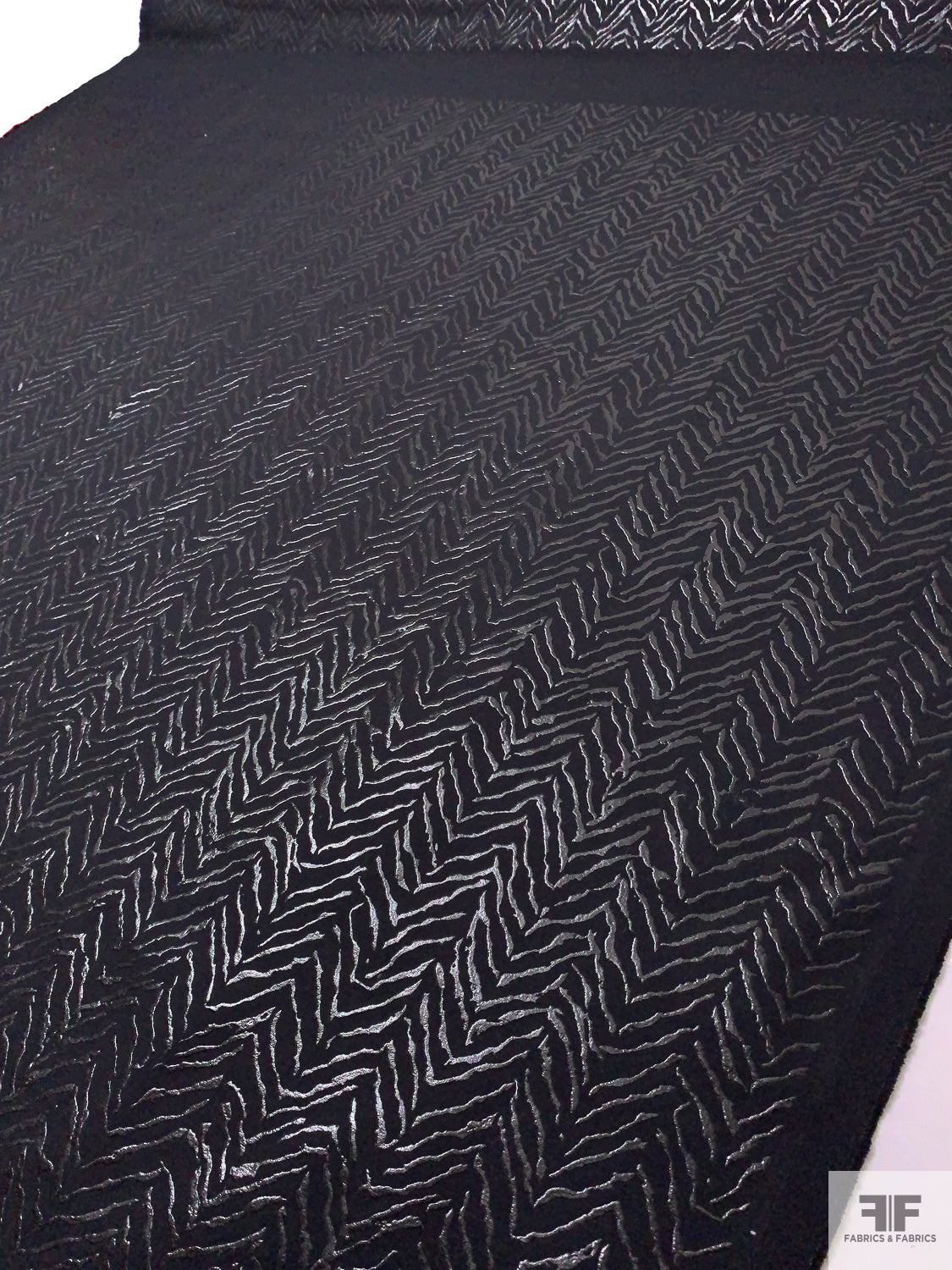 Broken Chevron Rubberized Printed Denim Panel - Black
