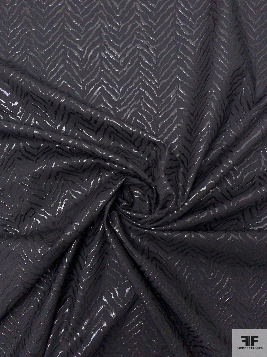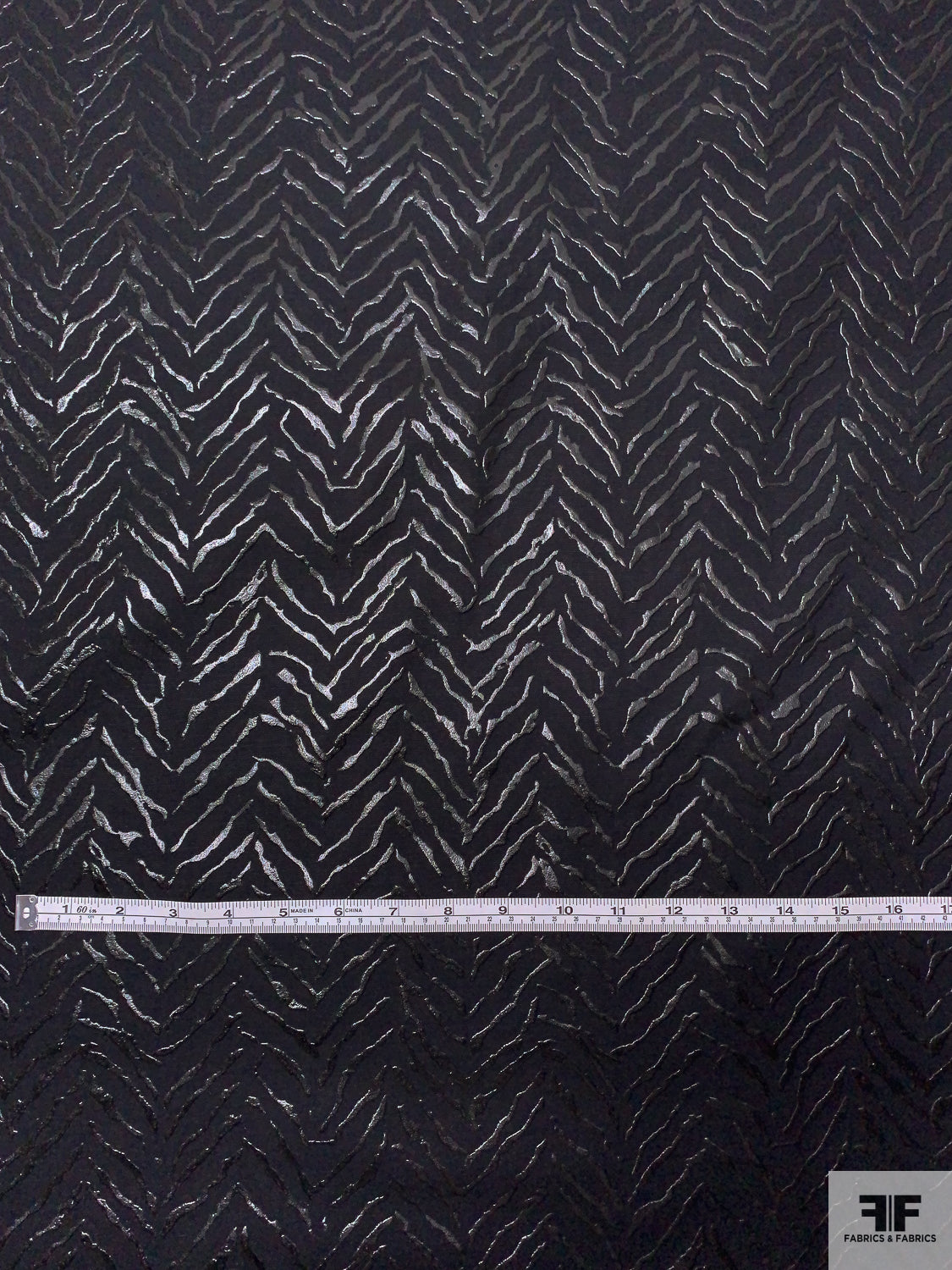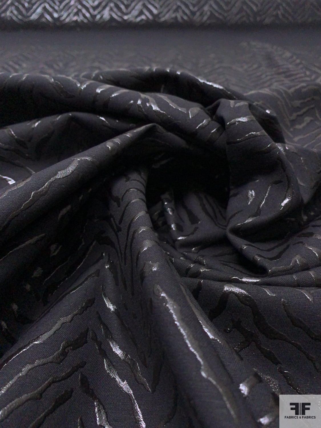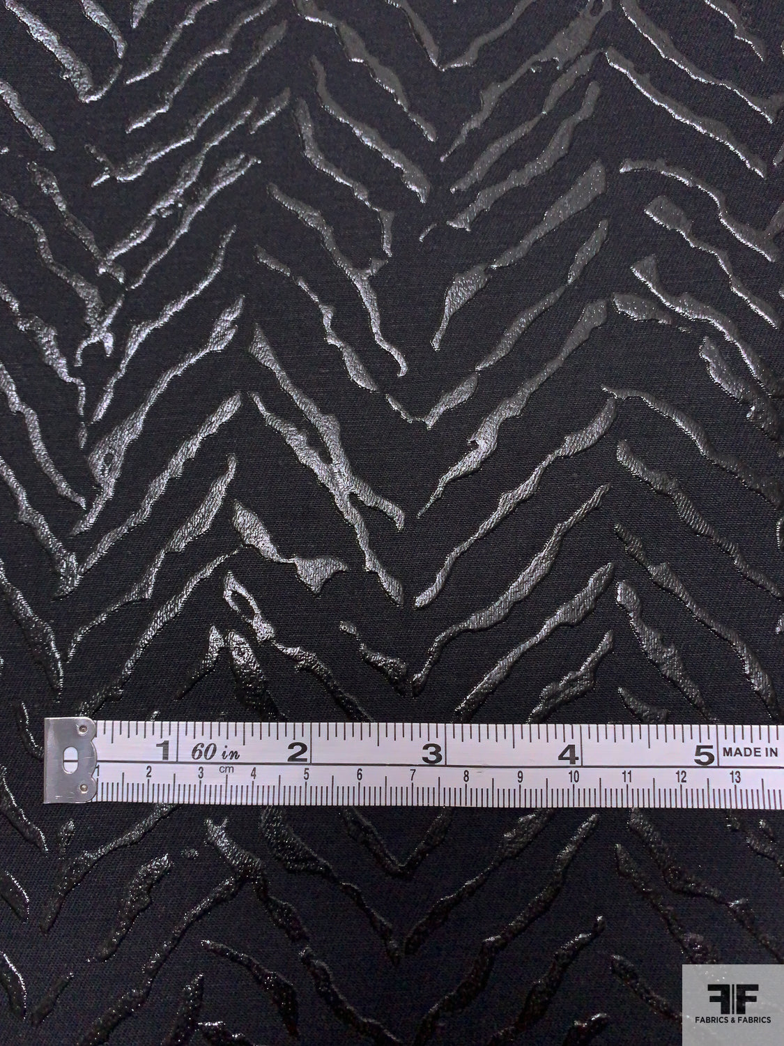 Broken Chevron Rubberized Printed Denim Panel - Black