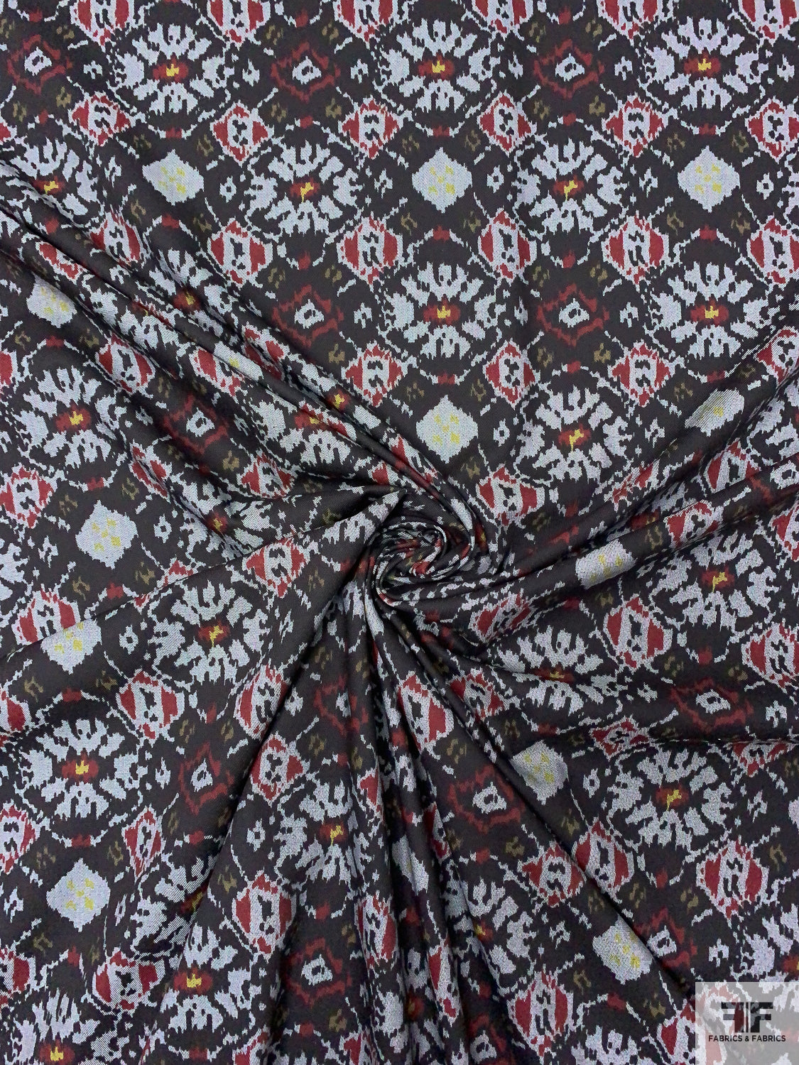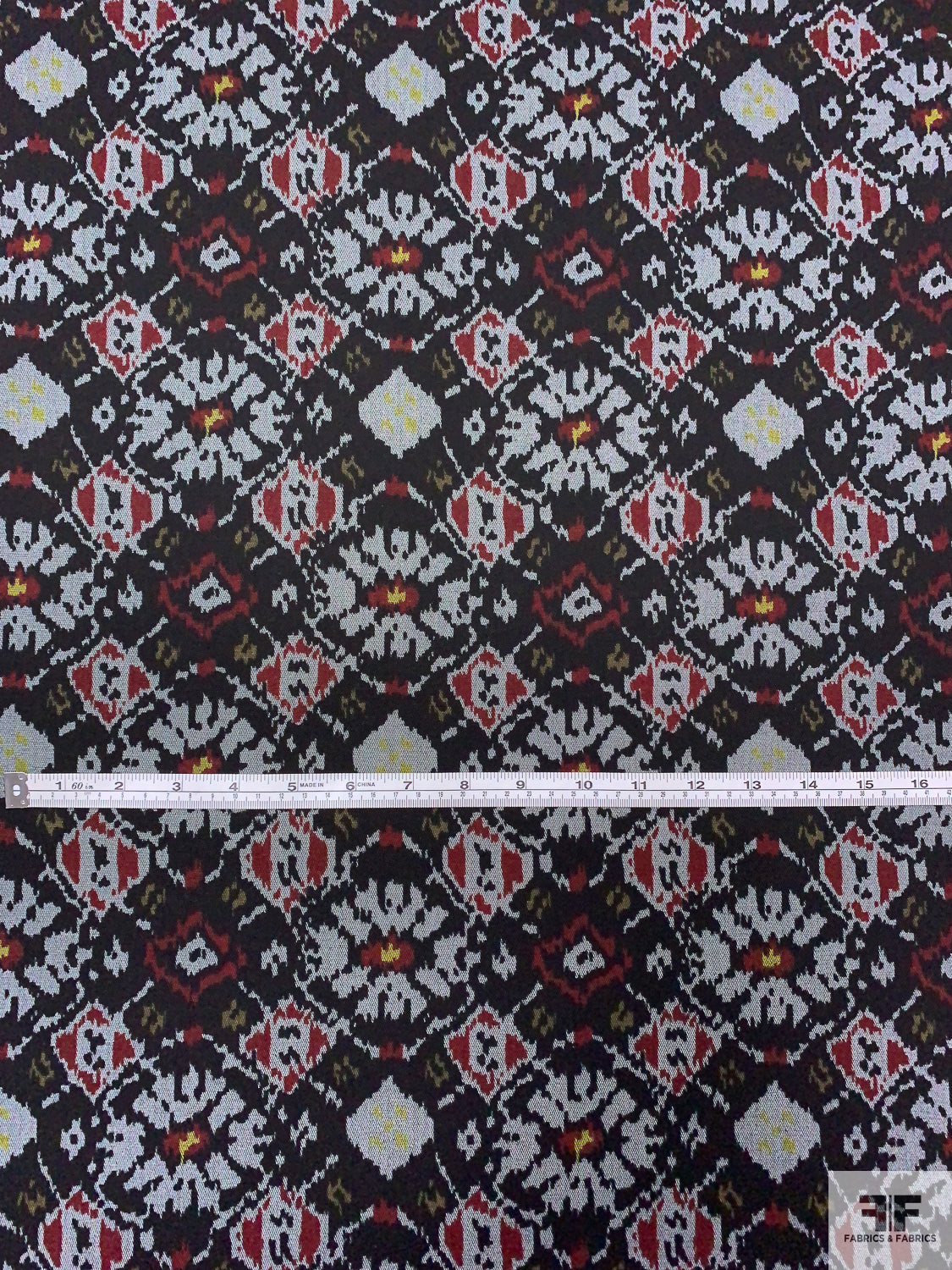 Ikat Printed Stretch Denim - Black / Deep Red / Navy / Yellow