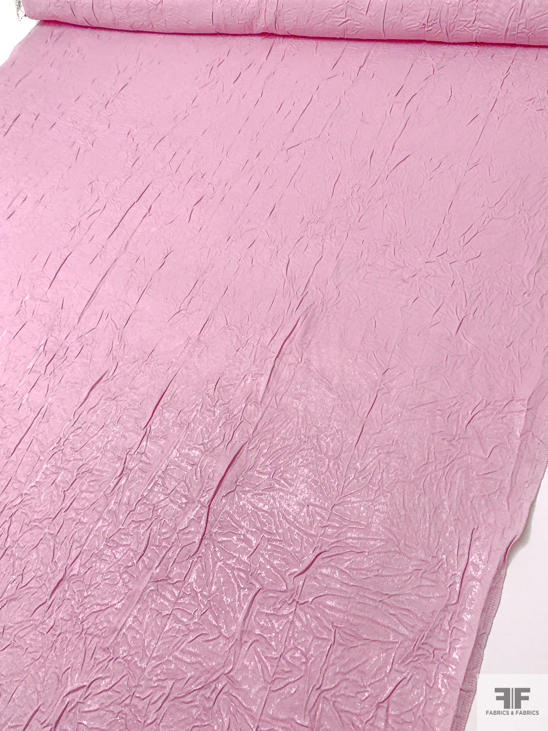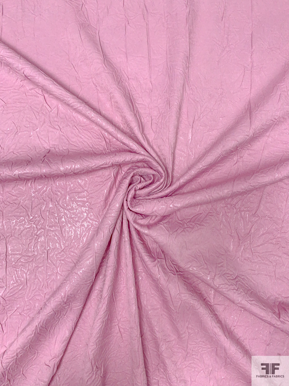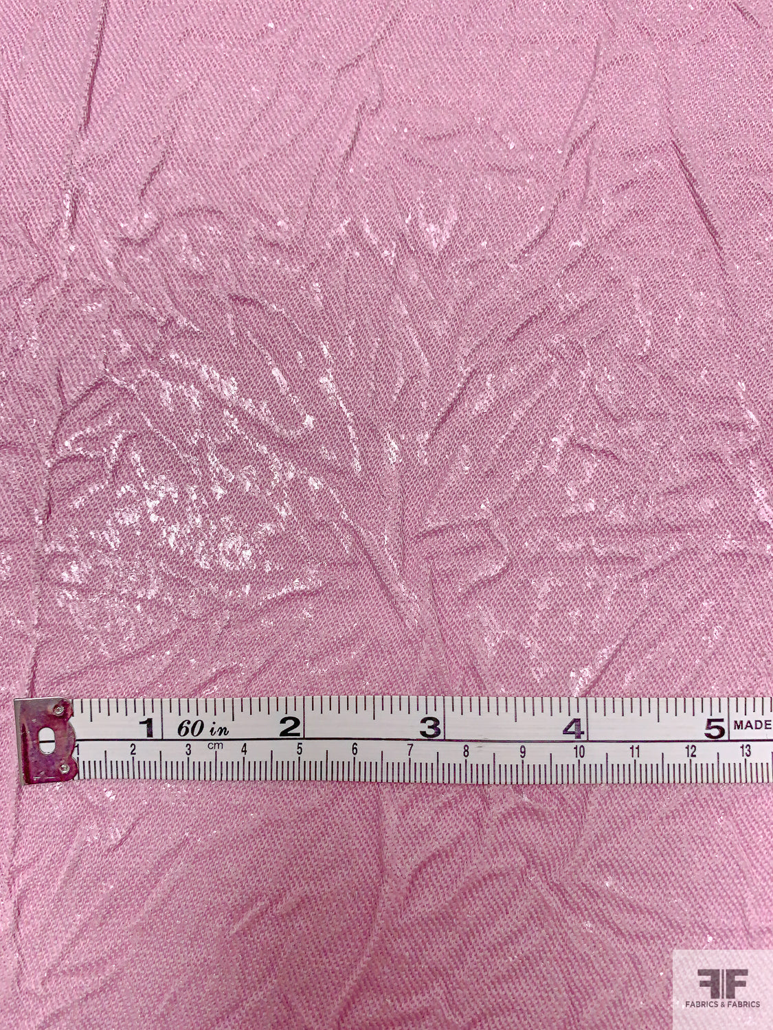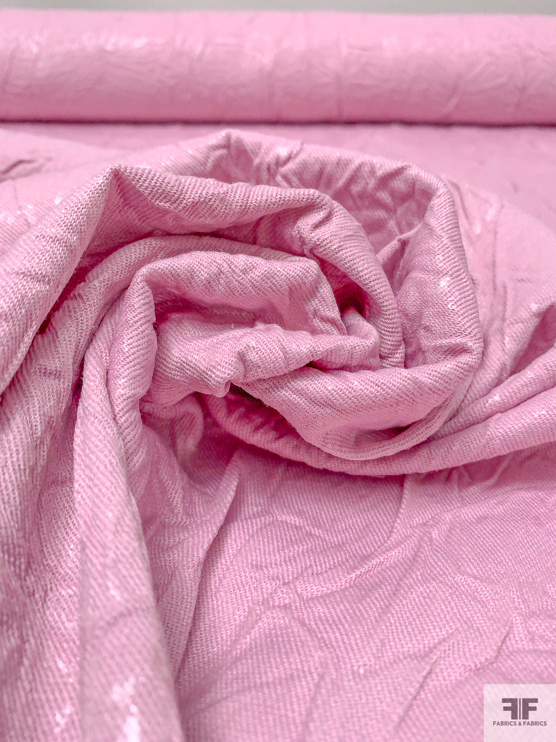 Italian Crinkled Gloss-Stamped Denim with Stretch - Pearl Pink