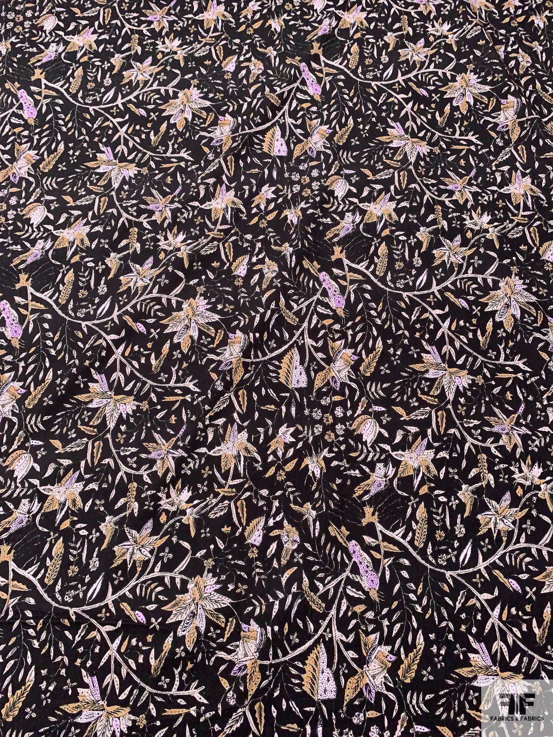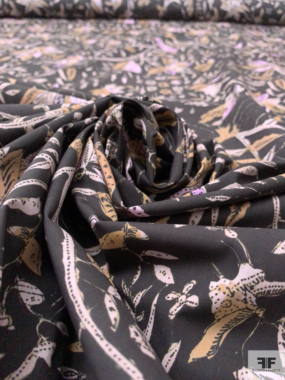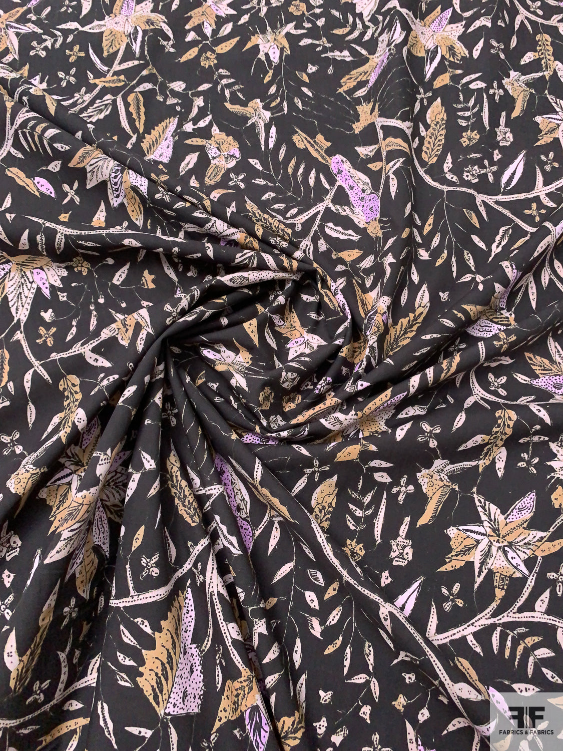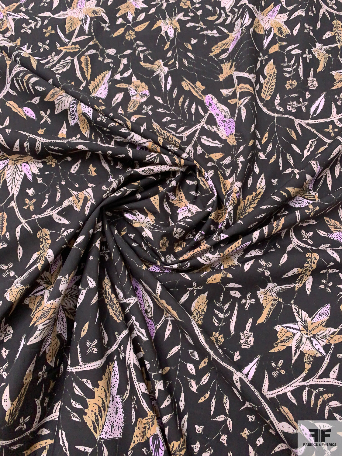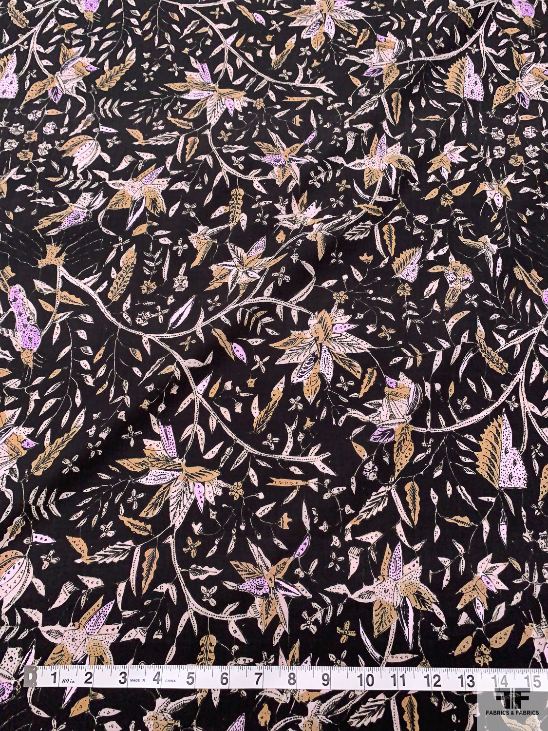 Floral Leaf Stems Printed Cotton Poplin - Tan / Black / Wisteria