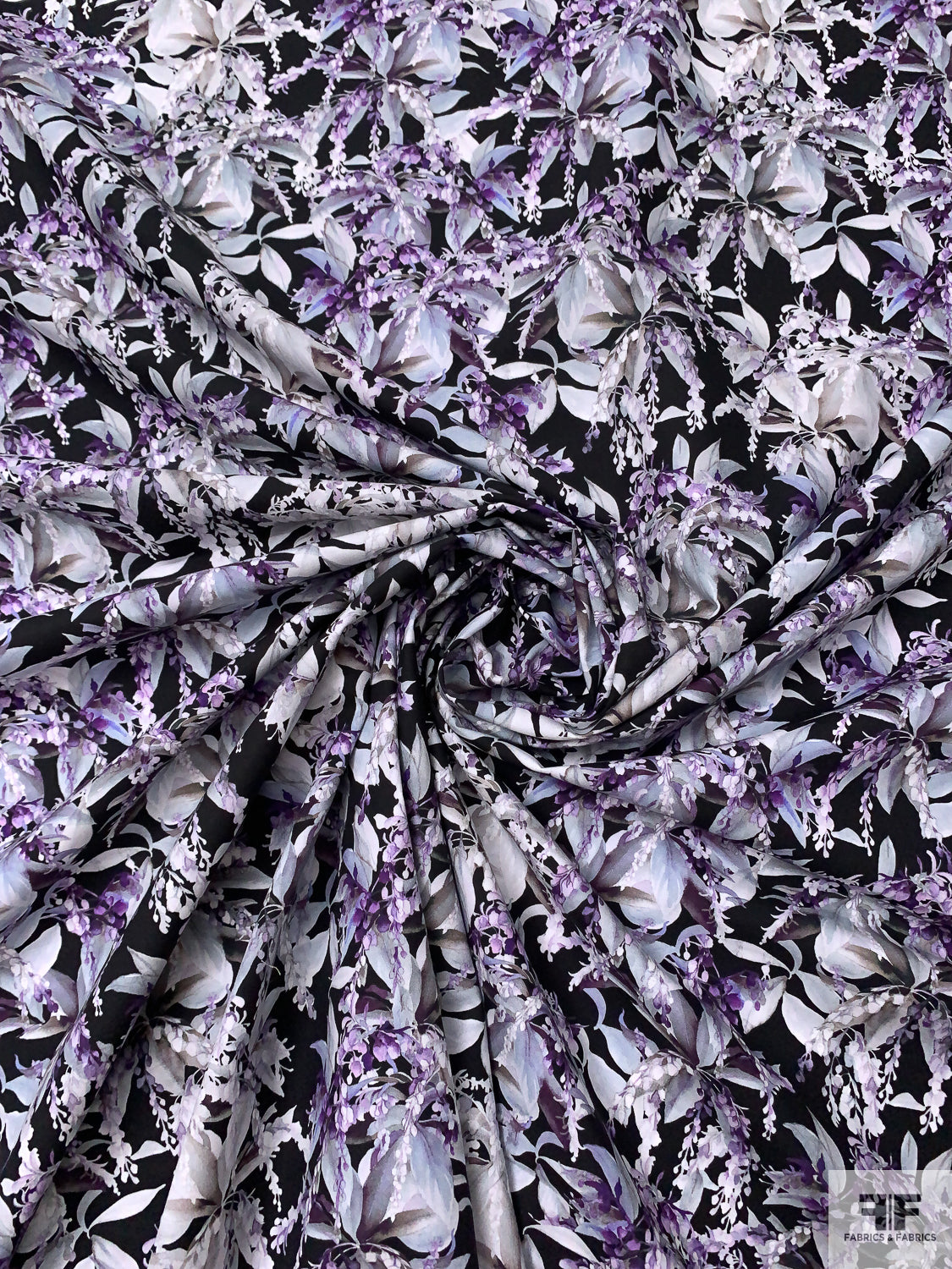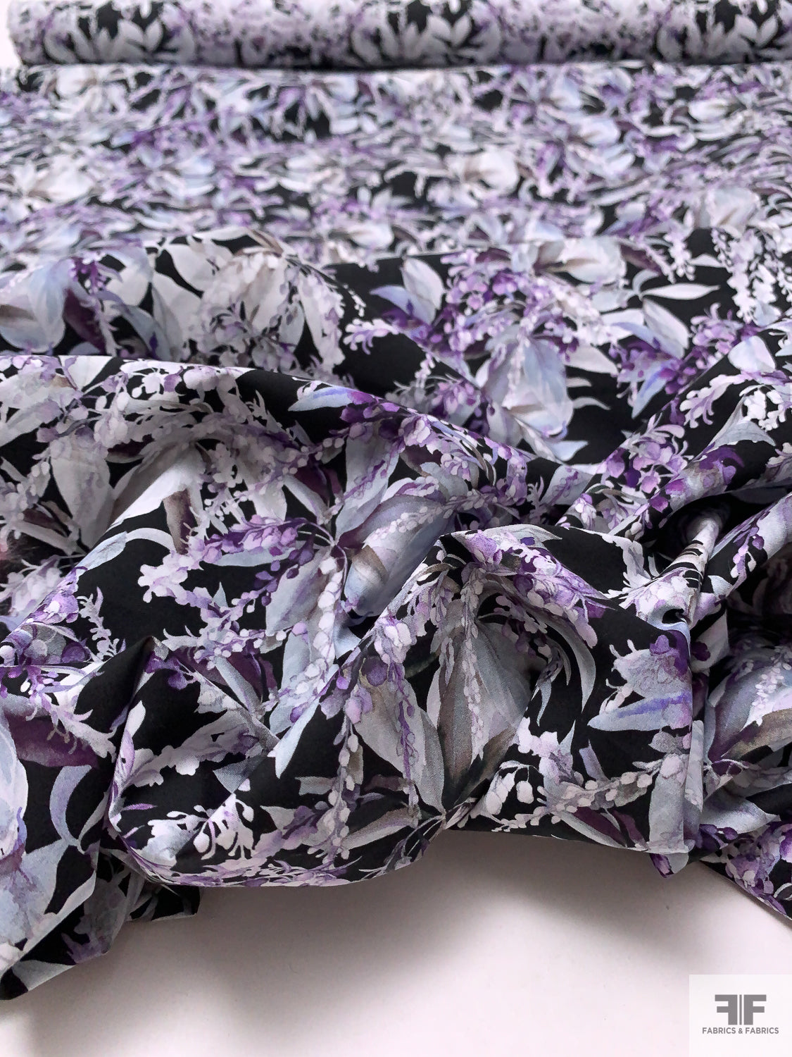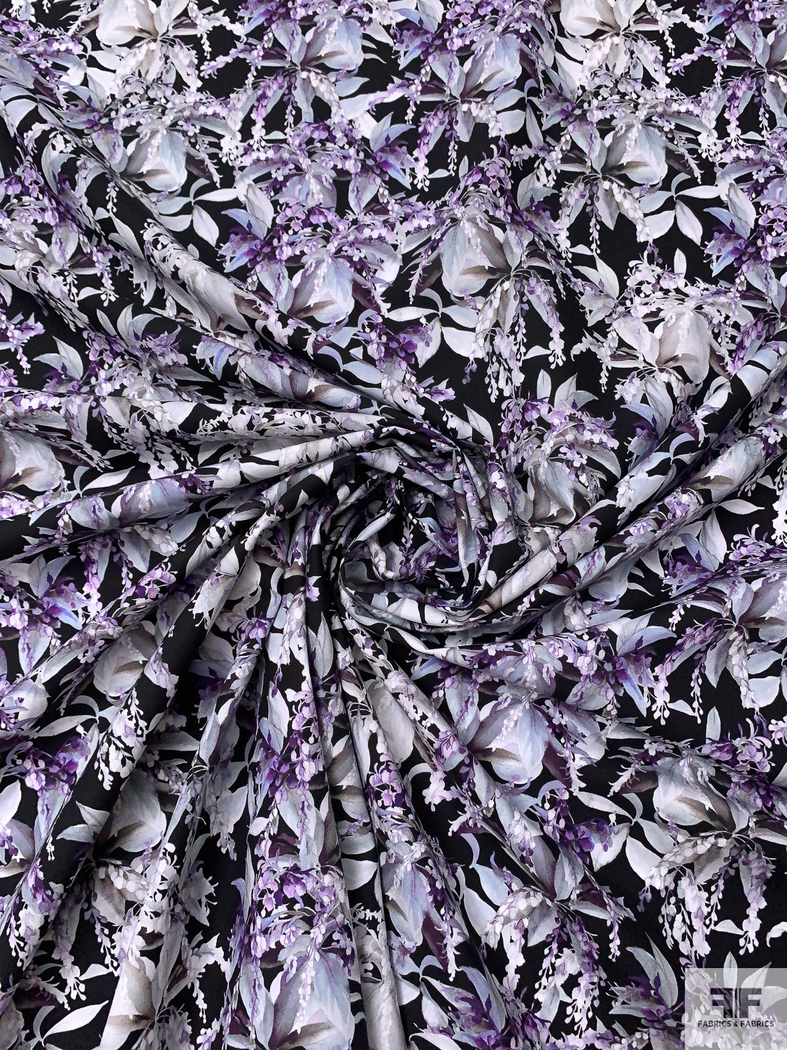 Wisteria and Floral Printed Cotton Poplin - Lavender / Grey / White / Black