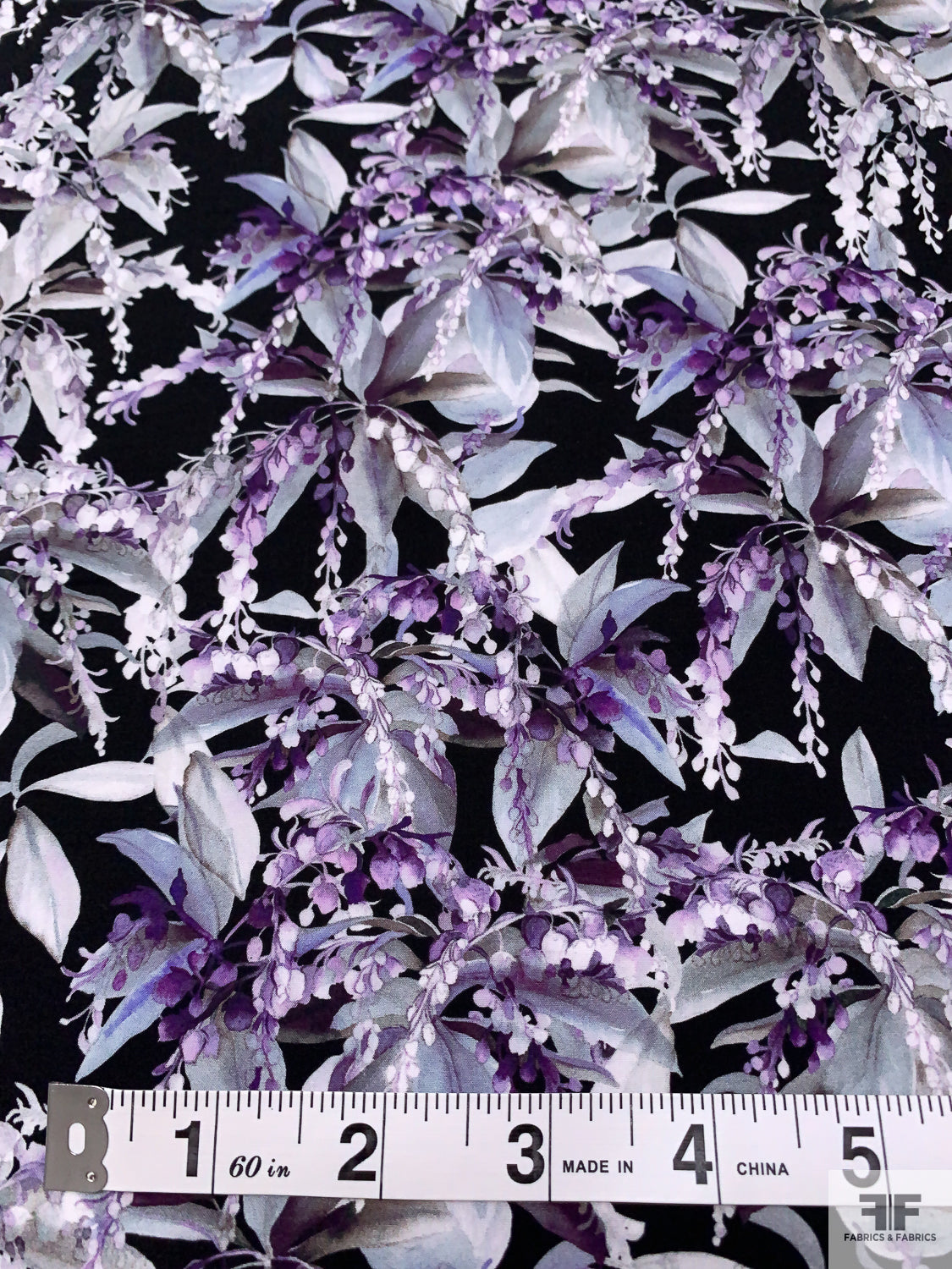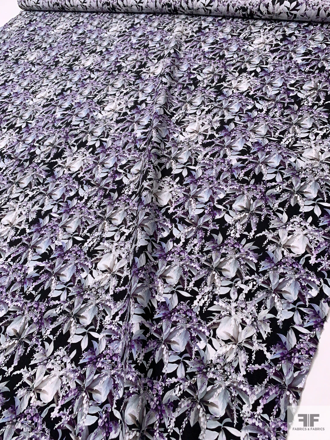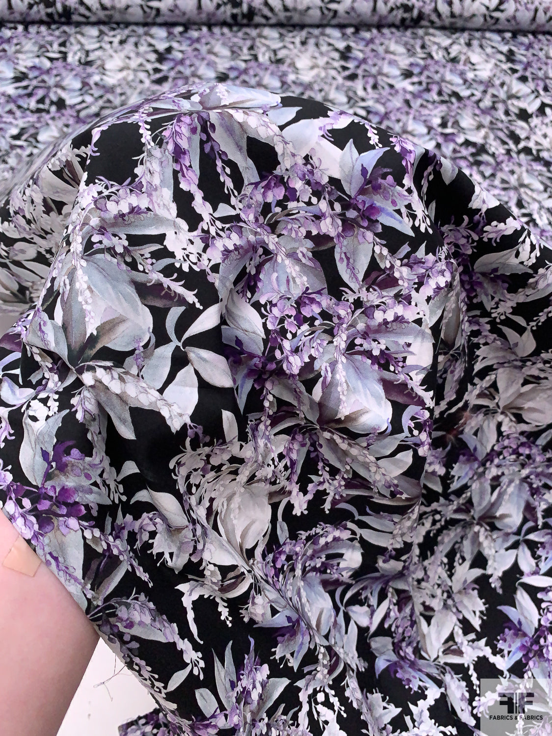 Wisteria and Floral Printed Cotton Poplin - Lavender / Grey / White / Black