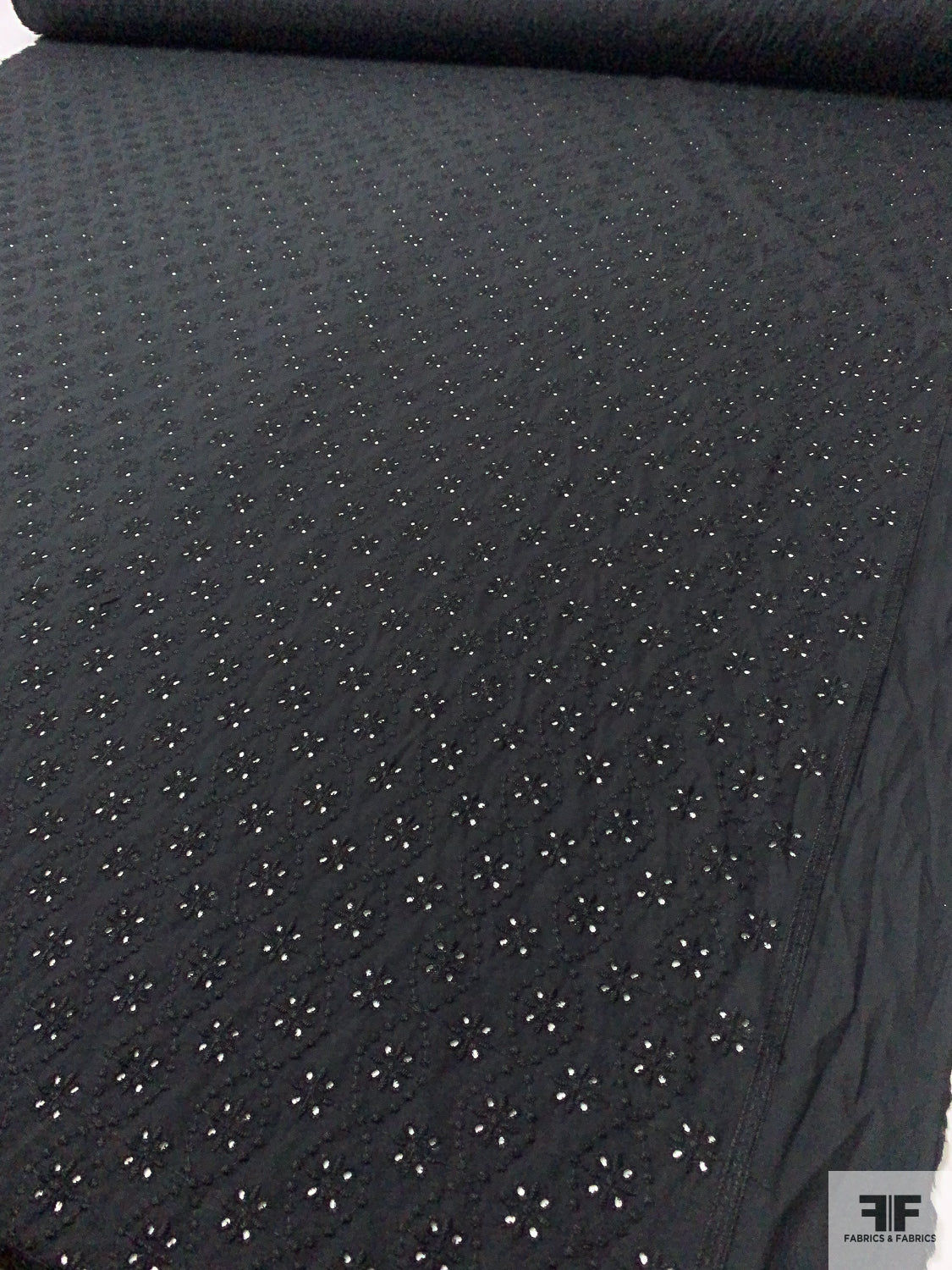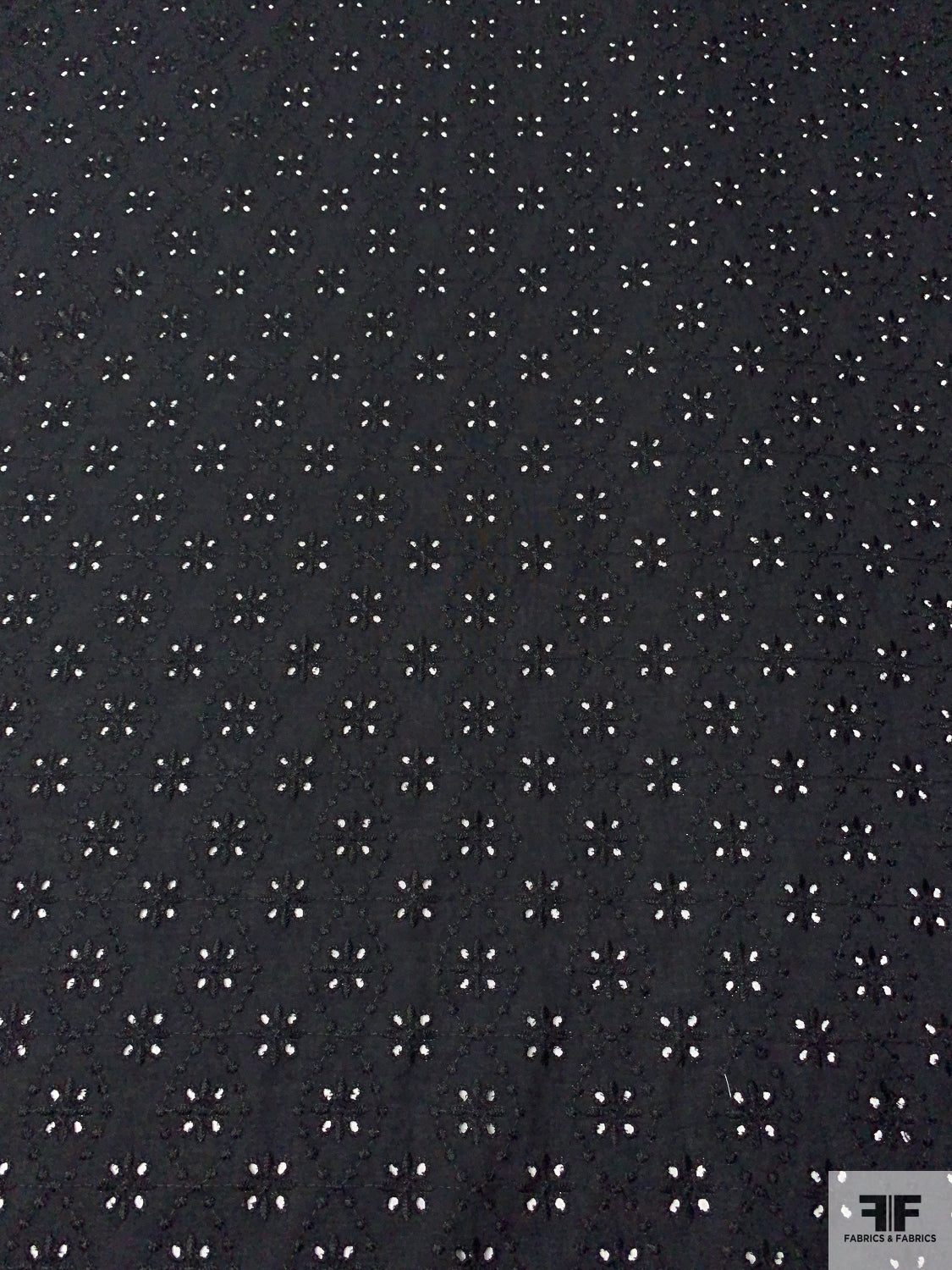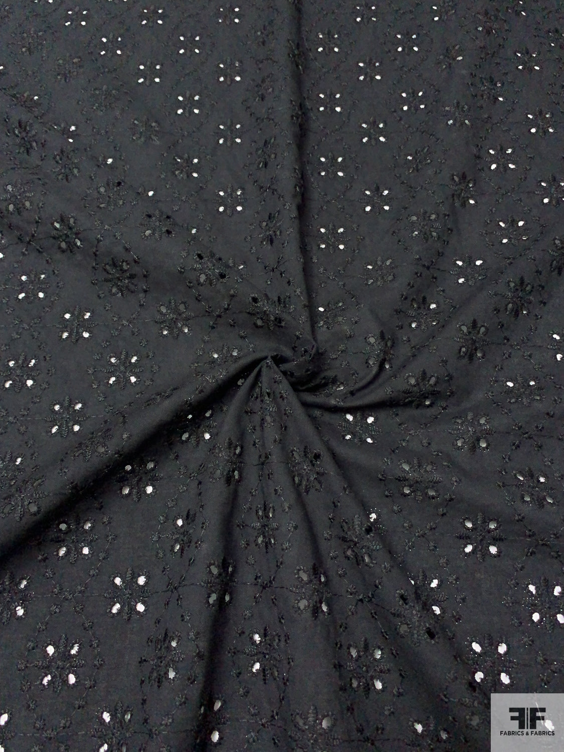 Floral Spiral Embroidered Eyelet Light Cotton Lawn - Black