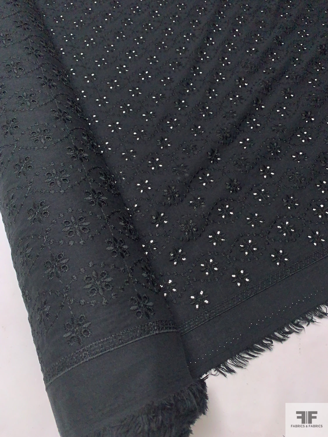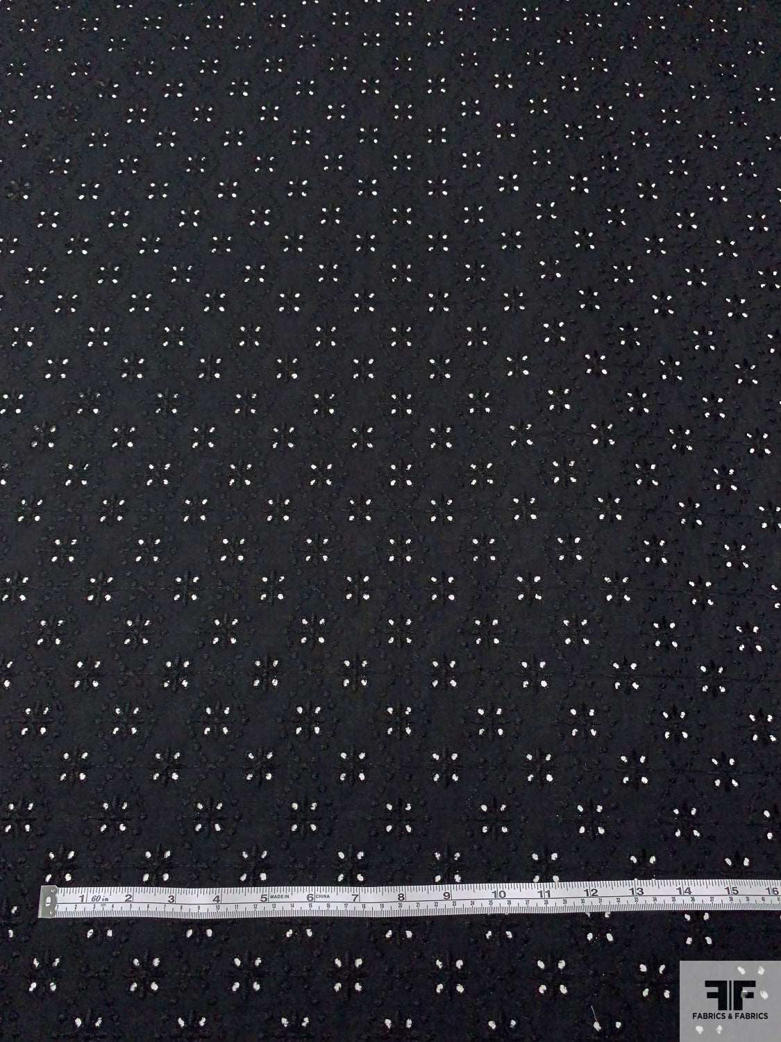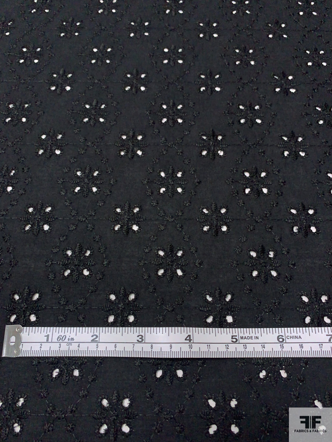 Floral Spiral Embroidered Eyelet Light Cotton Lawn - Black