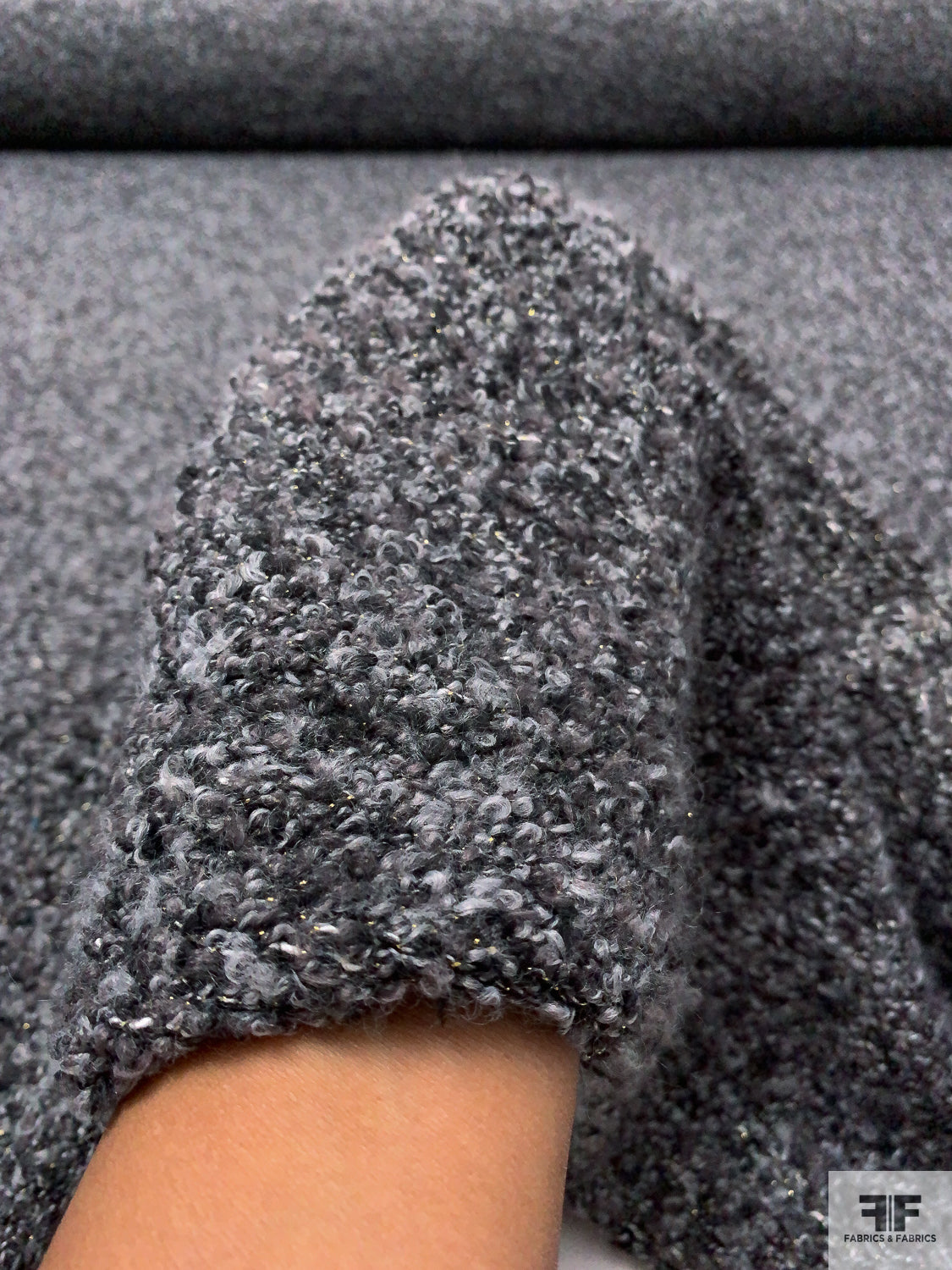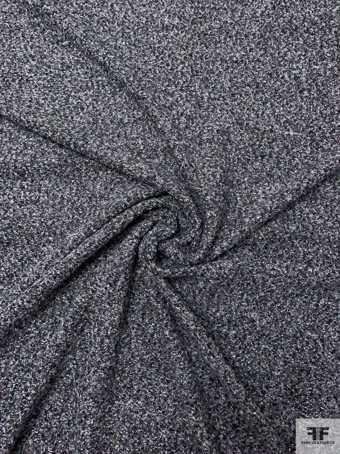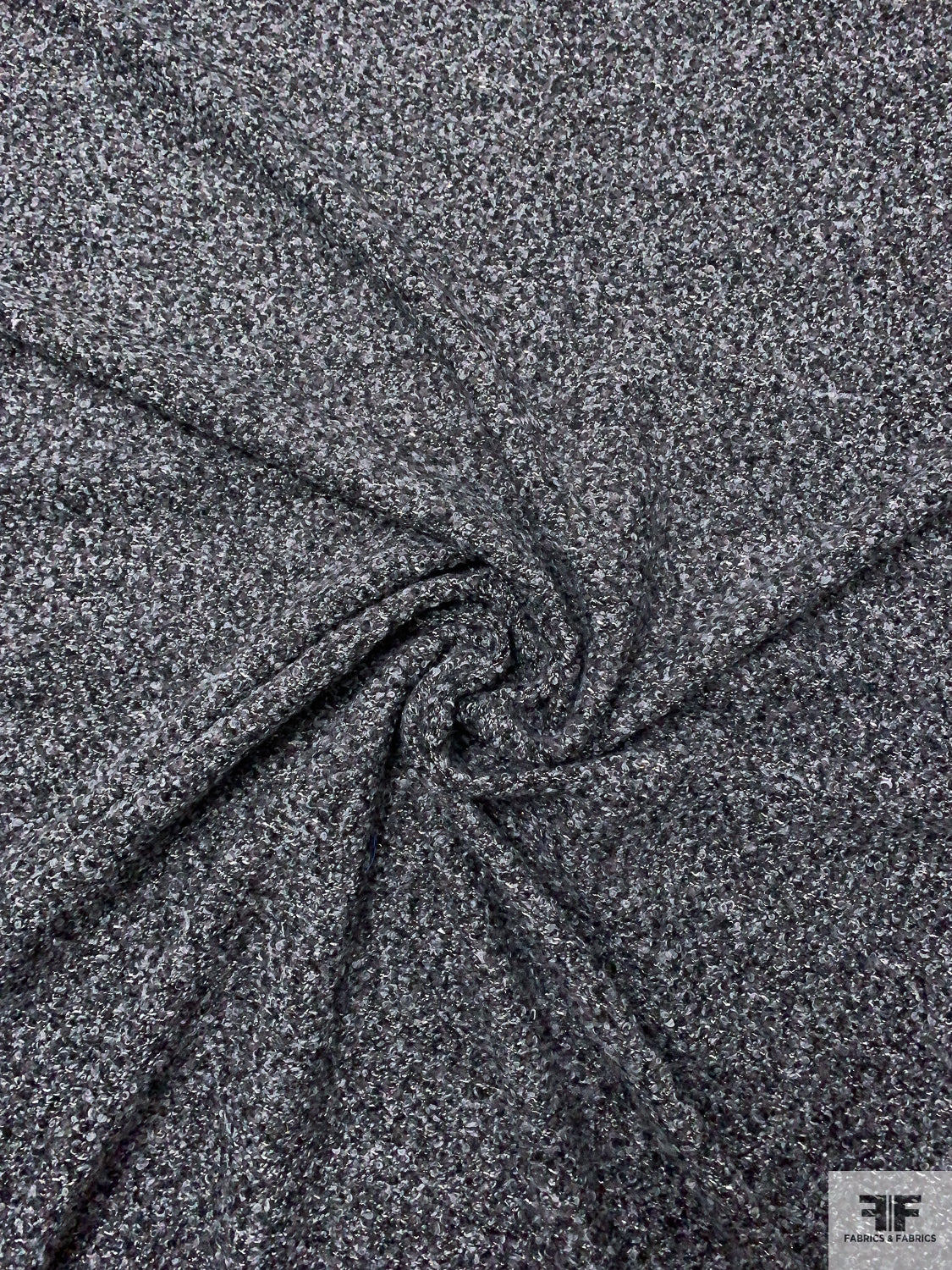 Italian Bouclé-Style Tweed Sweater Knit with Lurex Fibers - Grey
