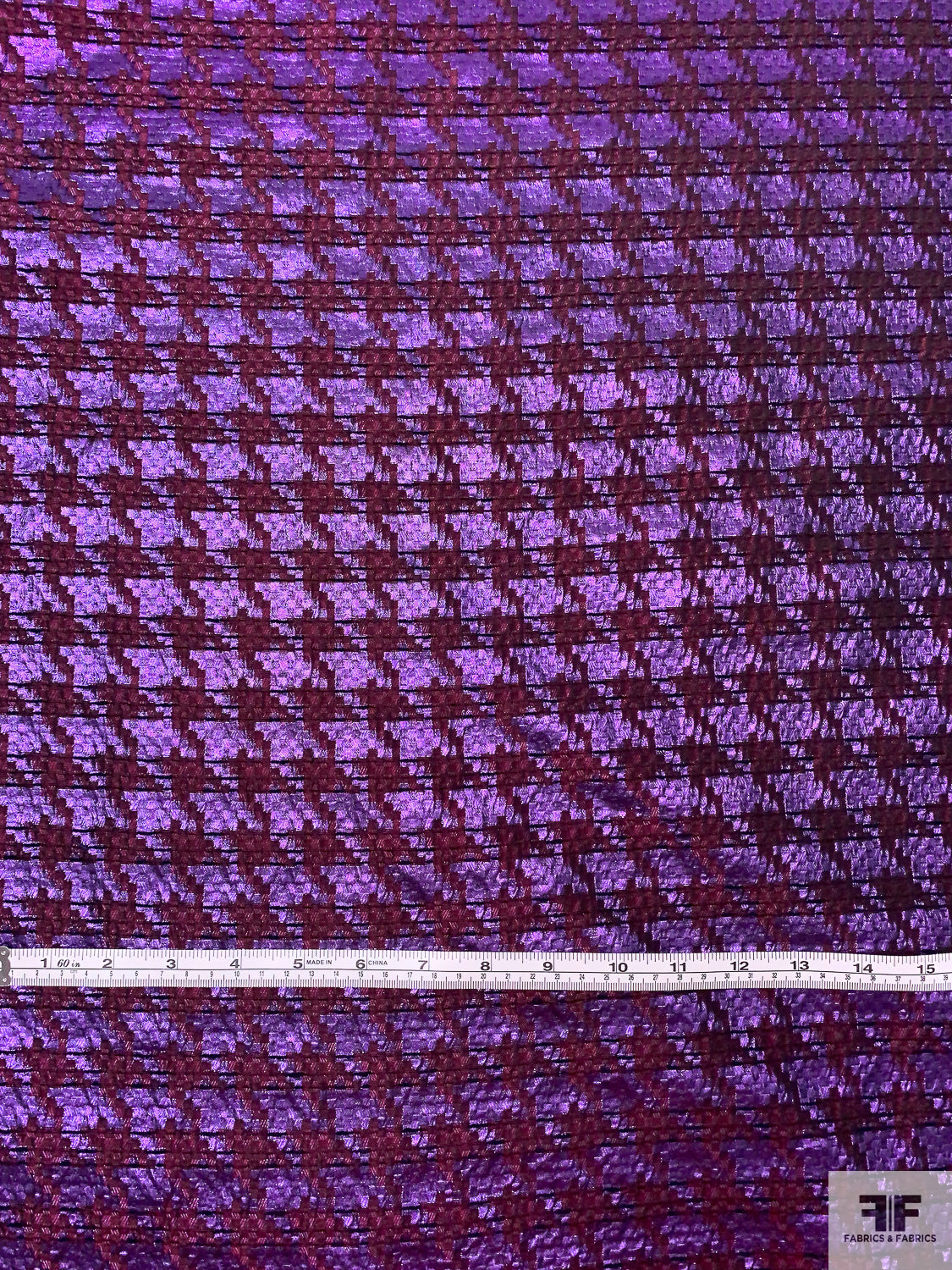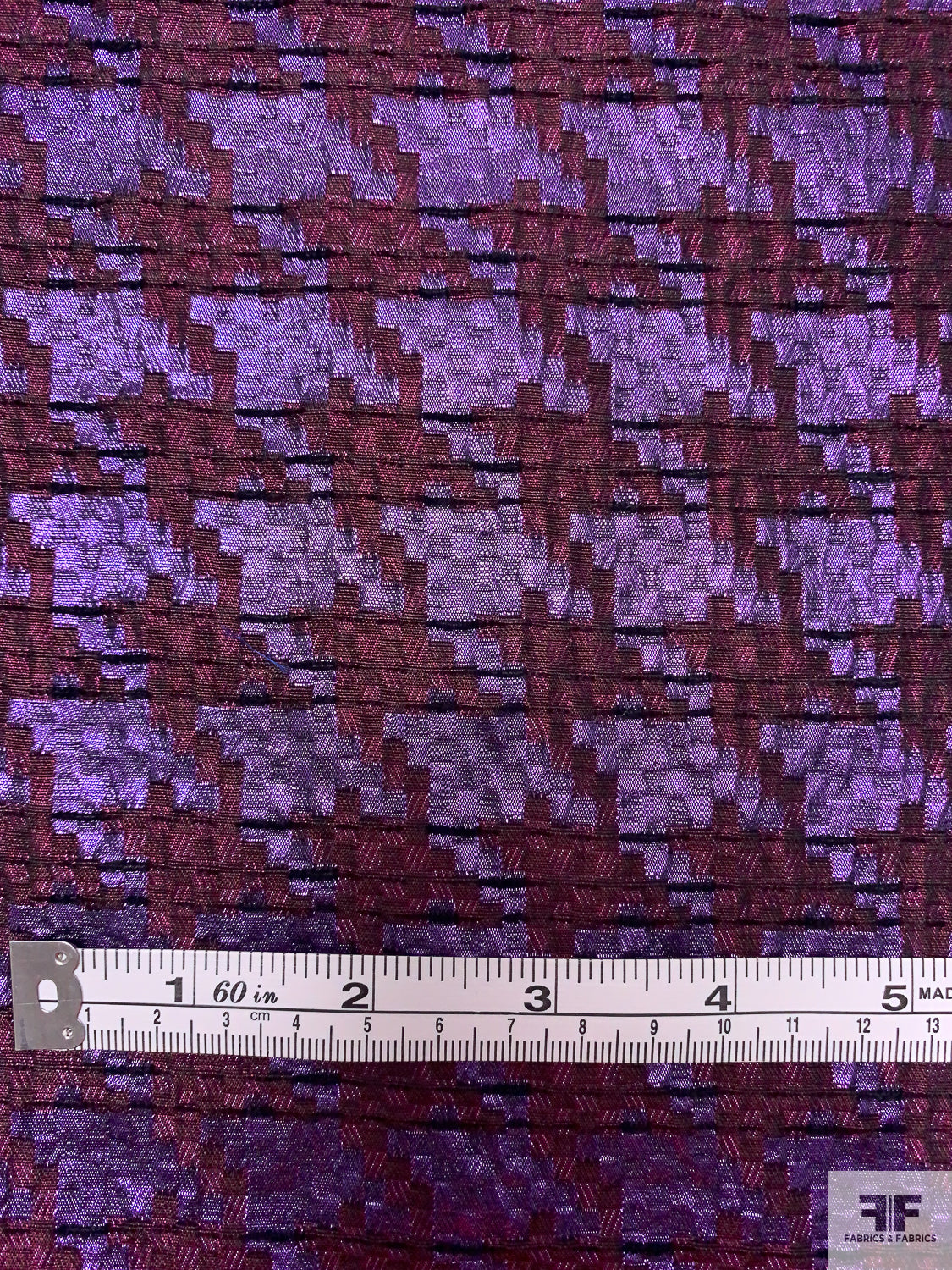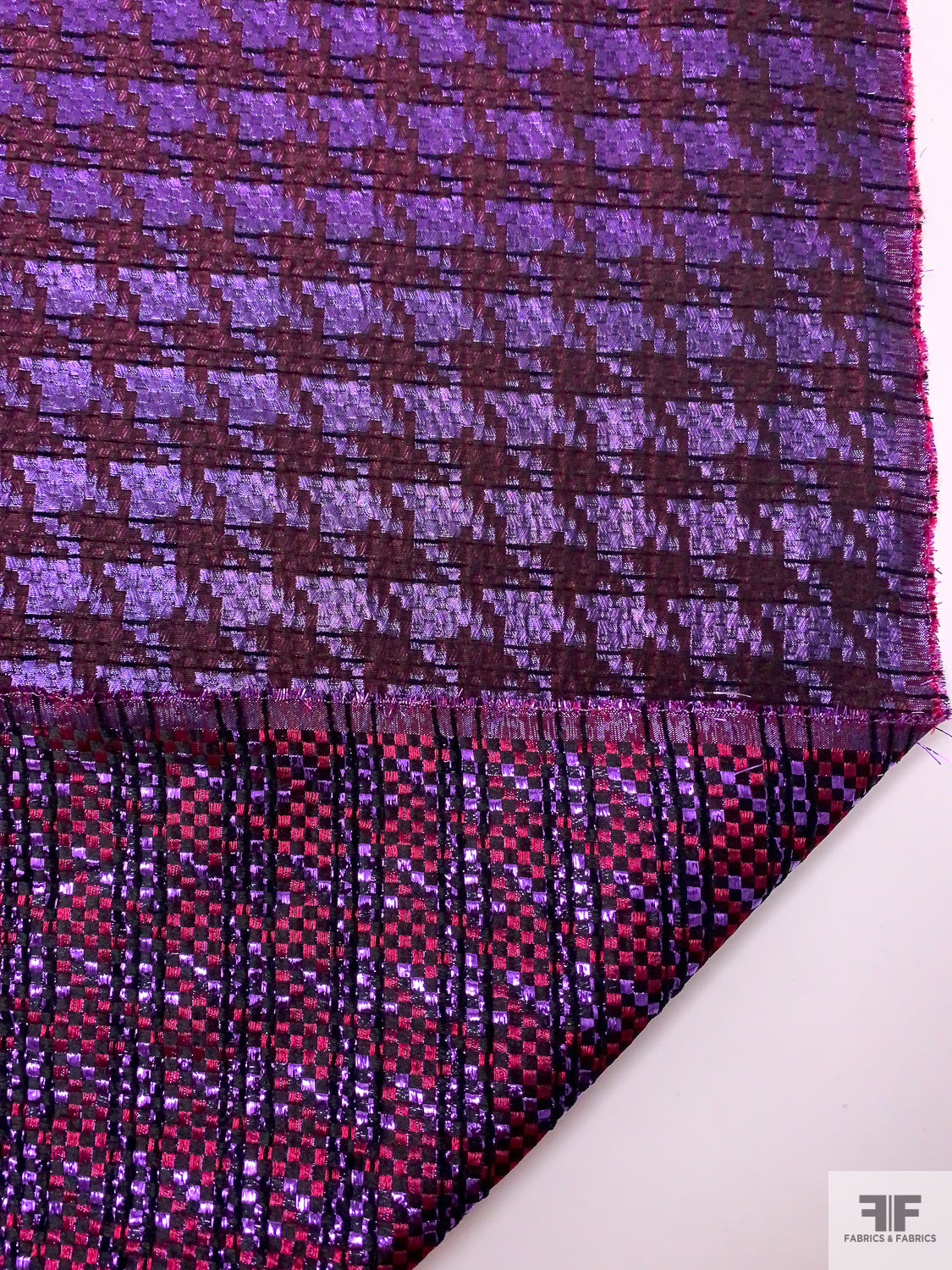 Italian Metallic Pixelated Houndstooth Brocade - Purple