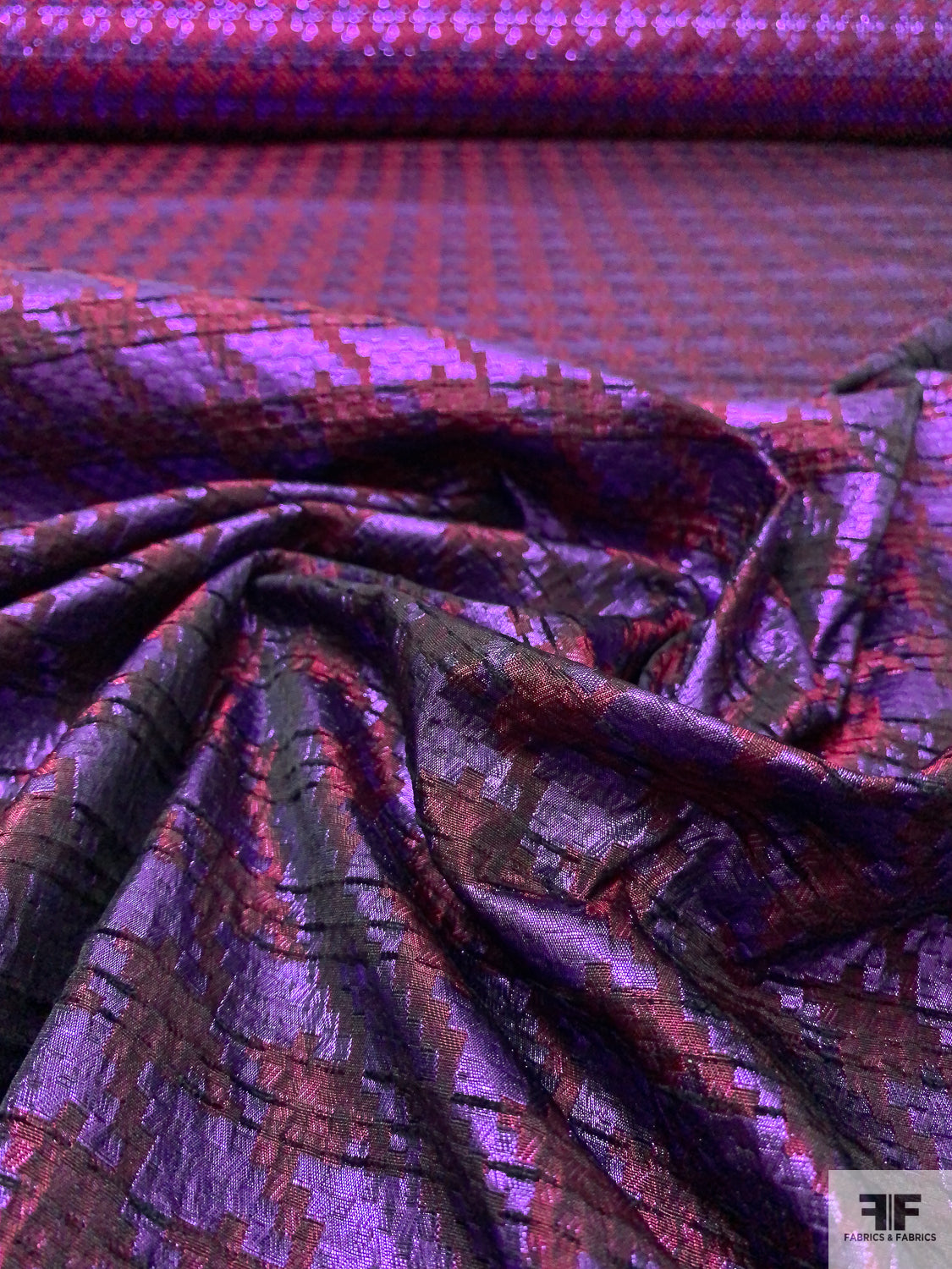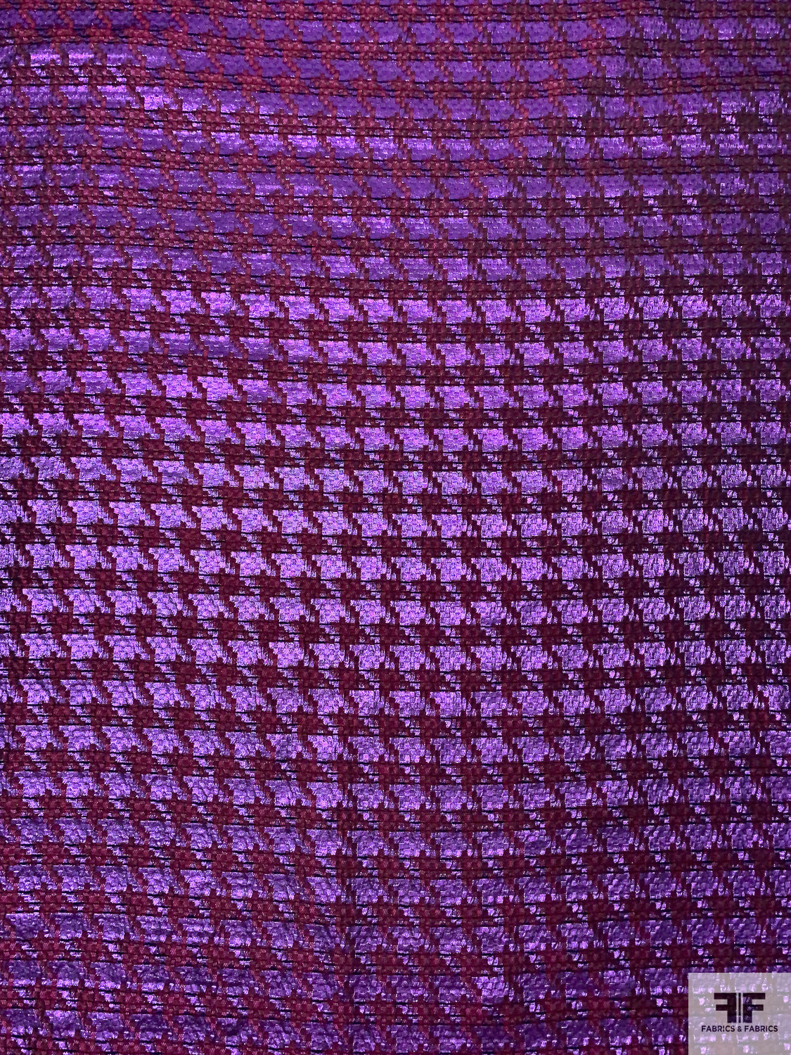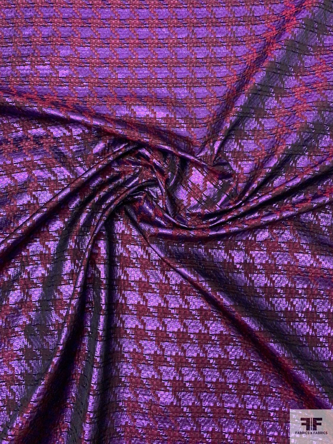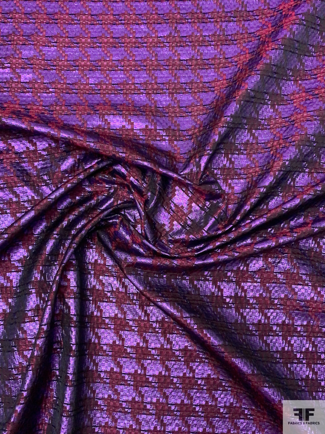 Italian Metallic Pixelated Houndstooth Brocade - Purple