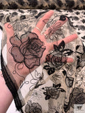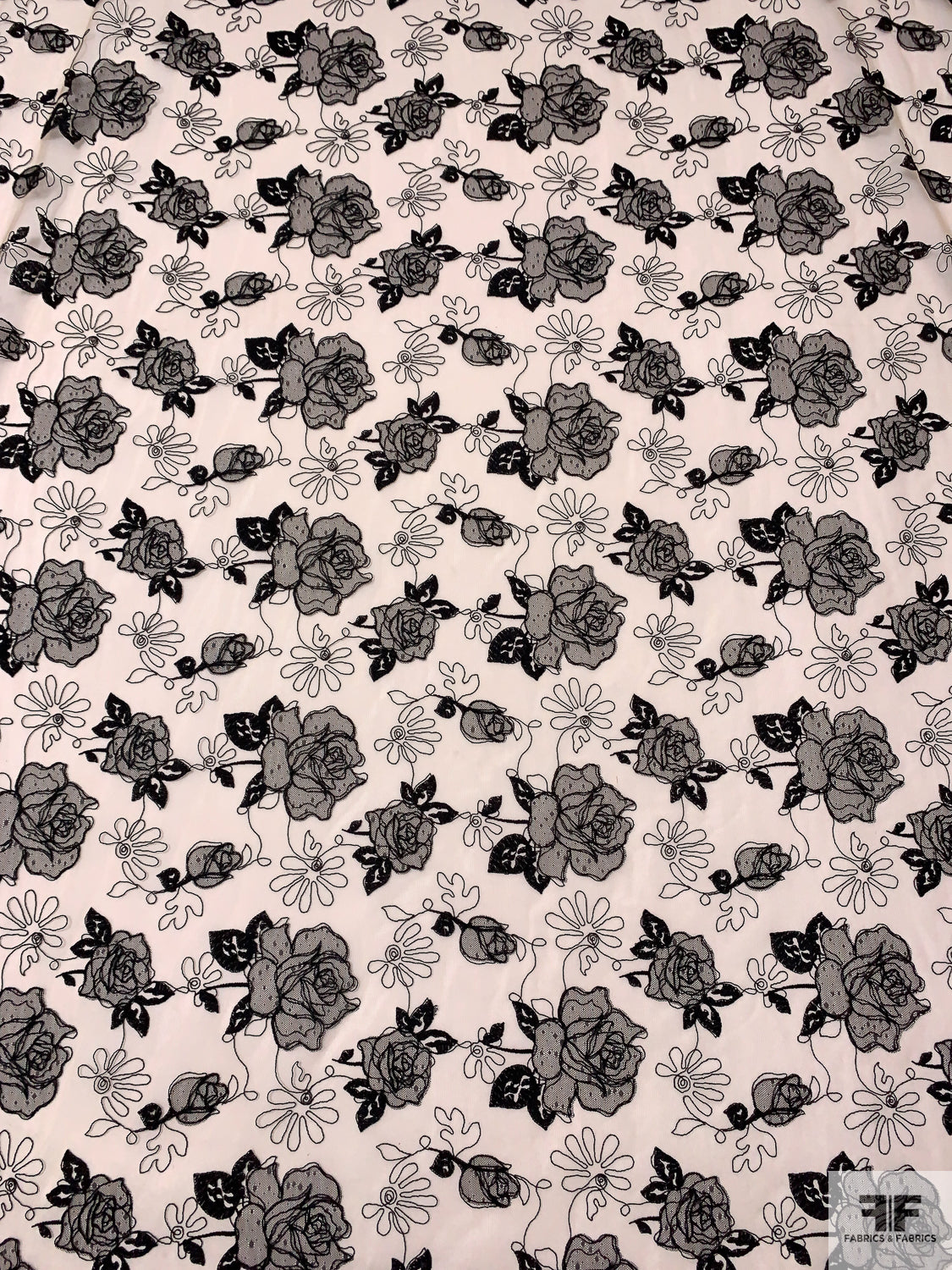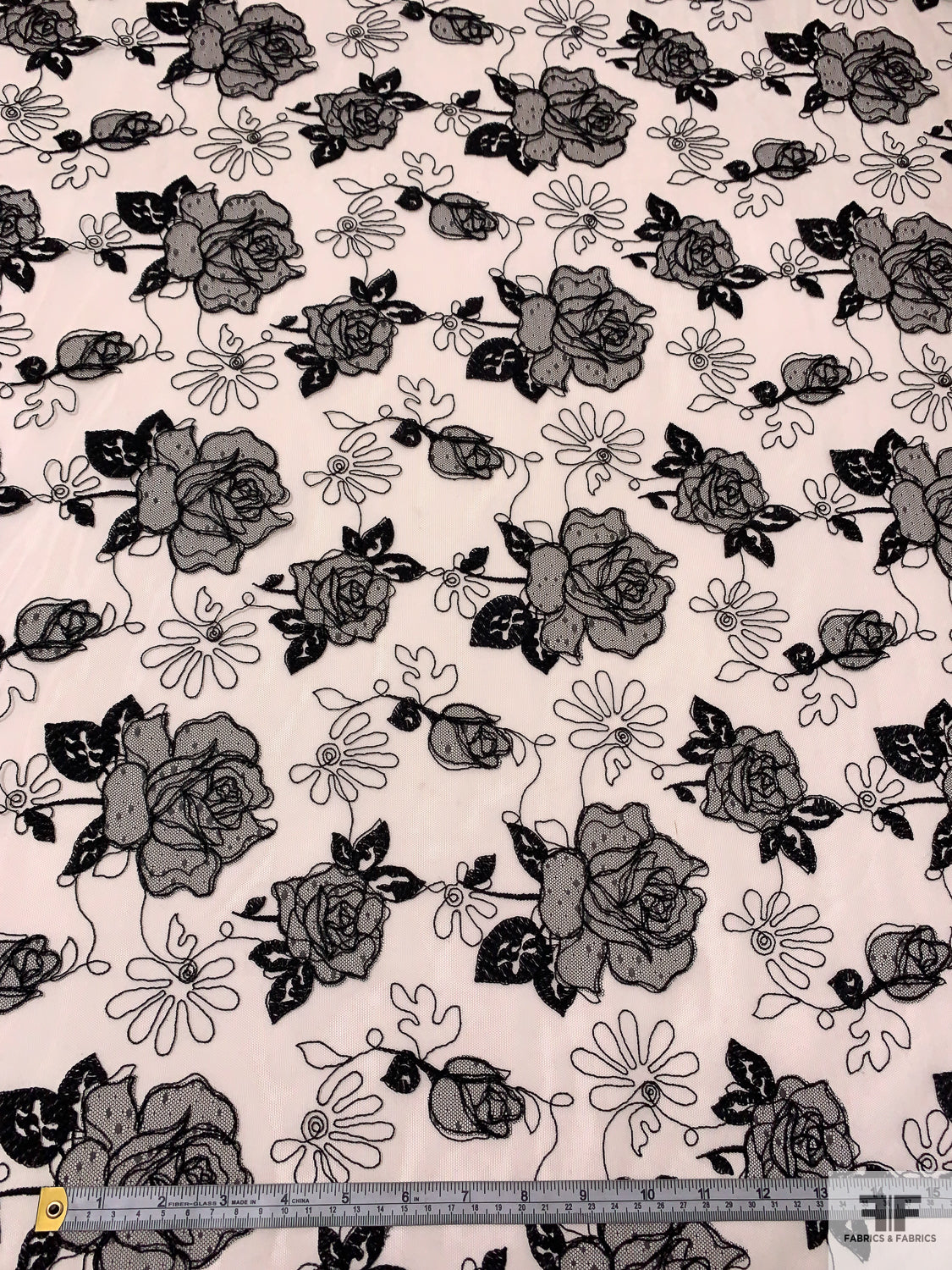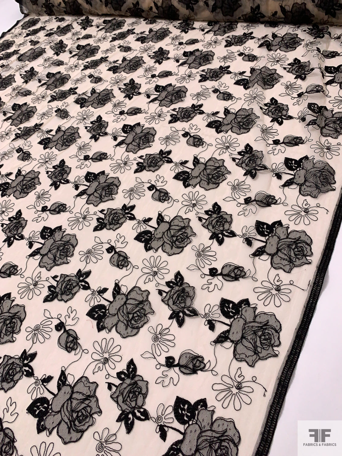 Floral Embroidered Soft Tulle with Metallic Cording - Nude / Black