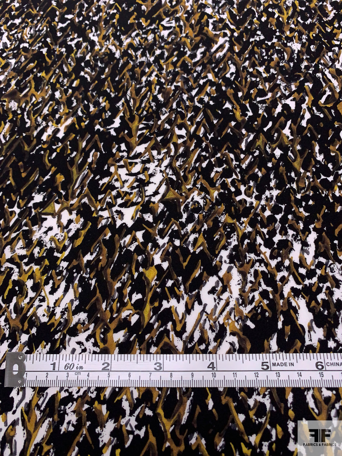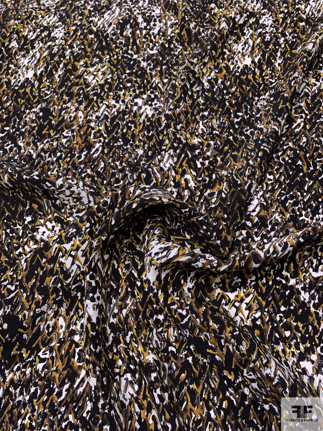 Cluster Graphic Matte-Side Printed Silk Charmeuse - Ochre / Black / White