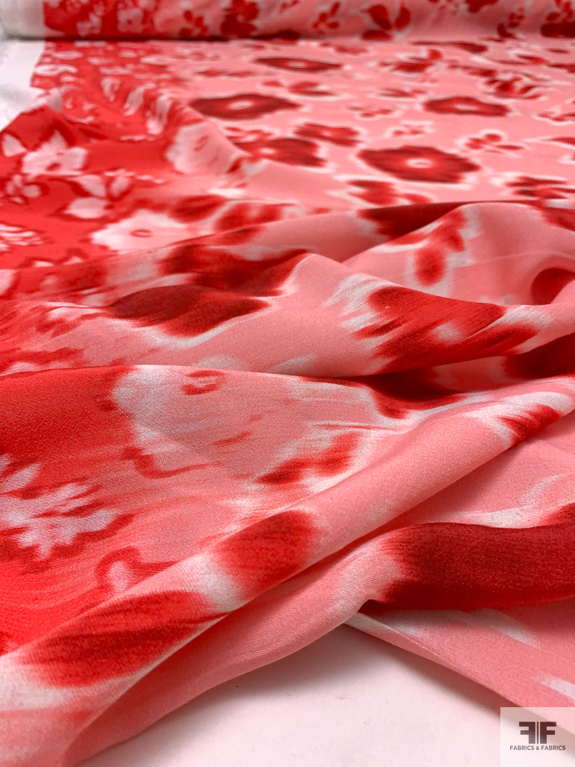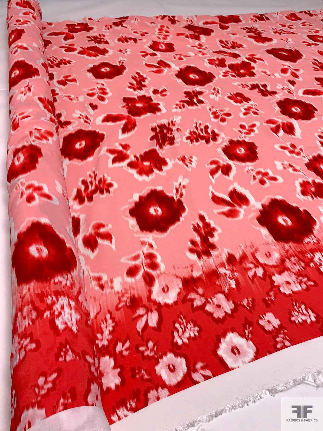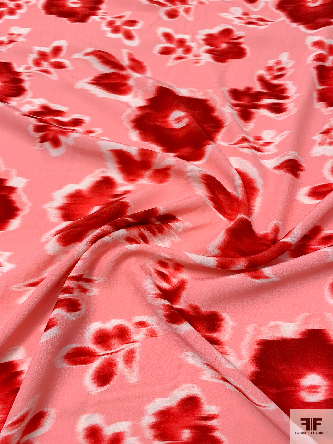 Hazy Floral and Border Printed Viscose Crepon - Pink / Reds / Off-White