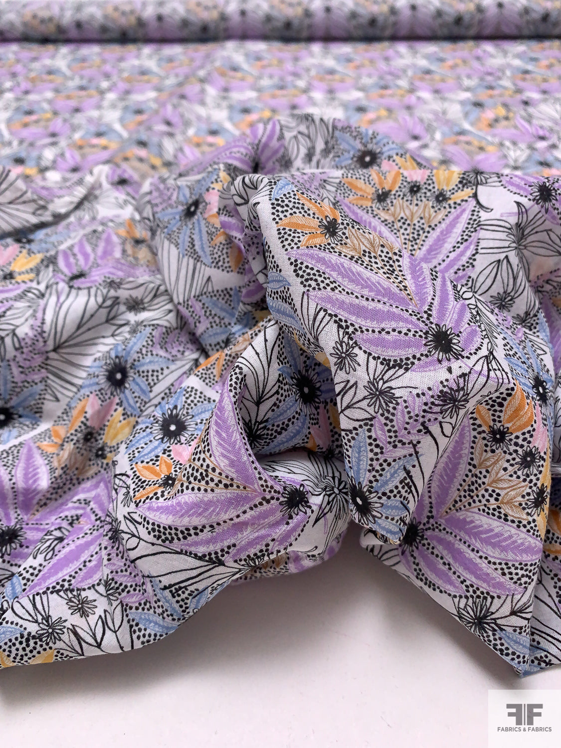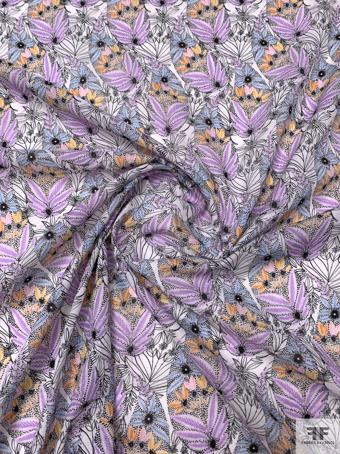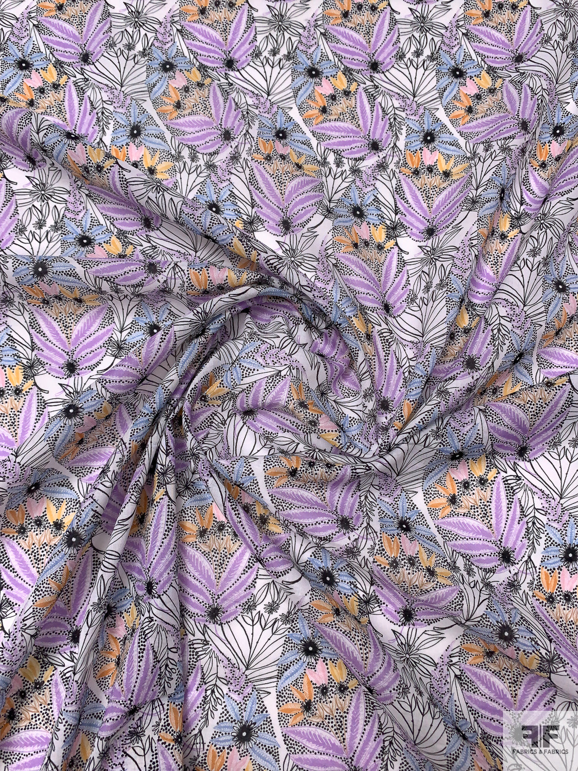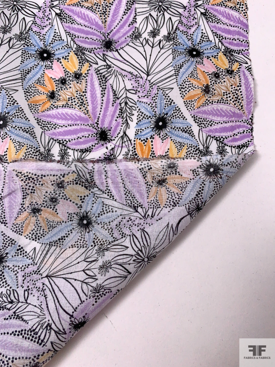 Leaf Stems Printed Cotton Voile - Lilac / Soft Blue / Tangerine / White / Black