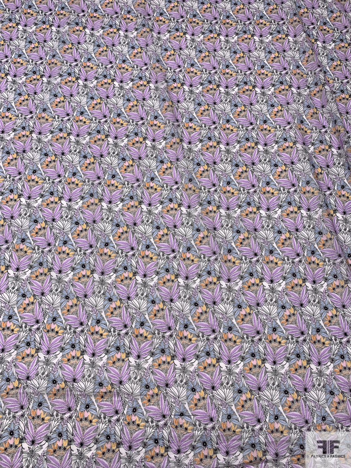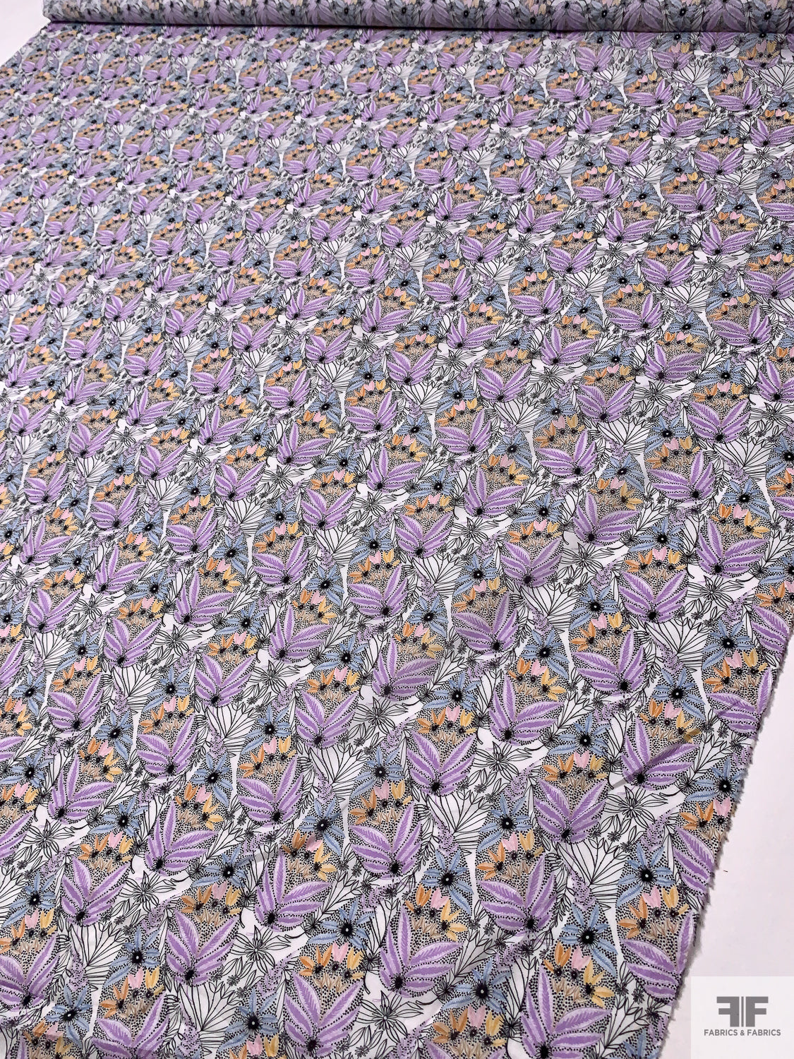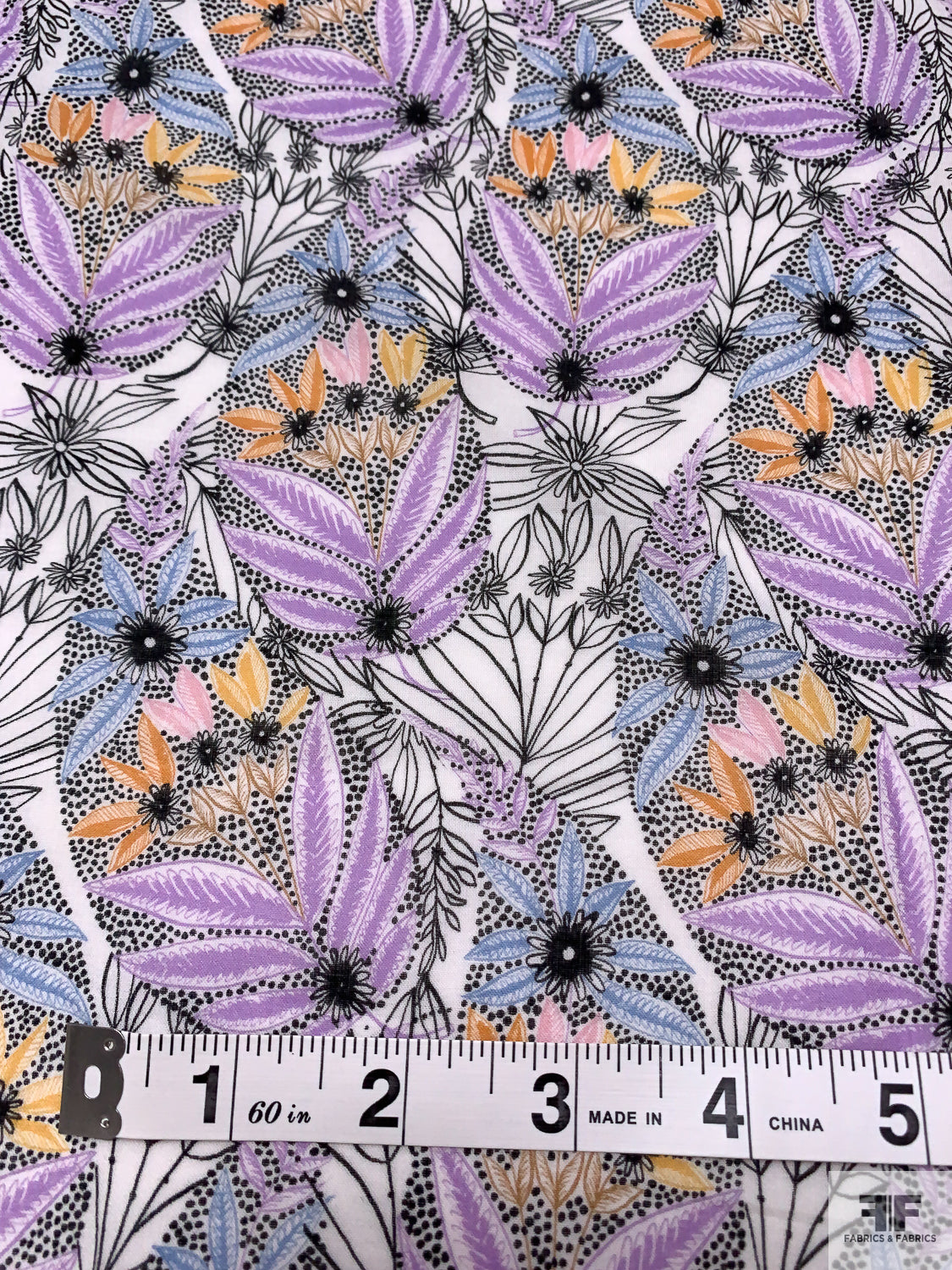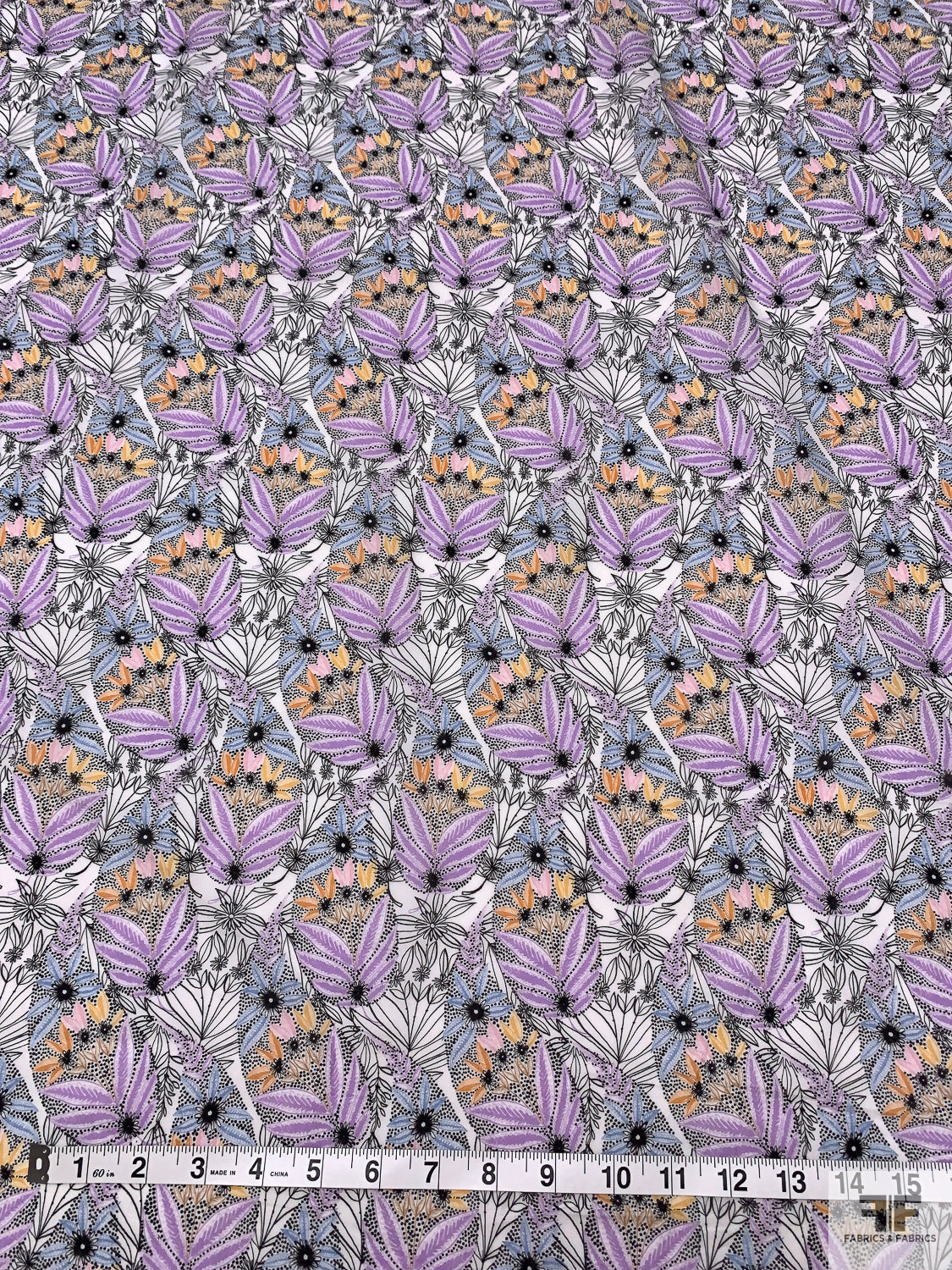 Leaf Stems Printed Cotton Voile - Lilac / Soft Blue / Tangerine / White / Black
