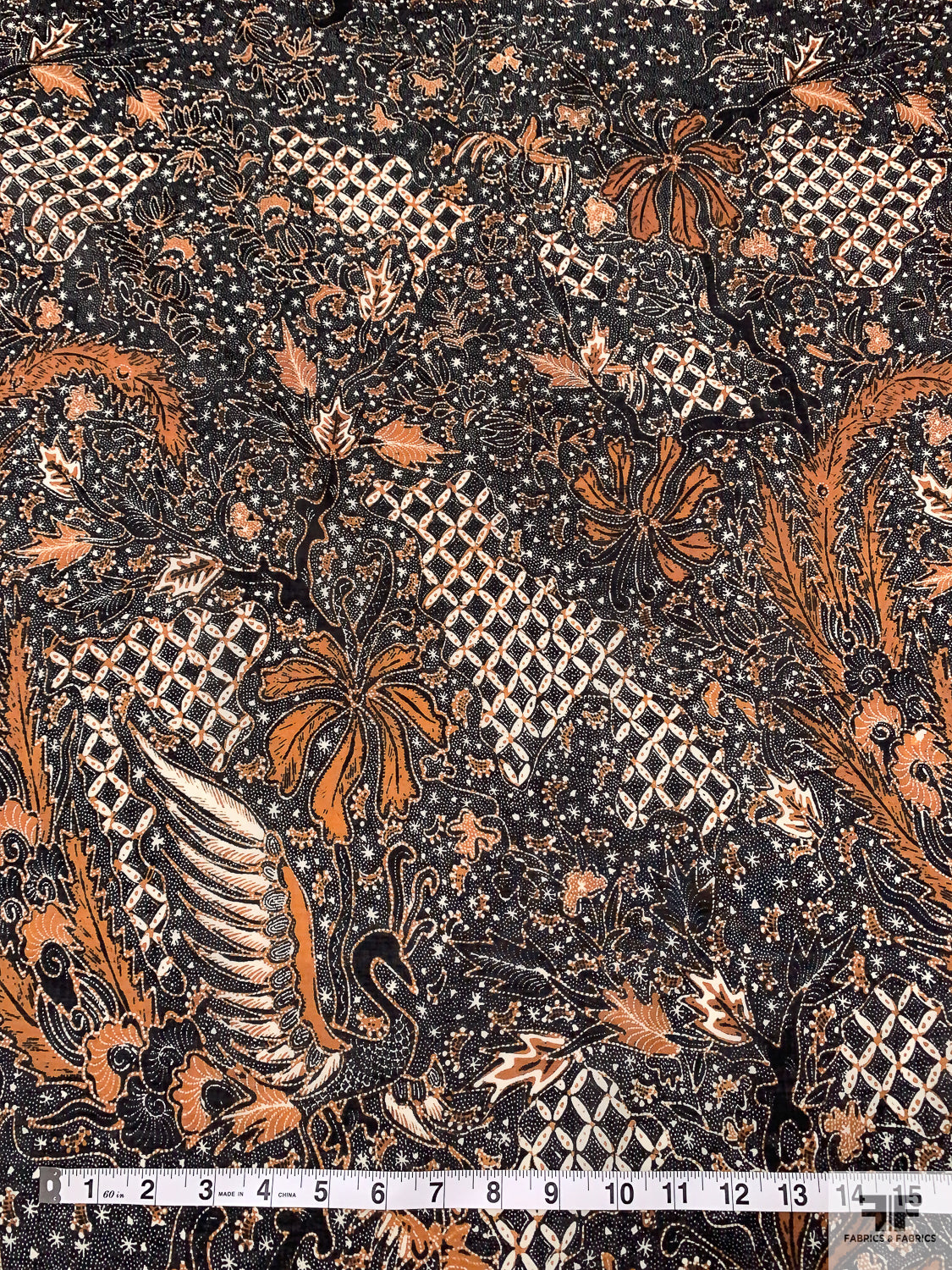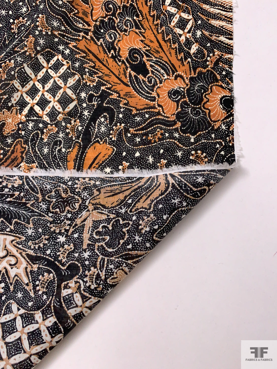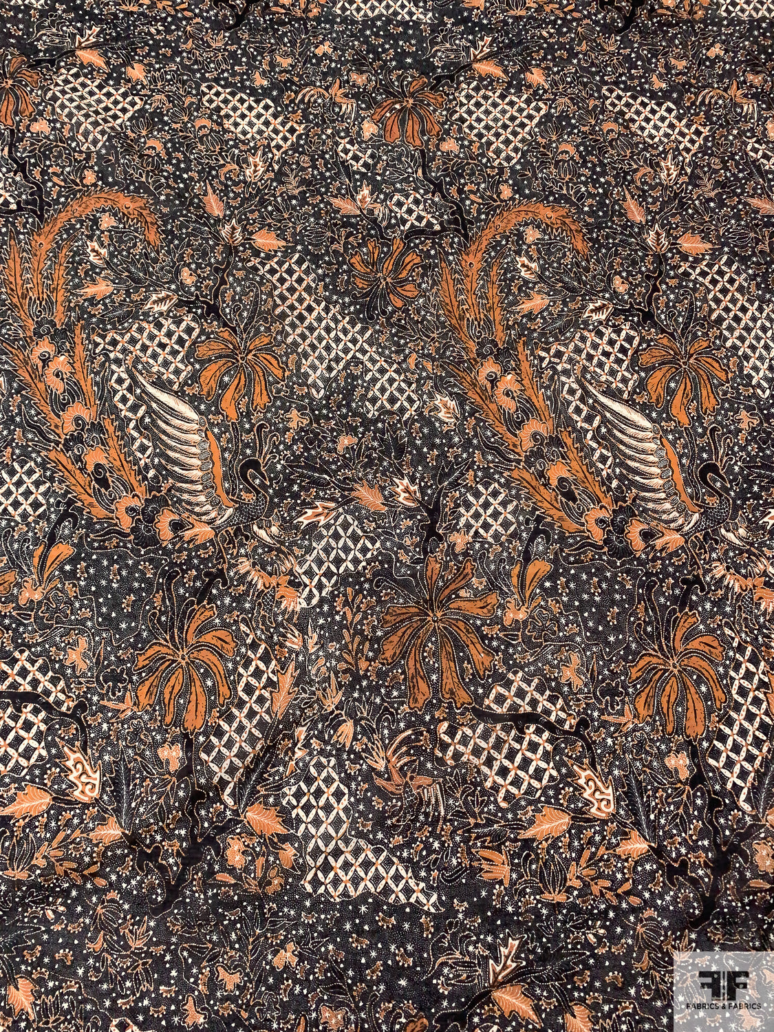 Ornate Batik Pheonix Printed Cotton Voile - Bronze Brown / Cream / Black
