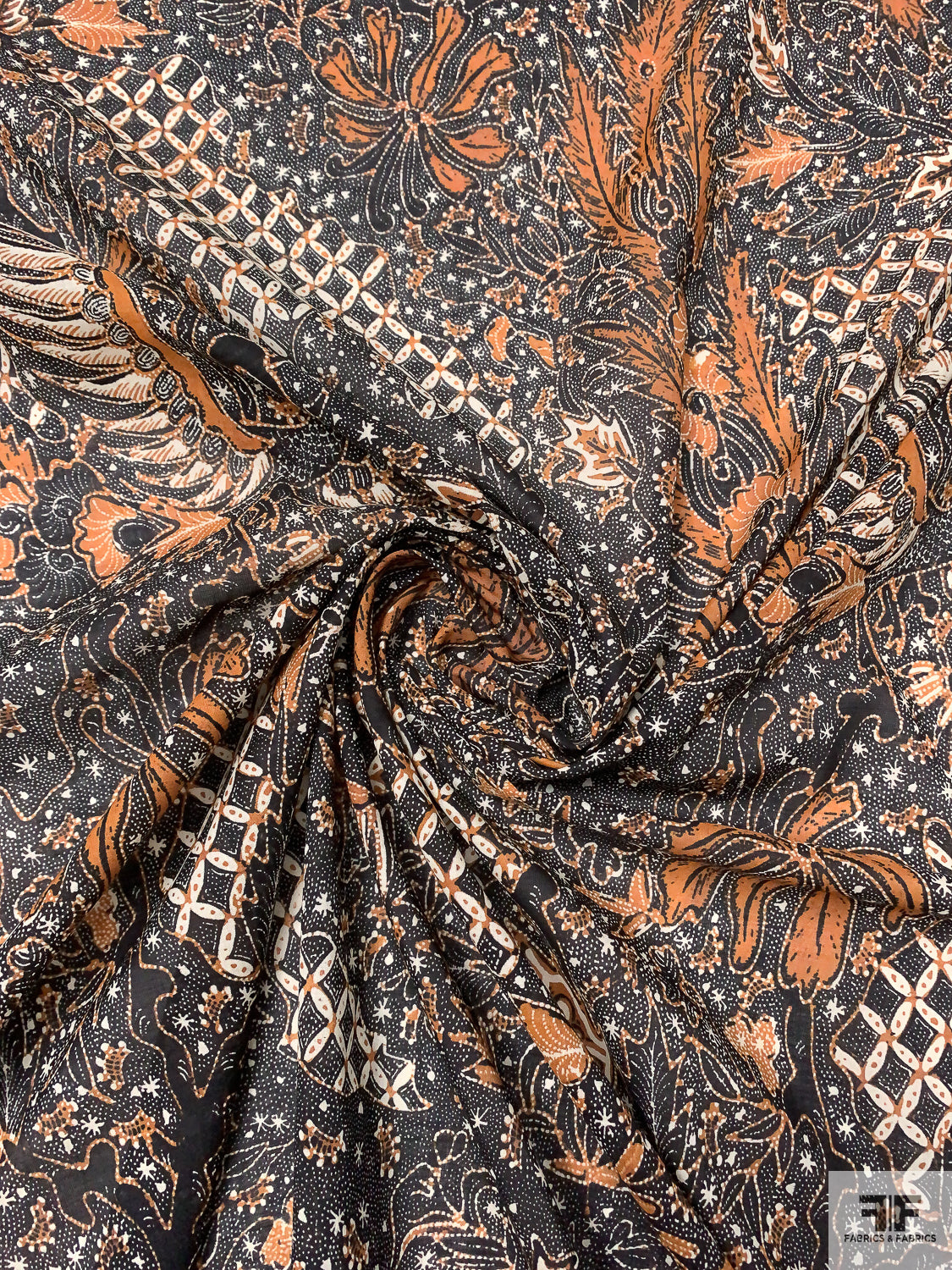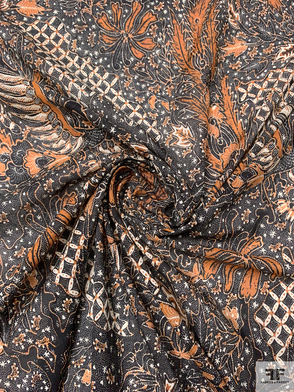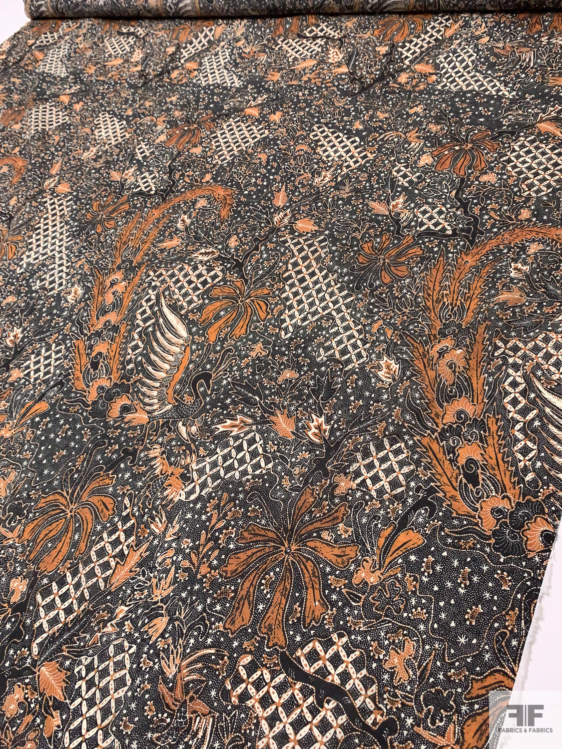 Ornate Batik Pheonix Printed Cotton Voile - Bronze Brown / Cream / Black