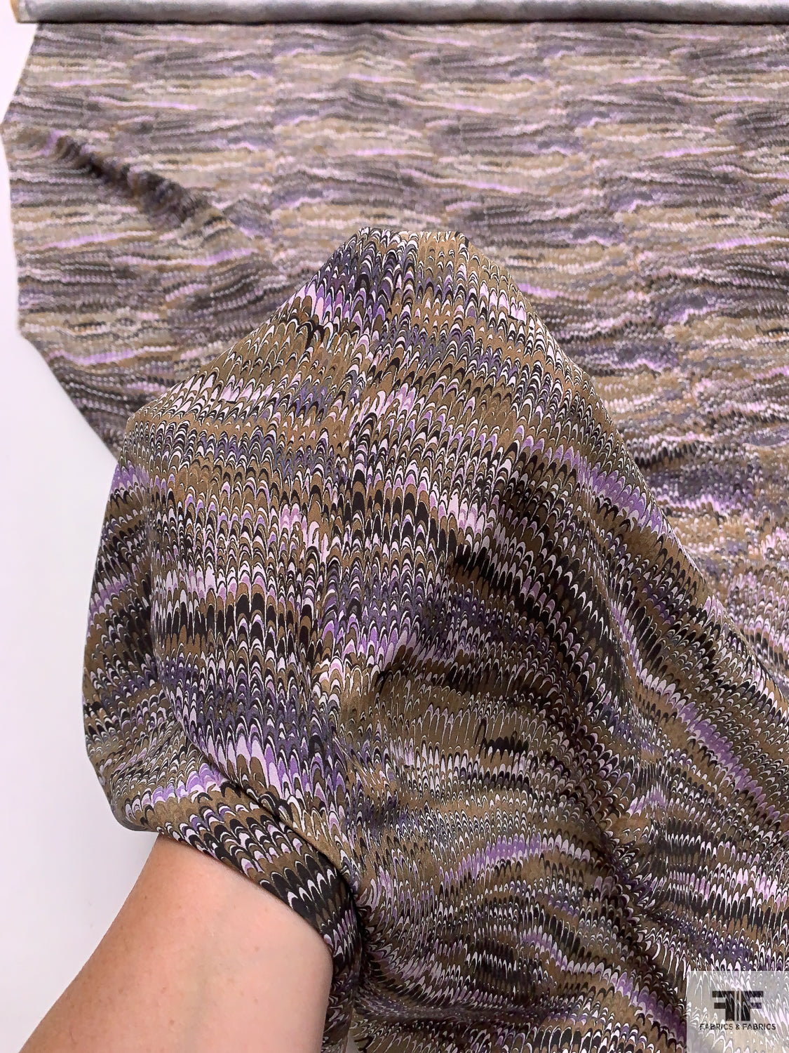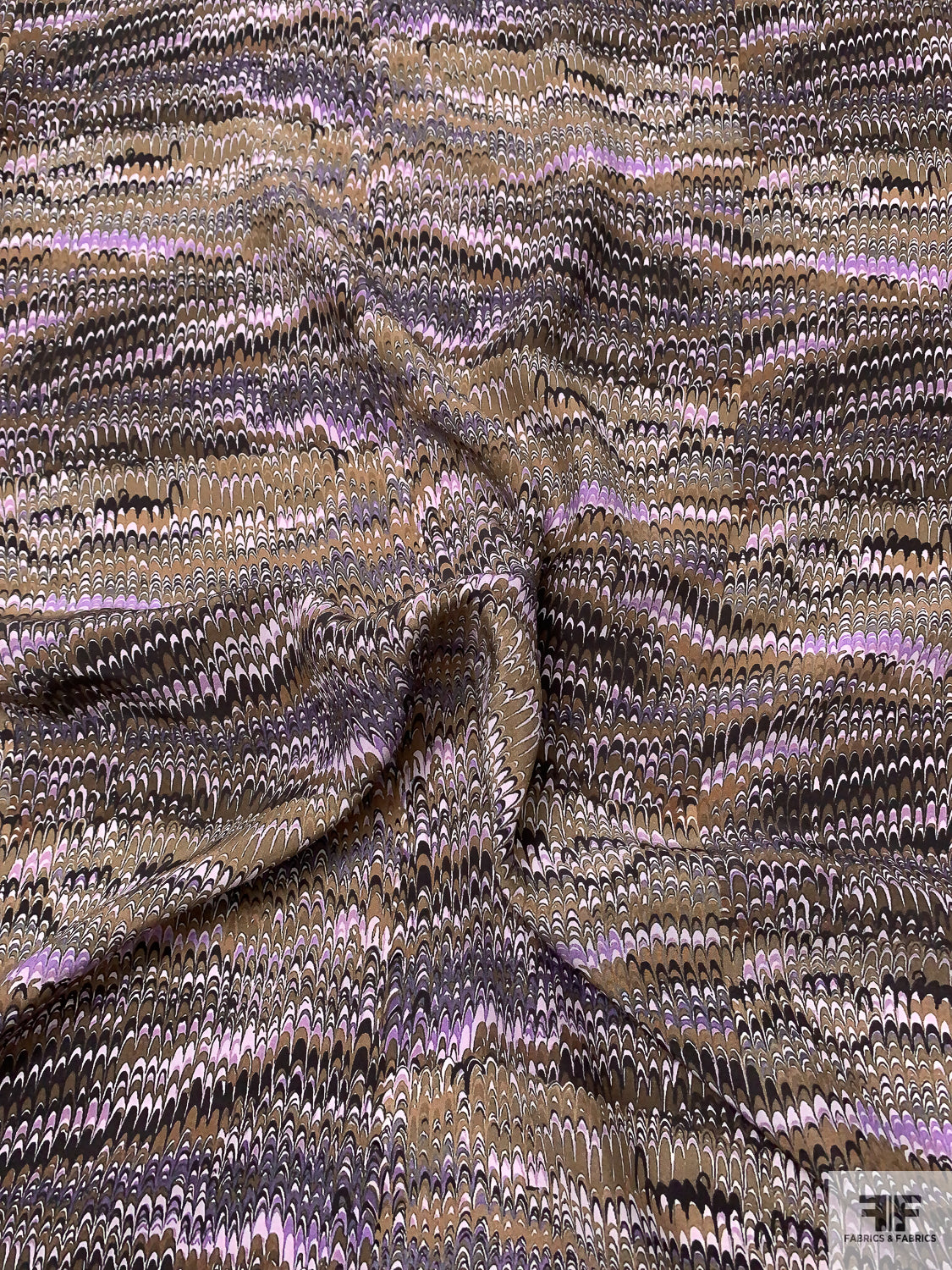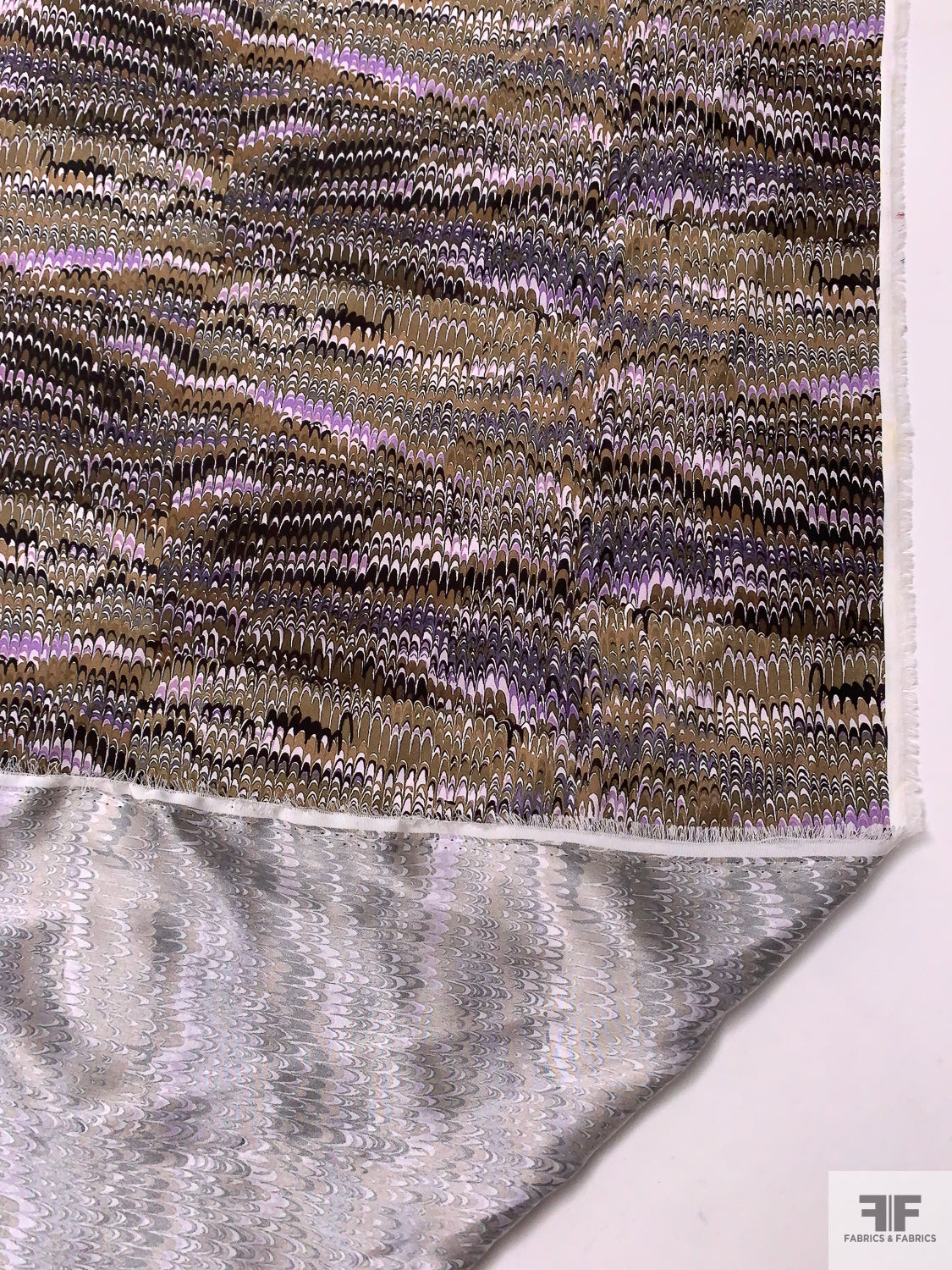 Ripple Wave Matte-Side Printed Silk Charmeuse - Khaki / Lilac / Black