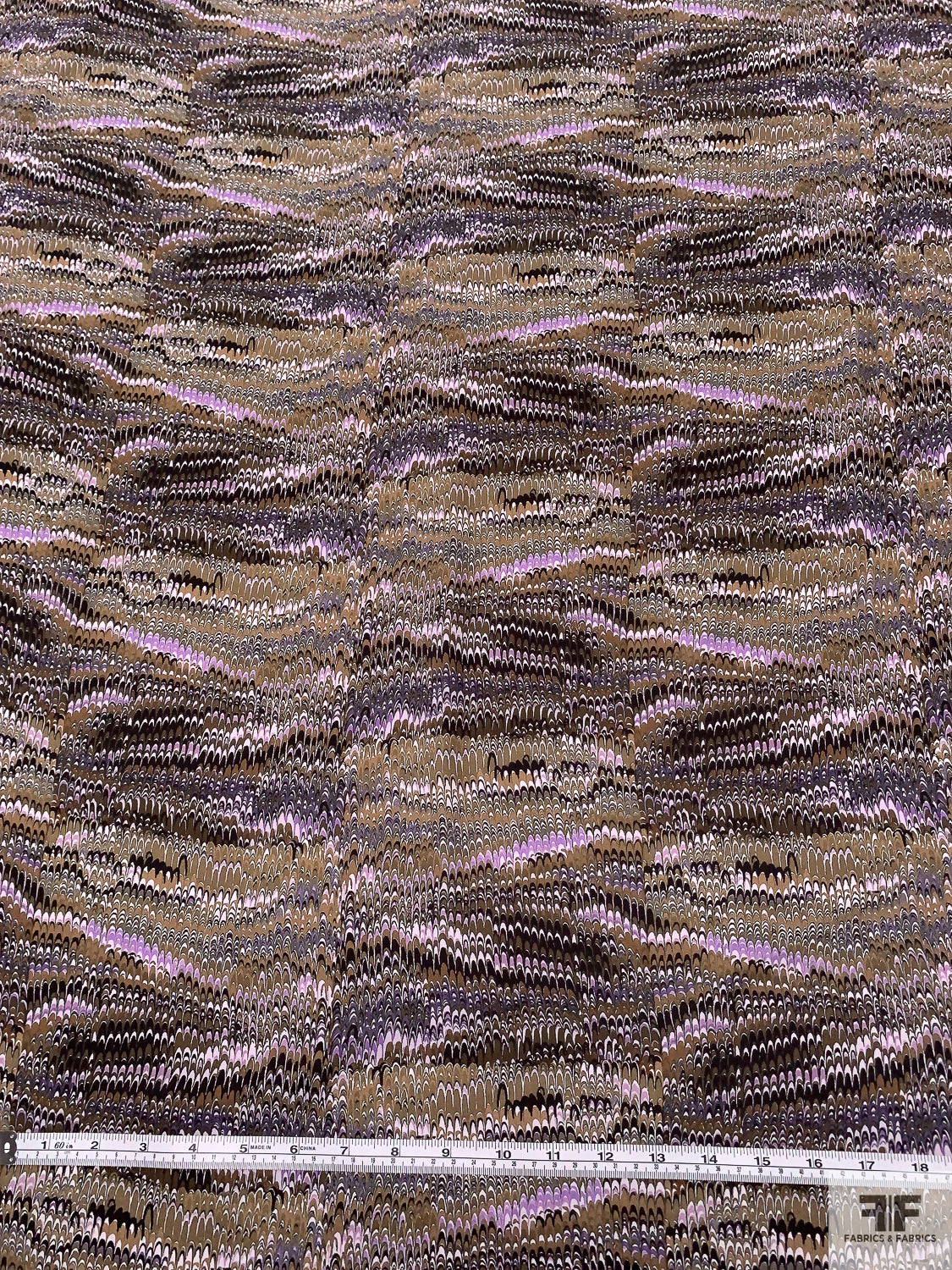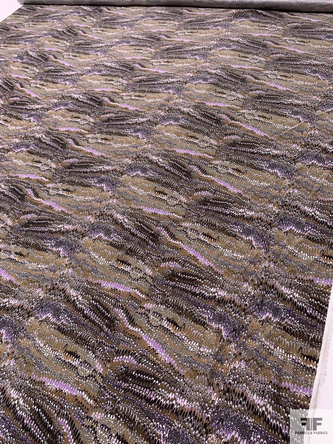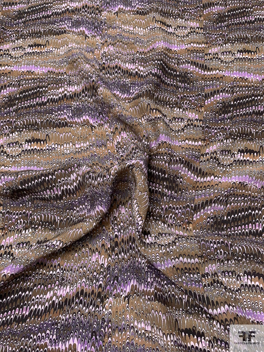 Ripple Wave Matte-Side Printed Silk Charmeuse - Khaki / Lilac / Black
